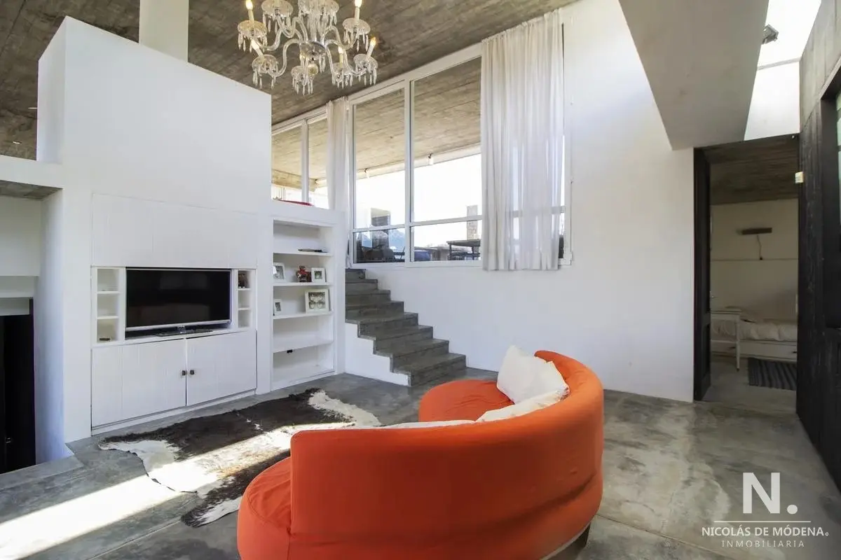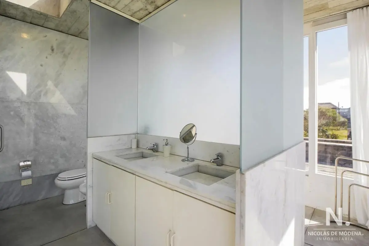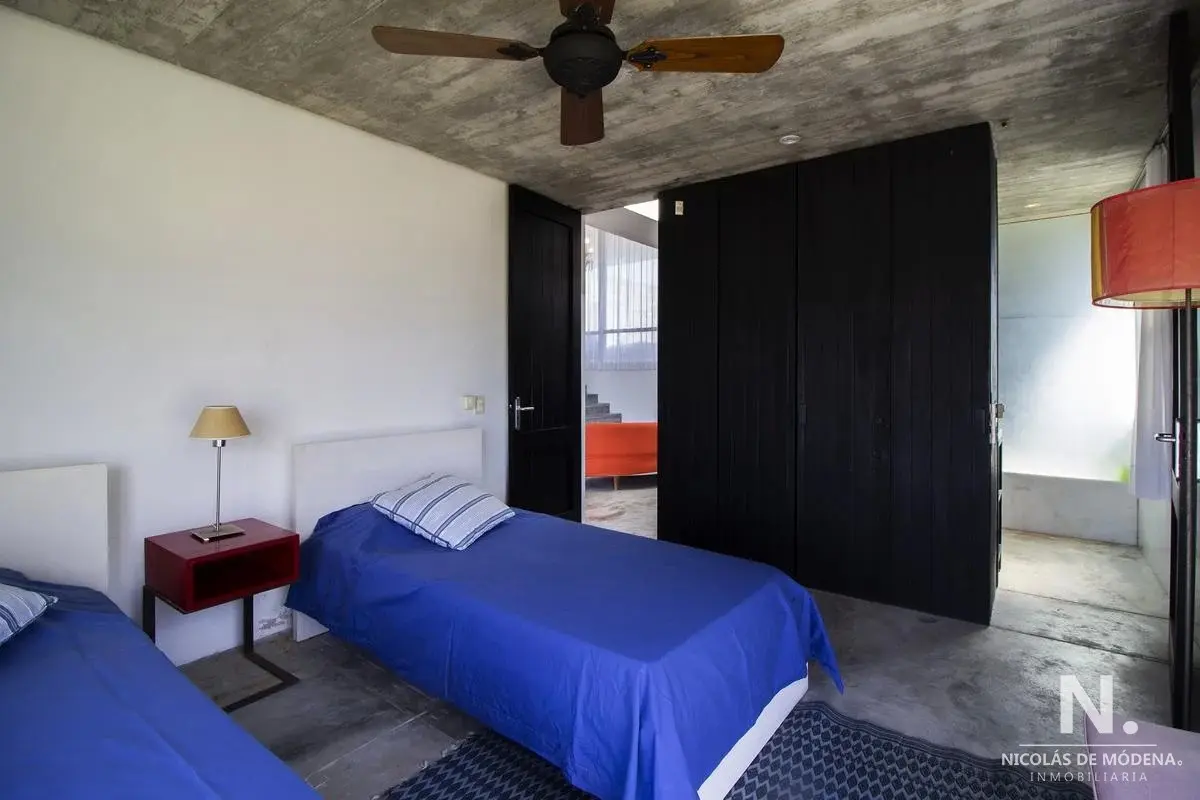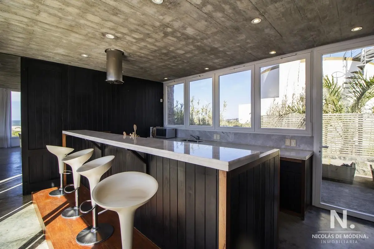 La casa principal posee cocina semi integrada, dependencia, toilette, living comedor, rincón de tv, 3 dormitorios en suite (uno de ellos con literas de 2 metros de largo y 0.90 de profundidad). En planta alta, cómoda master suite con vista al mar y al pueblo. Vestidor doble, baño compartimentado.