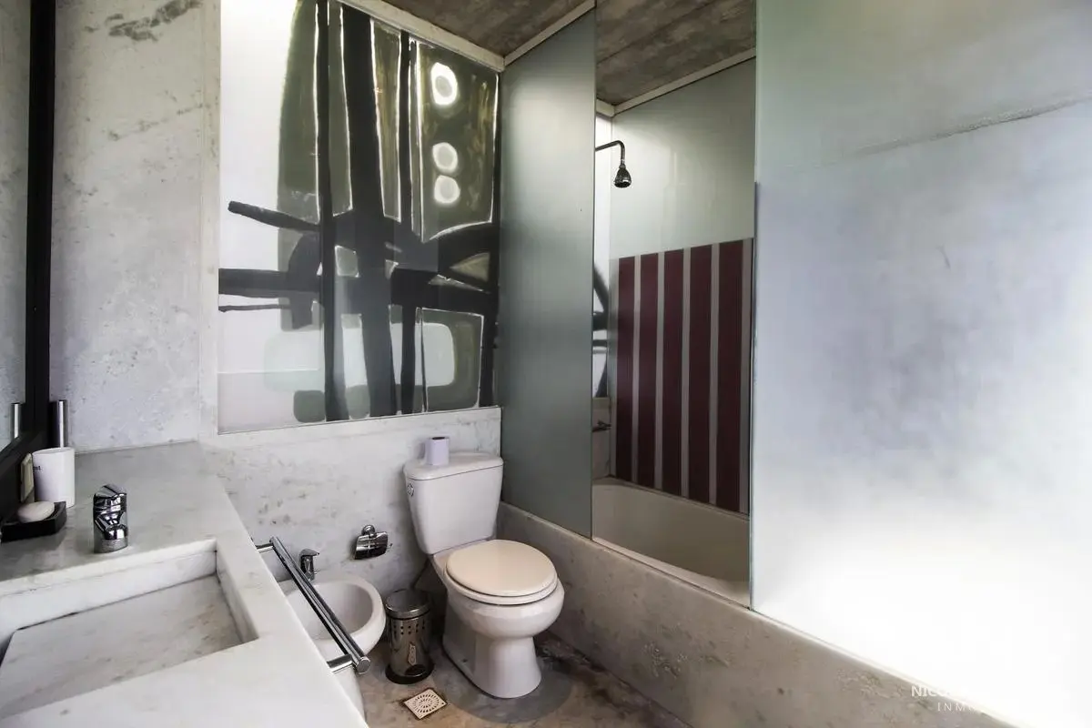 Separados por el jardín, se encuentra el sector de huéspedes. Construcción que mantiene la estética de todo el resto de la casa, con amplio living, dormitorio en semi suite con cama Queen .