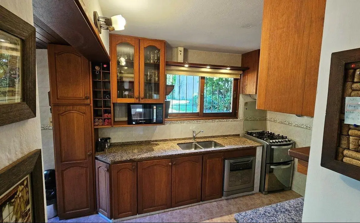 Cocina definida con desayunador y salida directa al jardín