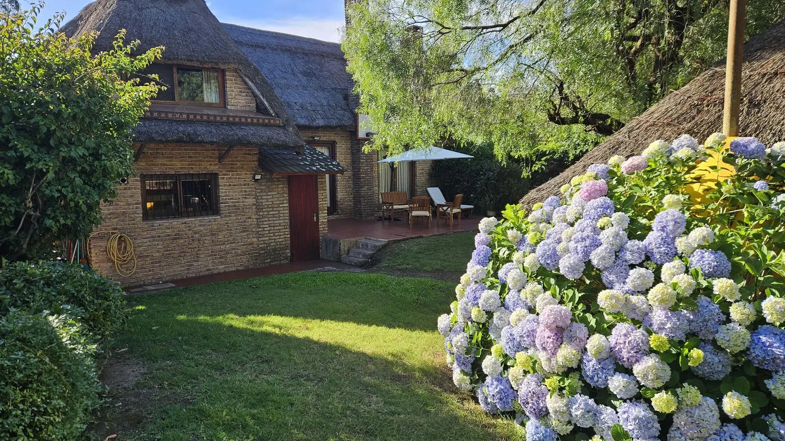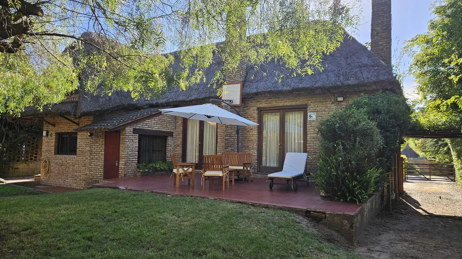 Jardín trasero con barbacoa techada, ideal para reuniones, además de un cuarto de servicio con baño.