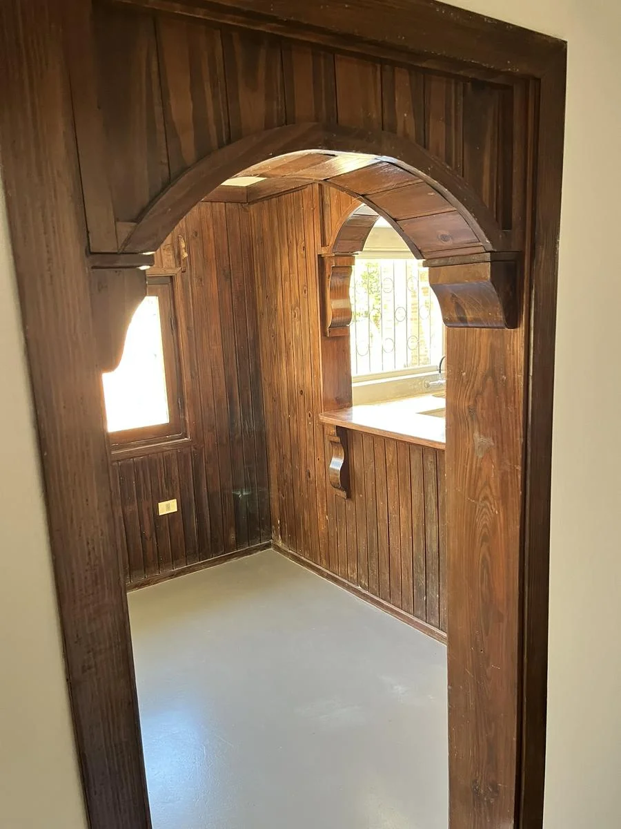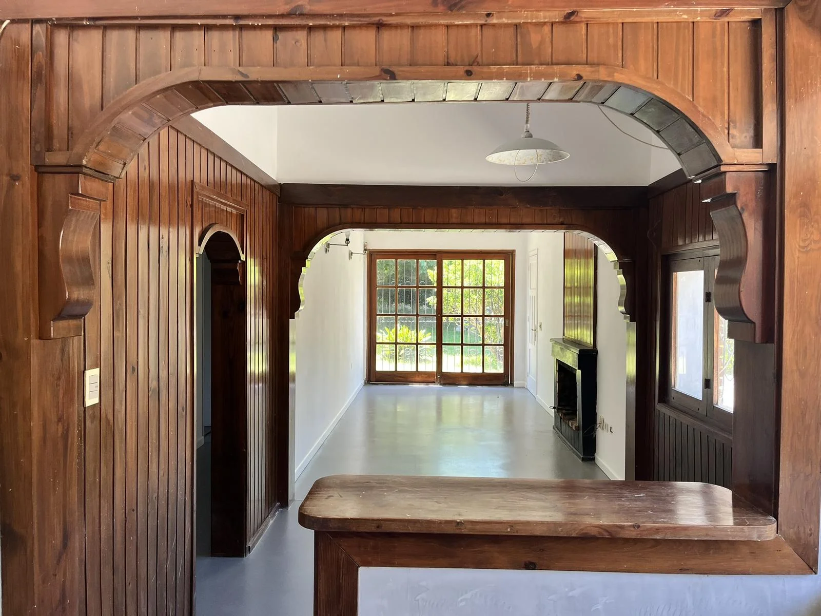 • Elementos de Diseño: Se destaca la presencia de arcos y revestimientos de madera noble oscura que actúan como separadores de ambientes y crean un impacto visual memorable.
