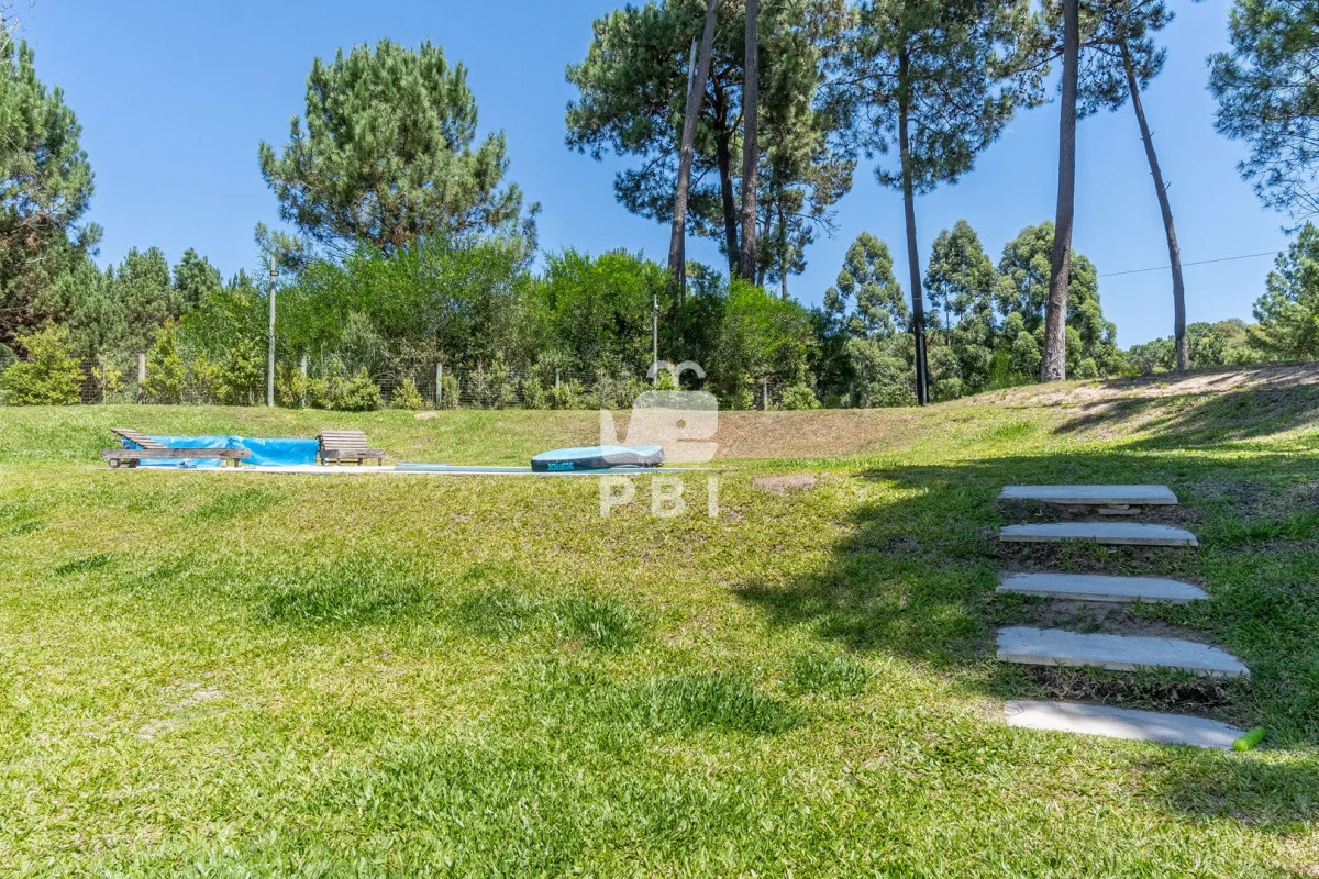 En el exterior, cuenta con área social techada, con estufa a leña, así como también parrillero y horno a leña, amplio jardín y piscina.