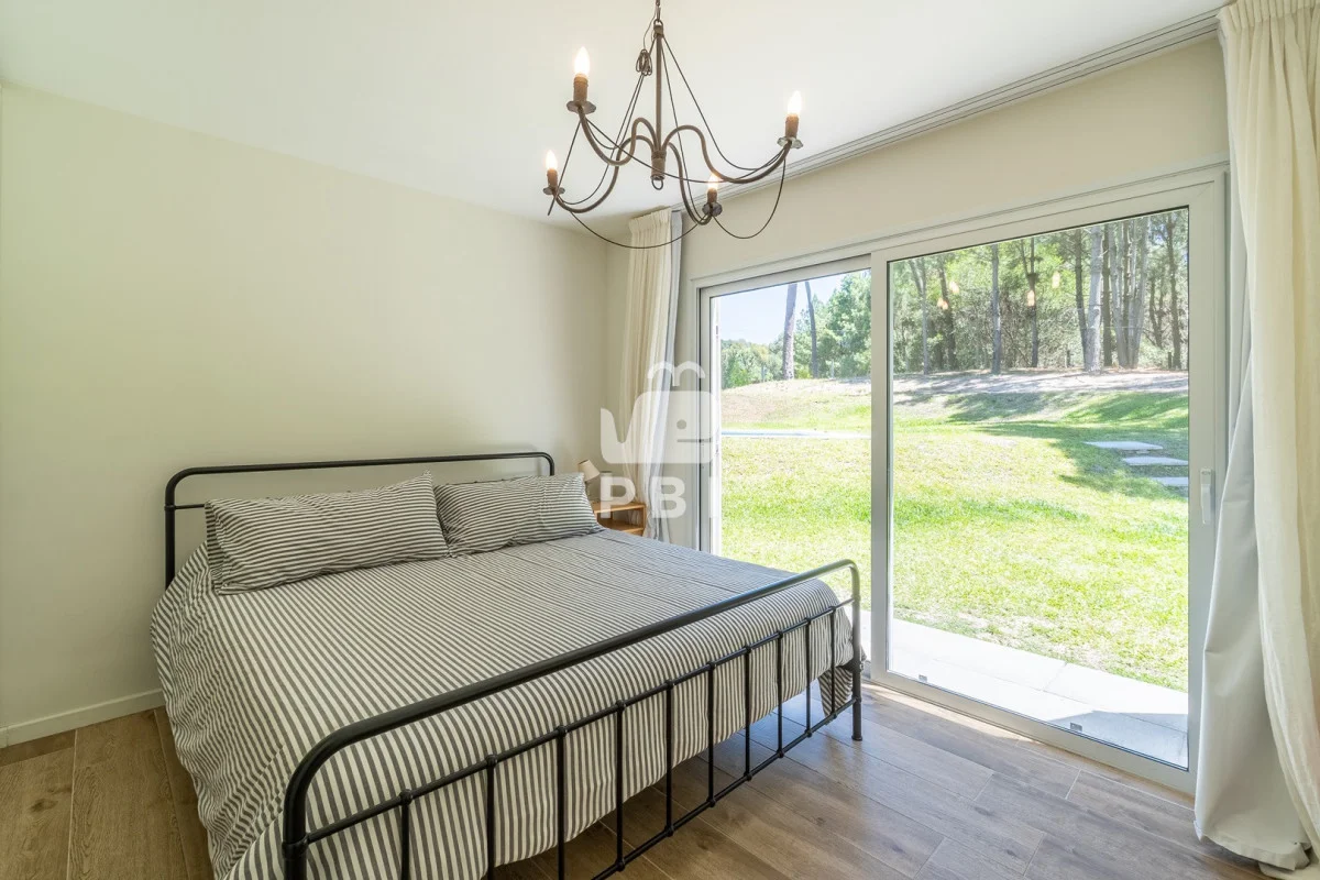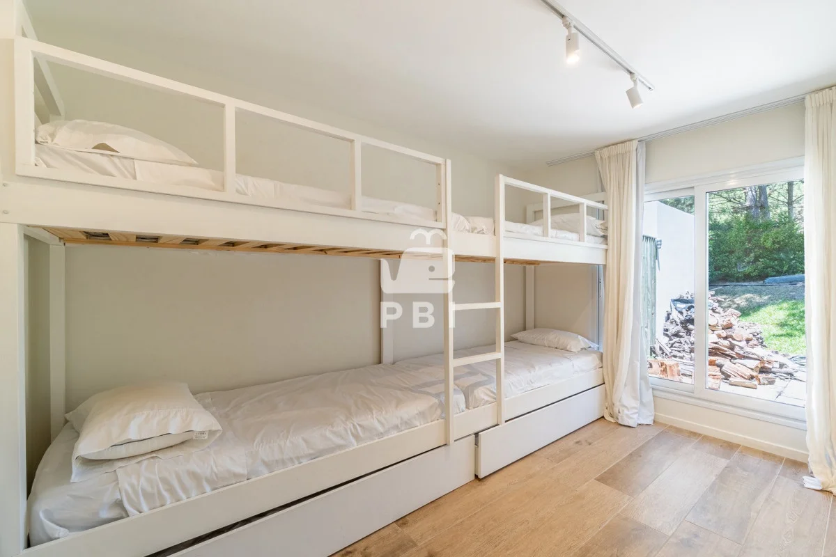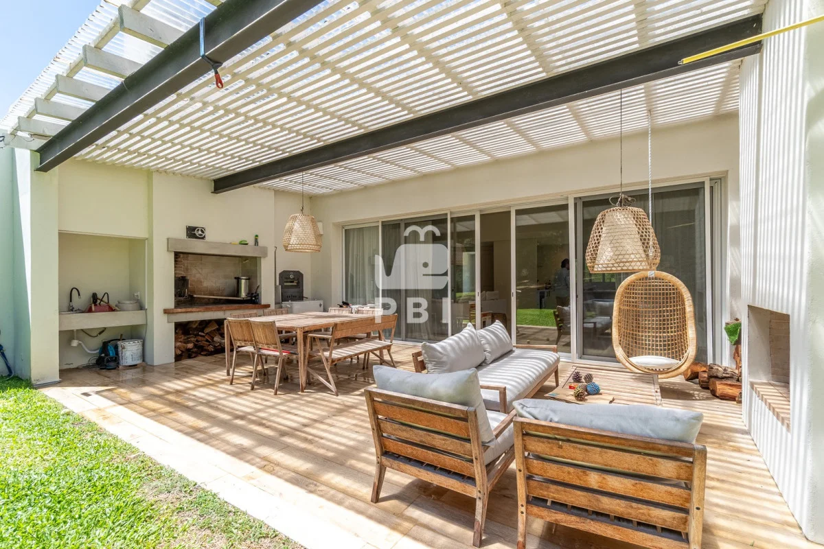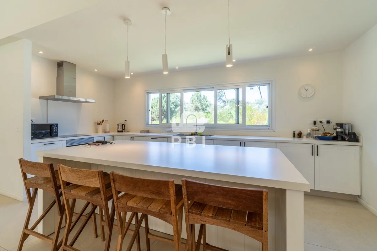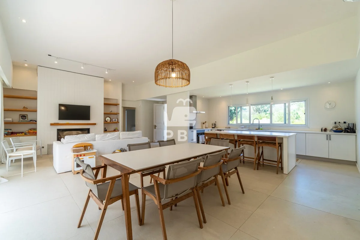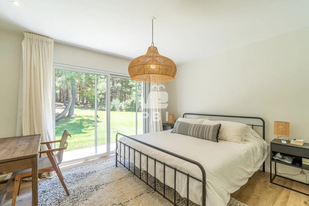 Posee 5 dormitorios (uno de ellos en suite, los demás dormitorios se resuelven en dos sectores, donde cada par de dormitorios comparte un baño), 3 baños, un toilette, living comedor con estufa a leña y cocina integrada. Todos los ambientes se encuentran climatizados mediante Aire Acondicionado.
