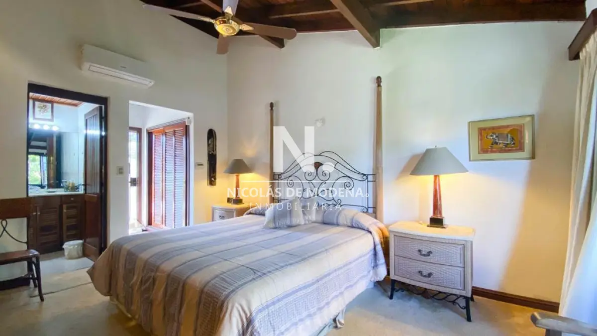 Excelente propiedad en venta de 3 dormitorios más dependencia de servicio Suite con vestidor y amplia terraza con vista agradable al jardín Amplio living y muy luminoso Comedor con estufa a leña Cocina definida con servicio completo Amplio parque con piscina climatizada Parrillero barbacoa Despensa lavadero con baño completo No dudes en consultarnos Referencia Interna : Tera-10832