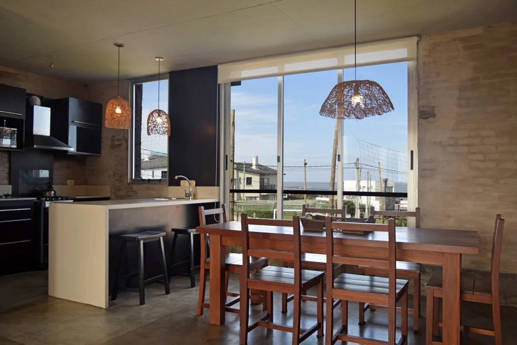 CASA PUNTA COLORADA MALDONADO ALTOS PUNTA COLORADA I CA200556 En los más alto de la Península del balneario Punta Colorada, zona con gran vista a toda la bahía de dicha zona, propiedad en régimen de propiedad horizontal sin gastos comunes, edificada a mediados del año 2014, de construcción tradicional en pisos de fibrocemento, paredes de ladrillo, abertura en aluminio y techo de hormigón; de estilo minimalista la misma se distribuye en dos niveles. En planta baja con 3 dormitorios y un baño completo y mediante escalera en dos tramos se accede al living-comedor con cocina integrada, baño completo y acceso a la terraza desde el cual se visualiza el mar y cerros. Parrillero cubierto y estacionamiento para varios vehículos