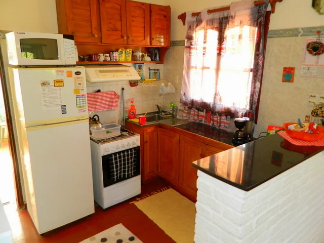 Distribuida en una sola planta, de construcción tradicional en muros, techo de losa de hormigón y cubierta de teja, pisos con layota y aberturas de madera con postigos. Cuenta con un living-comedor con estufa a leña y cocina semi-integrada, dos dormitorios y un baño completo.