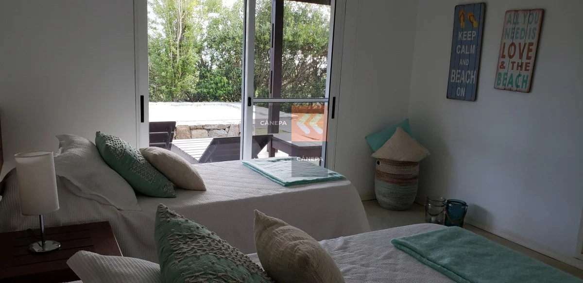 5 dormitorios ( 2 suites), todo lo loza radiante, dependencia de servicio completa , barbacoa, finamente amueblada, jardin y . piscina climatizada.