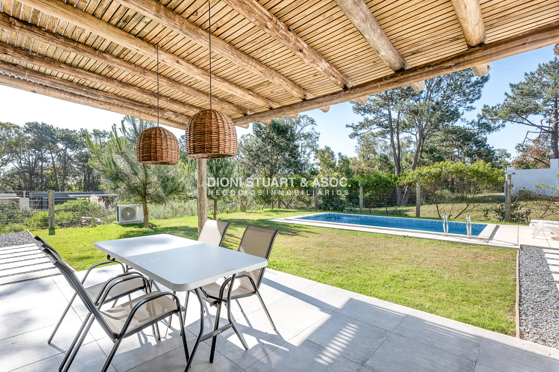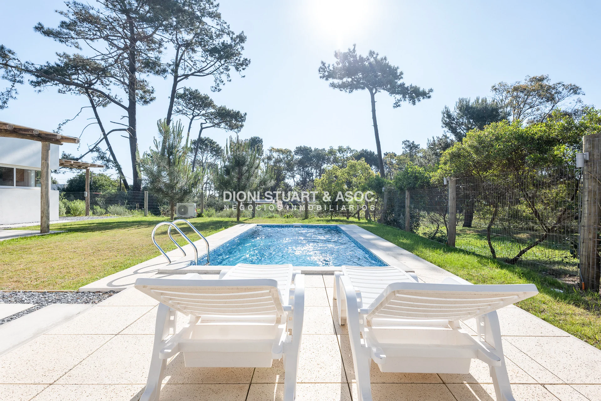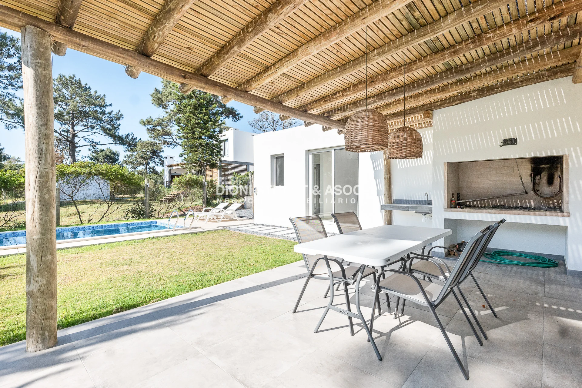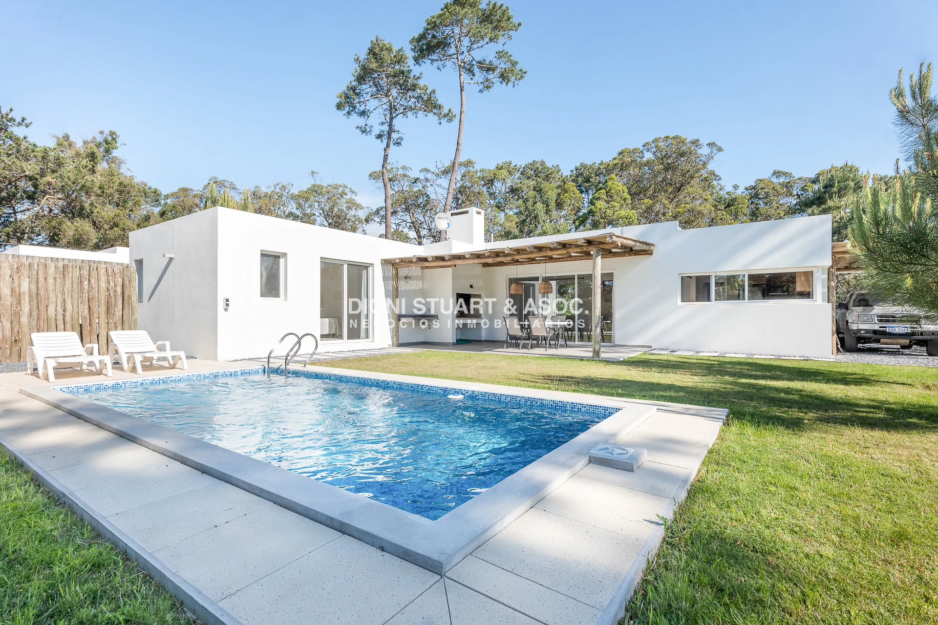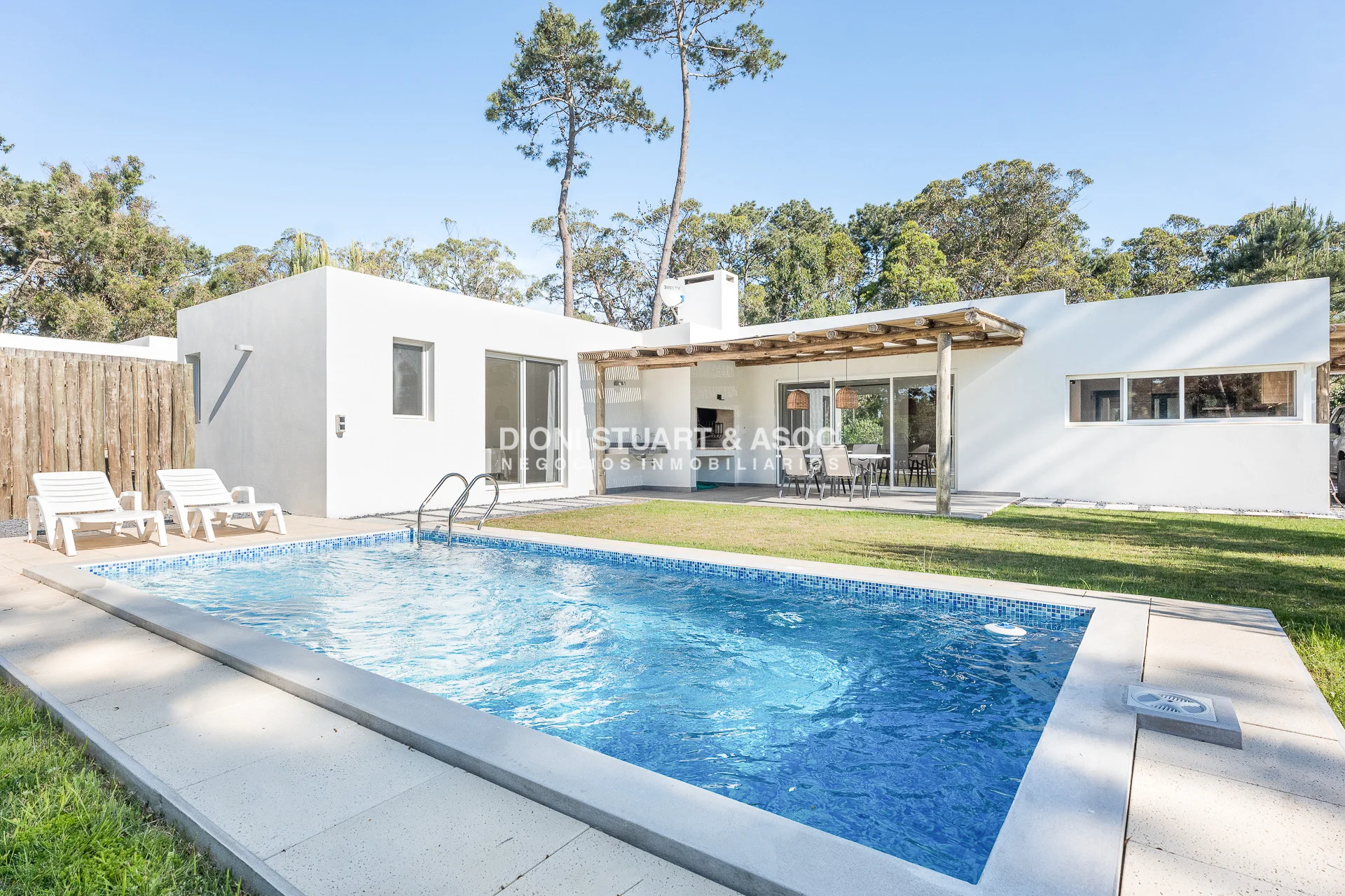 Desarrollada en un terreno de 500m2 ubicado a pocas cuadras del mar, se diseño inteligentemente pensando en todas sus áreas para lograr con una construcción solida y moderna una casa de 3 dormitorios definidos con 2 baños y toilette para las visitas, a demás cuenta con piscina para disfrutar en verano. Dispone de Aire, cocina completamente equipada. Algunos detalles constructivos son: techo de doble planchada, cerramientos y ventanas en aluminio DVH.