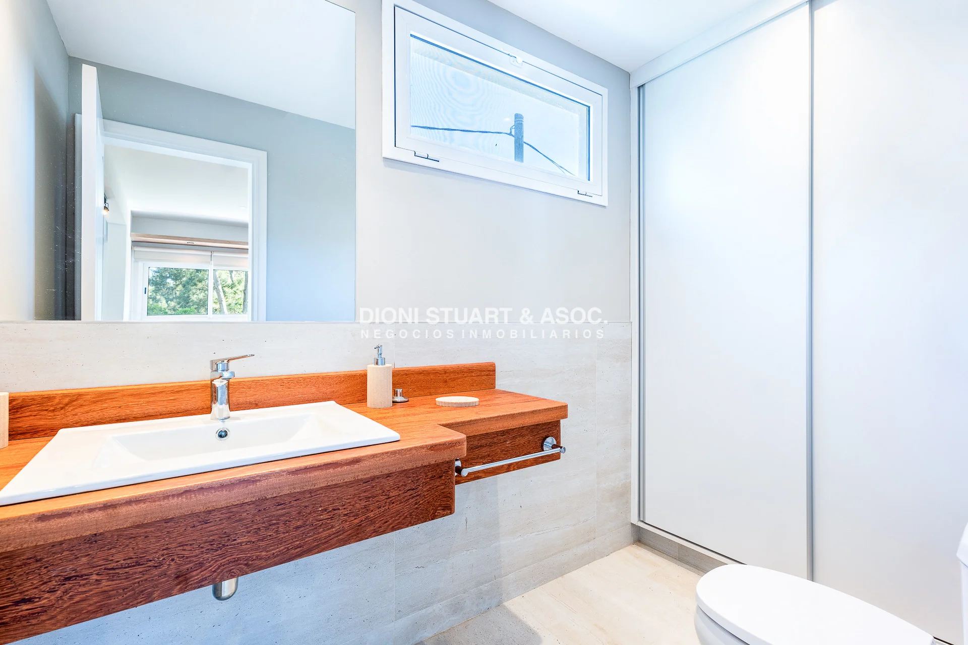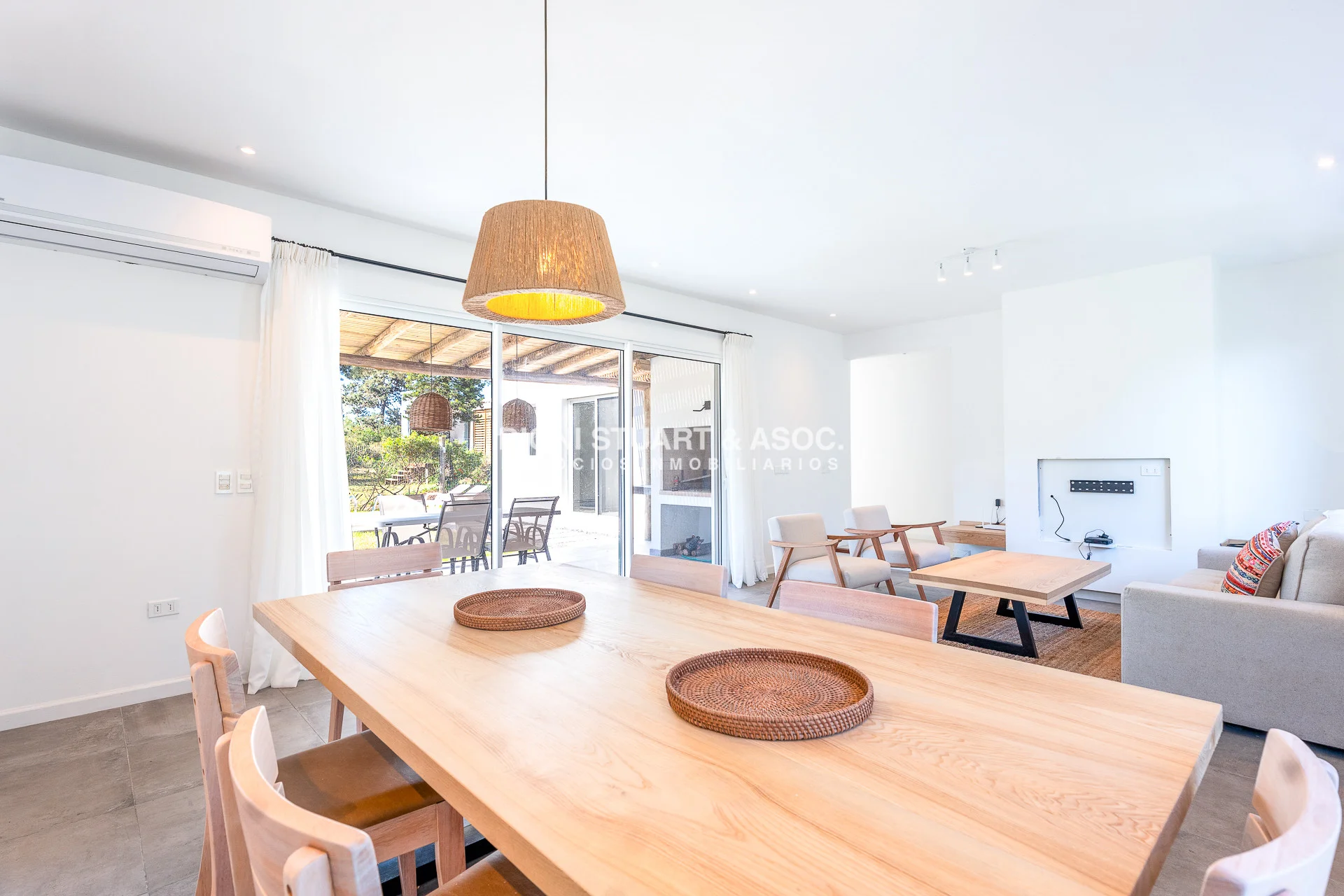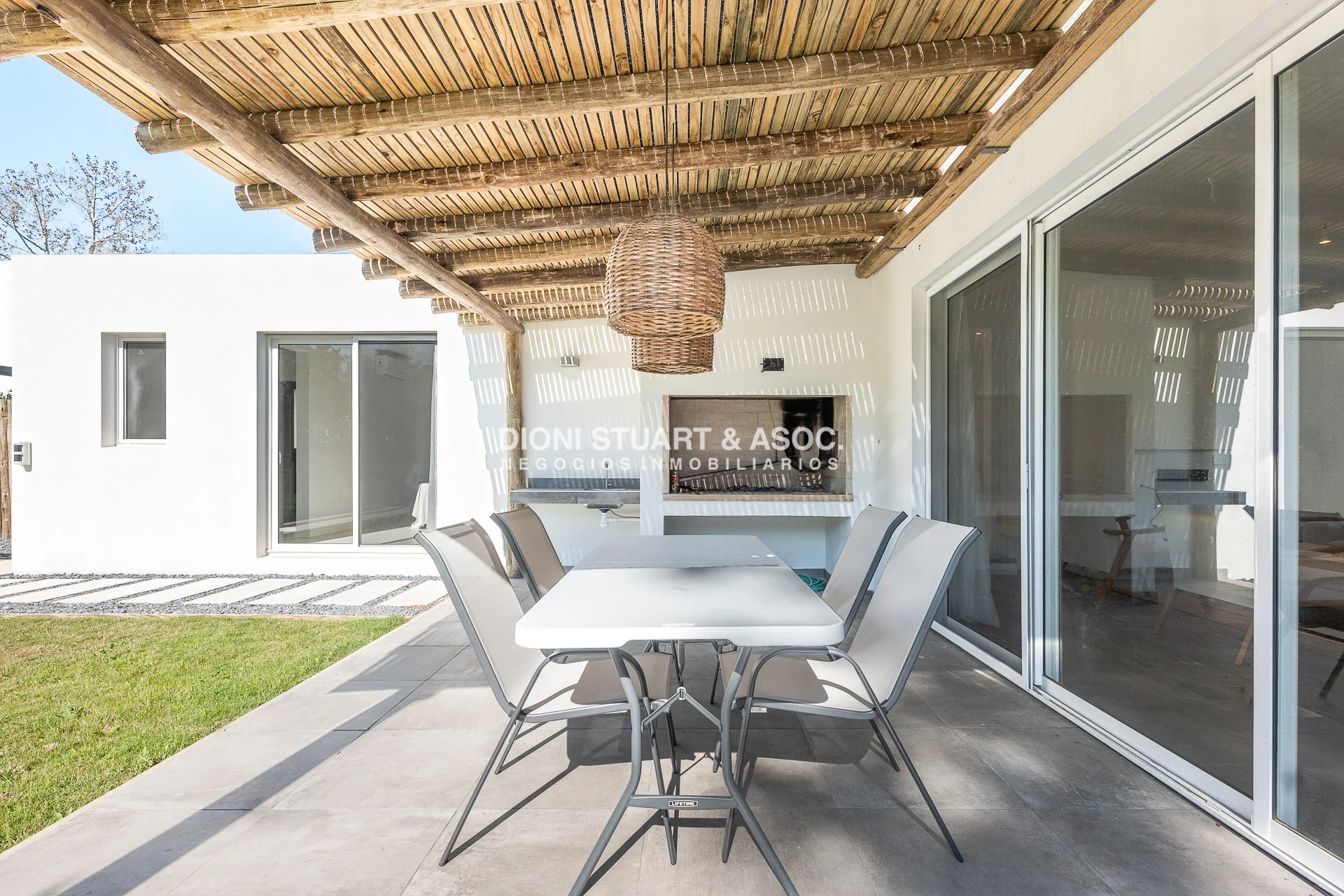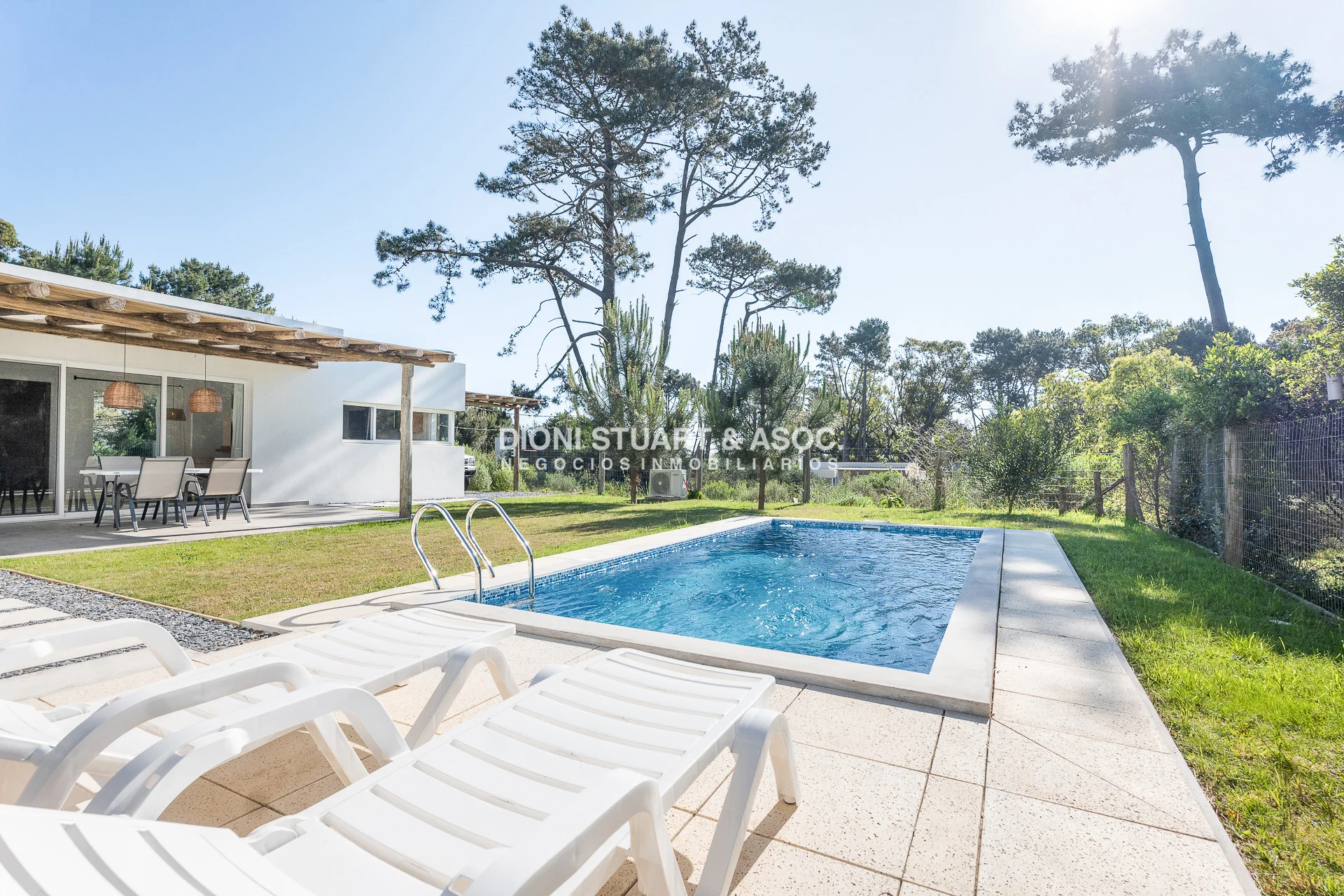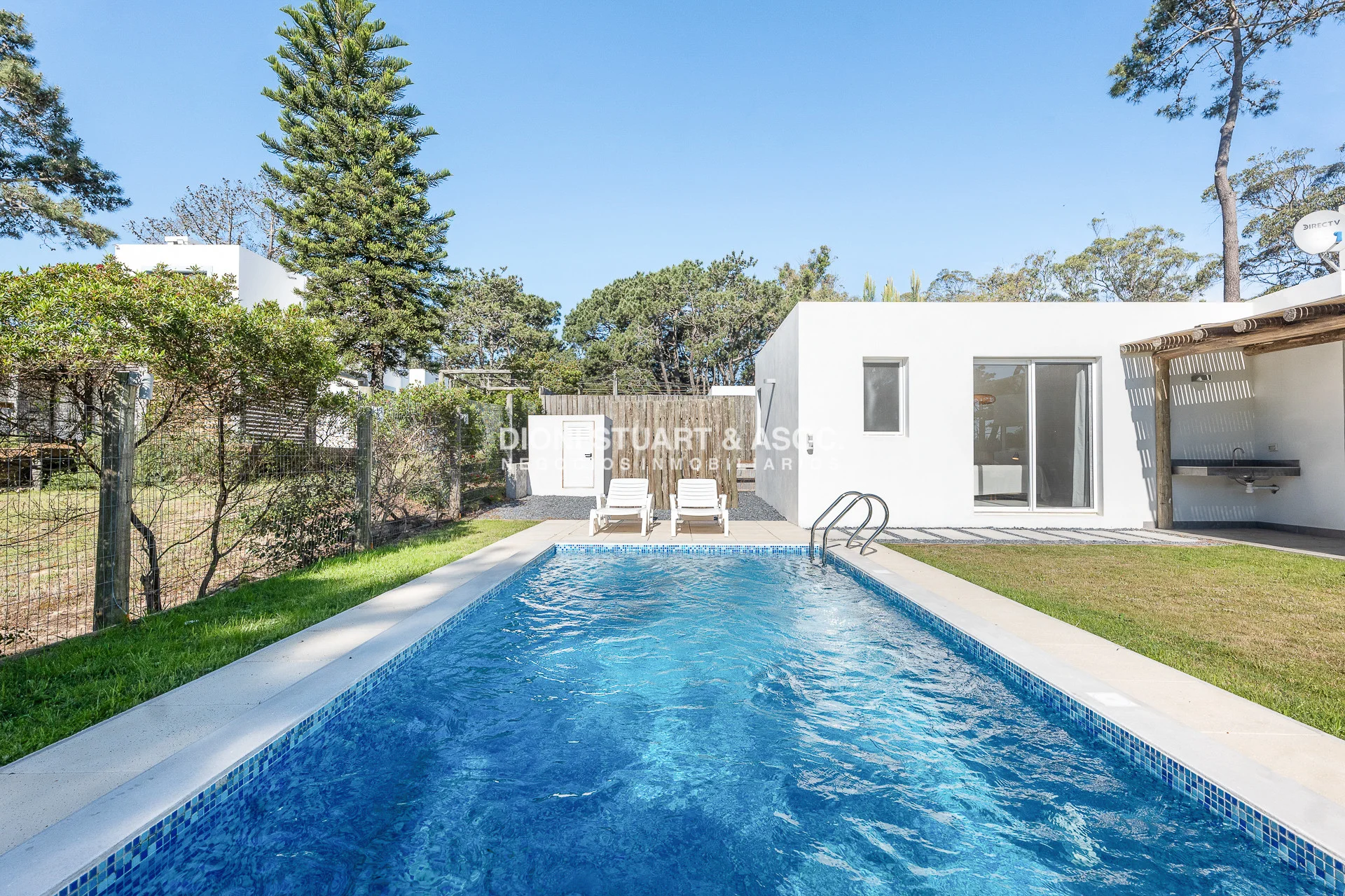 Desarrollada en un terreno de 500m2 ubicado a pocas cuadras del mar, se diseño inteligentemente pensando en todas sus áreas para lograr con una construcción solida y moderna una casa de 3 dormitorios definidos con 2 baños y toilette para las visitas, a demás cuenta con piscina para disfrutar en verano. Dispone de Aire, cocina completamente equipada. Algunos detalles constructivos son: techo de doble planchada, cerramientos y ventanas en aluminio DVH.