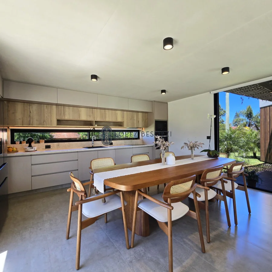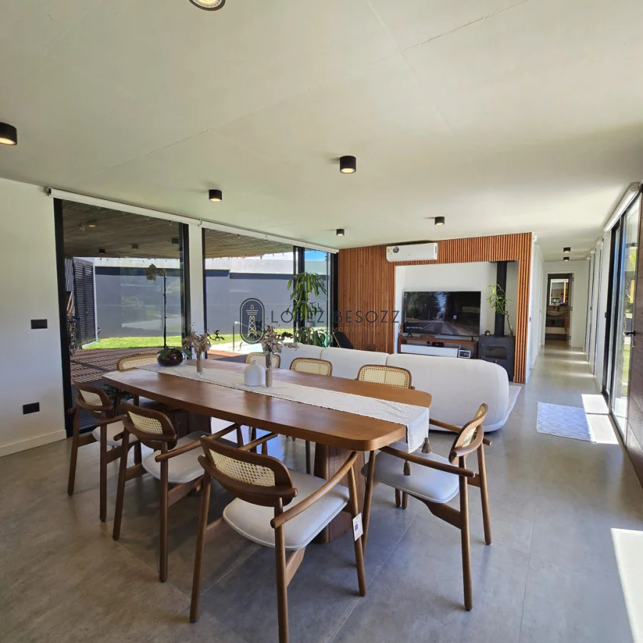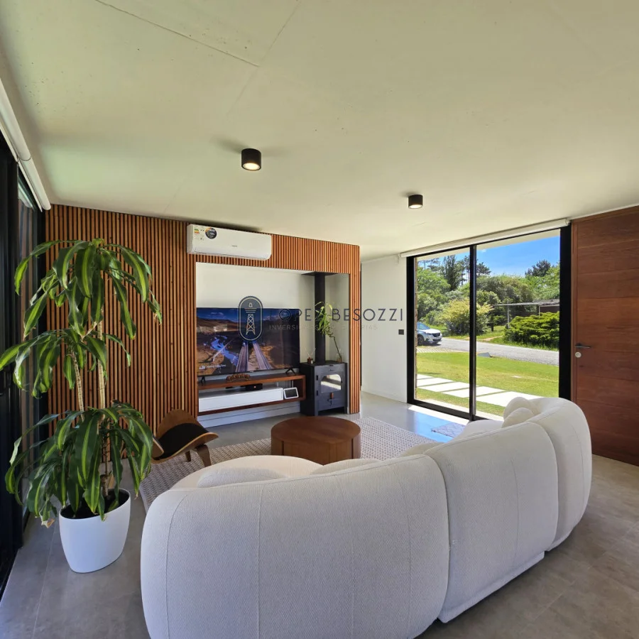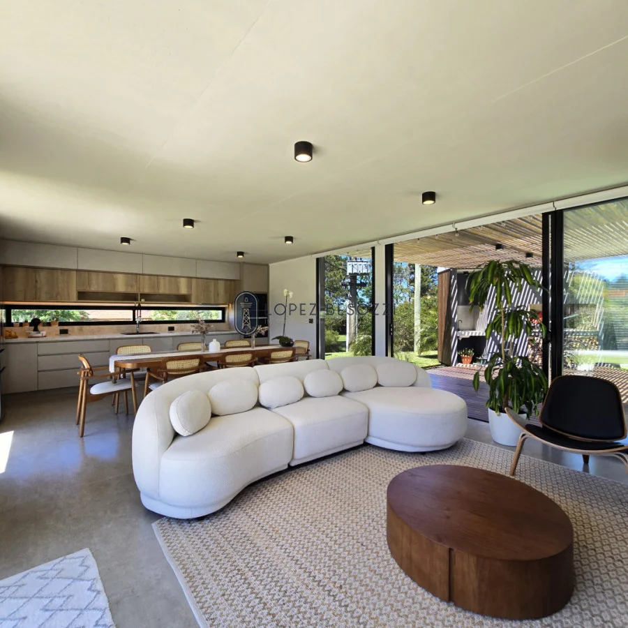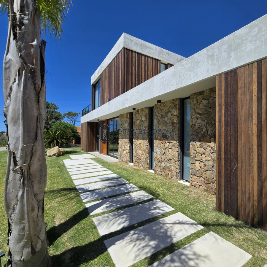 Sólida construcción en muros de ticholo revestidos exteriormente en madera dura y piedra e interiormente en yeso proyectado, pisos en porcelanato español de 120 x 63, techos de hormigón plano (aislación en poliuretano, carpeta de hormigón con malla y la última capa de membrana impermeabilizante), aberturas en aluminio línea gala con vidrios DVH, las mesadas son en DEKTON (baños y cocina); Aberturas (puertas) exterior en lapacho y cedro e interiores en madera dura hechas también a medida laqueadas; iluminación Led en toda la propiedad y sistema de riego instalado para el jardín; entre mas características para disfrutar en cualquier época del año en uno de los mejores balnearios de la zona.