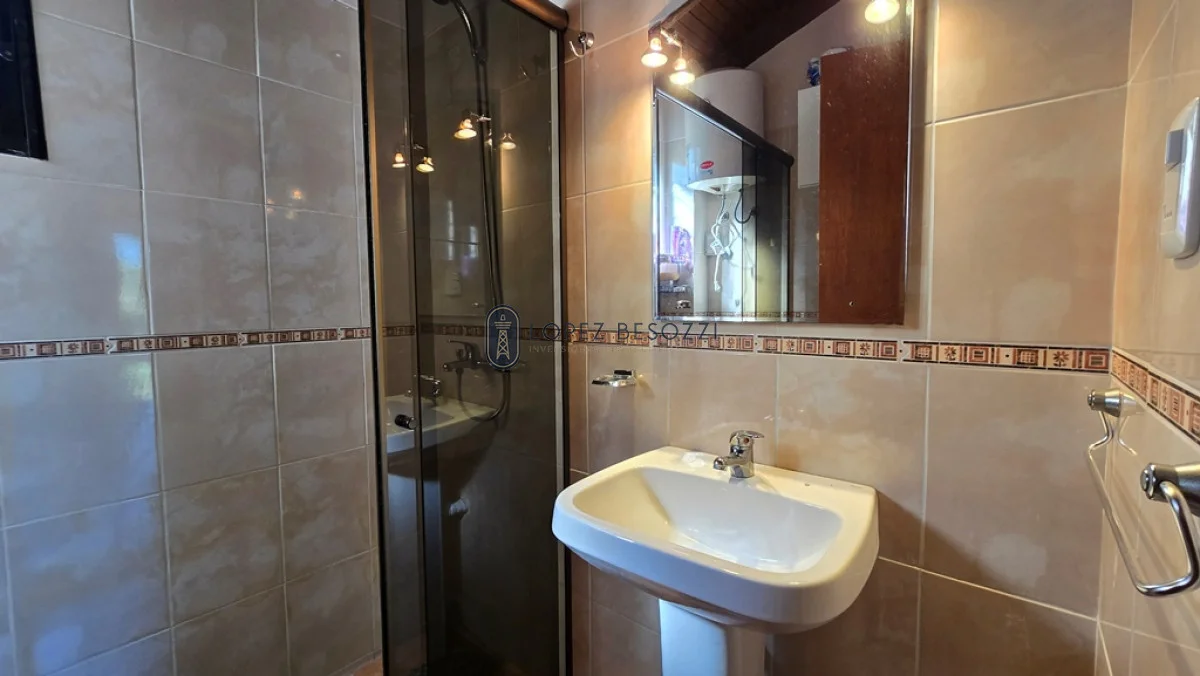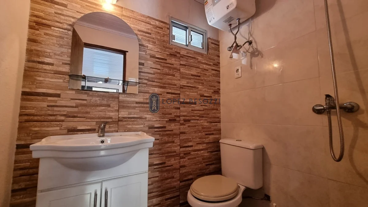 En planta alta la casa dispone de dormitorio principal con placard empotrado y acceso al balcón que da al frente (calle), segundo dormitorio con acceso a la terraza (da al fondo de la casa) y baño completo.