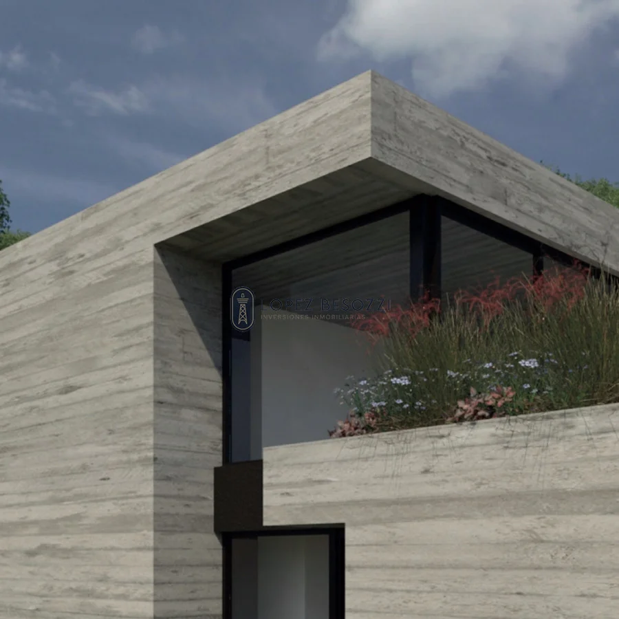 Solida construcción en estructura de hormigón armado con losa vista; muros de ladrillo aislado con poliuretano proyectado y hormigón visto (para mayor aislación térmica); pisos y revestimientos en porcelanato; mesada en cocina en Silestone; aberturas en aluminio con vidrios dobles DVH y techo de hormigón el cual dispone de aislación por poliuretano expandido; carpeta de hormigón y membrana asfáltica.