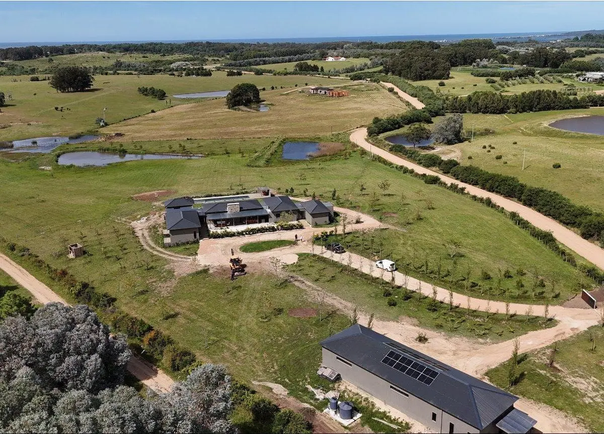 CASASWEB(237592) Chacra a estrenar en las afueras de José Ignacio – Ubicada a tan solo 5 minutos del Faro de José Ignacio, esta exclusiva chacra combina diseño, comodidad y naturaleza en un entorno privilegiado. Construida sobre un terreno elevado de 5 hectáreas, se asoma desde su nivel superior a una suave barranca que baja hacia los tajamares.La propiedad cuenta con una superficie construida de 510 m² y ofrece:Casa Principal-4 suites, distribuidas de la siguiente manera:-Master suite: 6.6 x 8.1 m-Suite 2 (niños): 6.2 x 4 m-Suite 3: 5 x 4 m-Suite 4: 4 x 3.5 m-Escritorio: 3.5 x 2.5 m-Living: 14 x 7 m-Comedor: 6.2 x 6 m-Cocina definida: 6.2 x 6 m-Cava: 3 x 1.5 m-Despensa: 3 x 2.8 m-Dependencia de servicio: 3.5 x 2.8 m-Dos grandes galerías techadas:-Galería 1: 4.20 x 16 m-Galería 2: 4.20 x 22 mÁrea de huéspedes-2 suites independientes de la casa principal (ambas de 5 x 4 m), ideales para recibir visitas con privacidad o como oficinas/talleres.Área de servicios-Galpón de 135 m² libres, con:-Entrepiso para depósito u oficina-Apartamento para caseros-Baño doble-Lavadero independientePaisajismo y forestaciónLa chacra conserva un pequeño núcleo original de añejas coronillas junto al tercer tajamar, y ha sido forestada con más de 550 ejemplares de árboles y arbustos autóctonos cuidadosamente seleccionados.El diseño del paisaje fue realizado por el reconocido especialista de la zona, Raúl Rosas, quien pensó cada especie en función de aportar colores, formas, protección y privacidad durante todo el año.?Una chacra excepcional en una ubicación estratégica, lista para habitar y disfrutar. Ver mas detalles en casasweb.com?237592