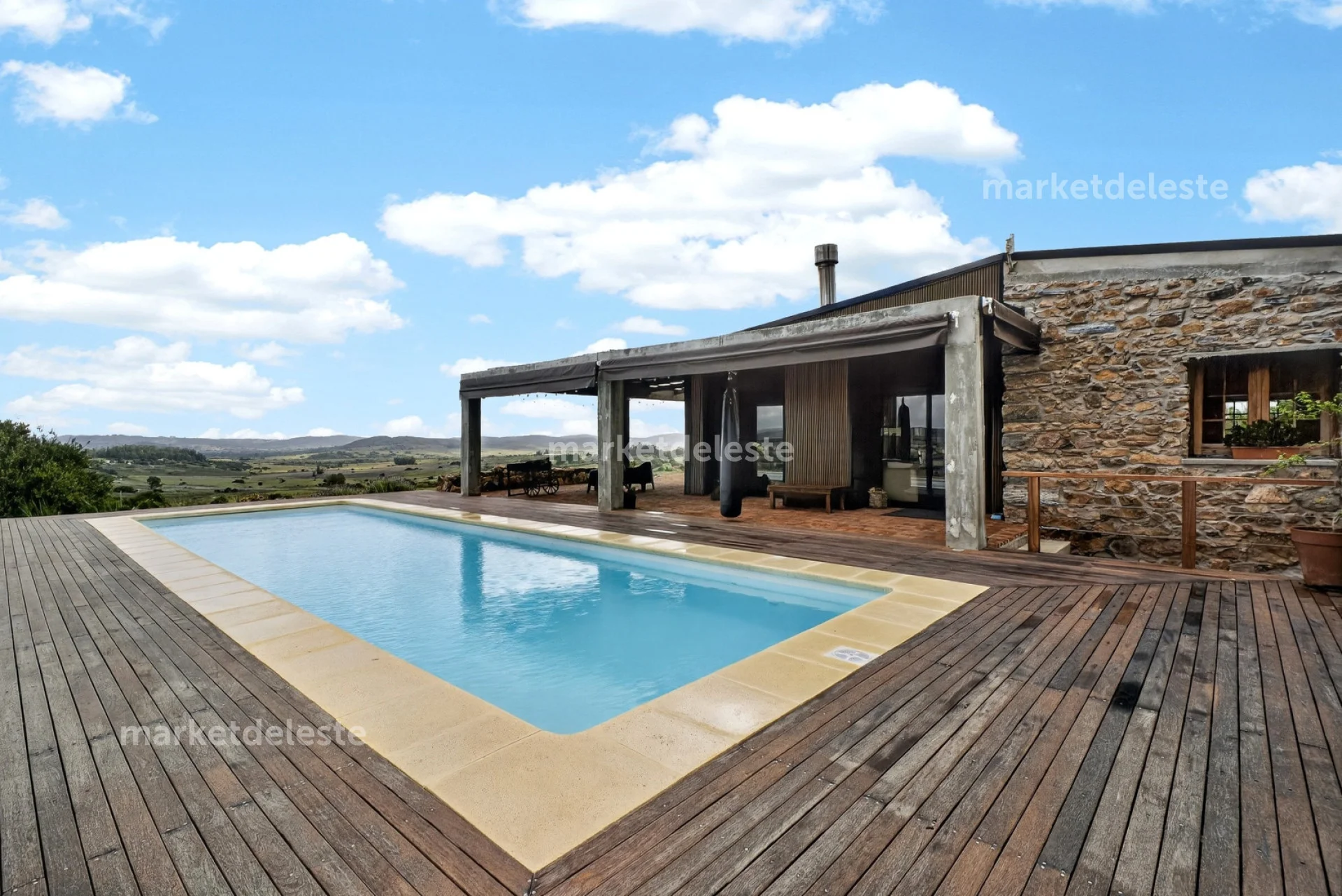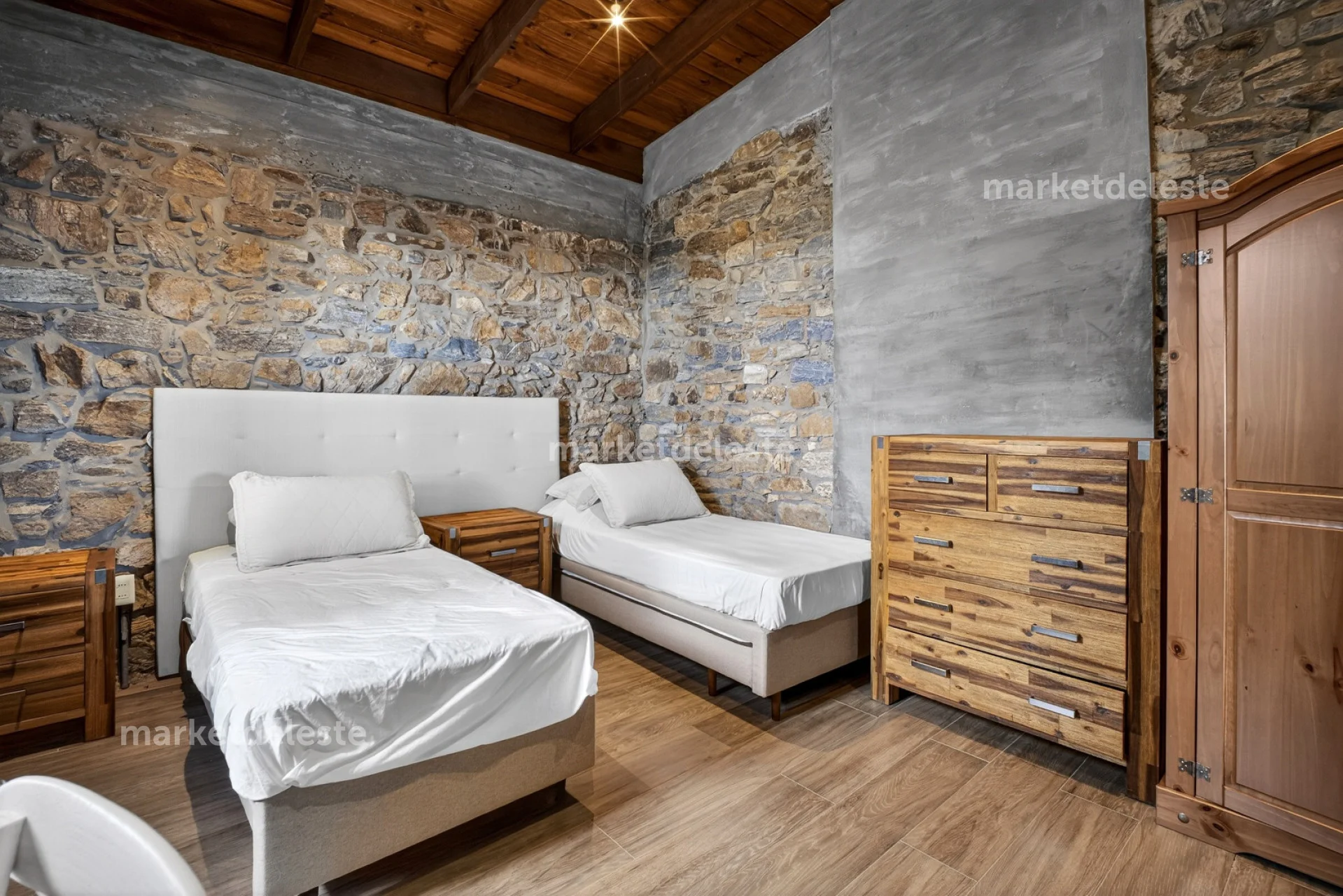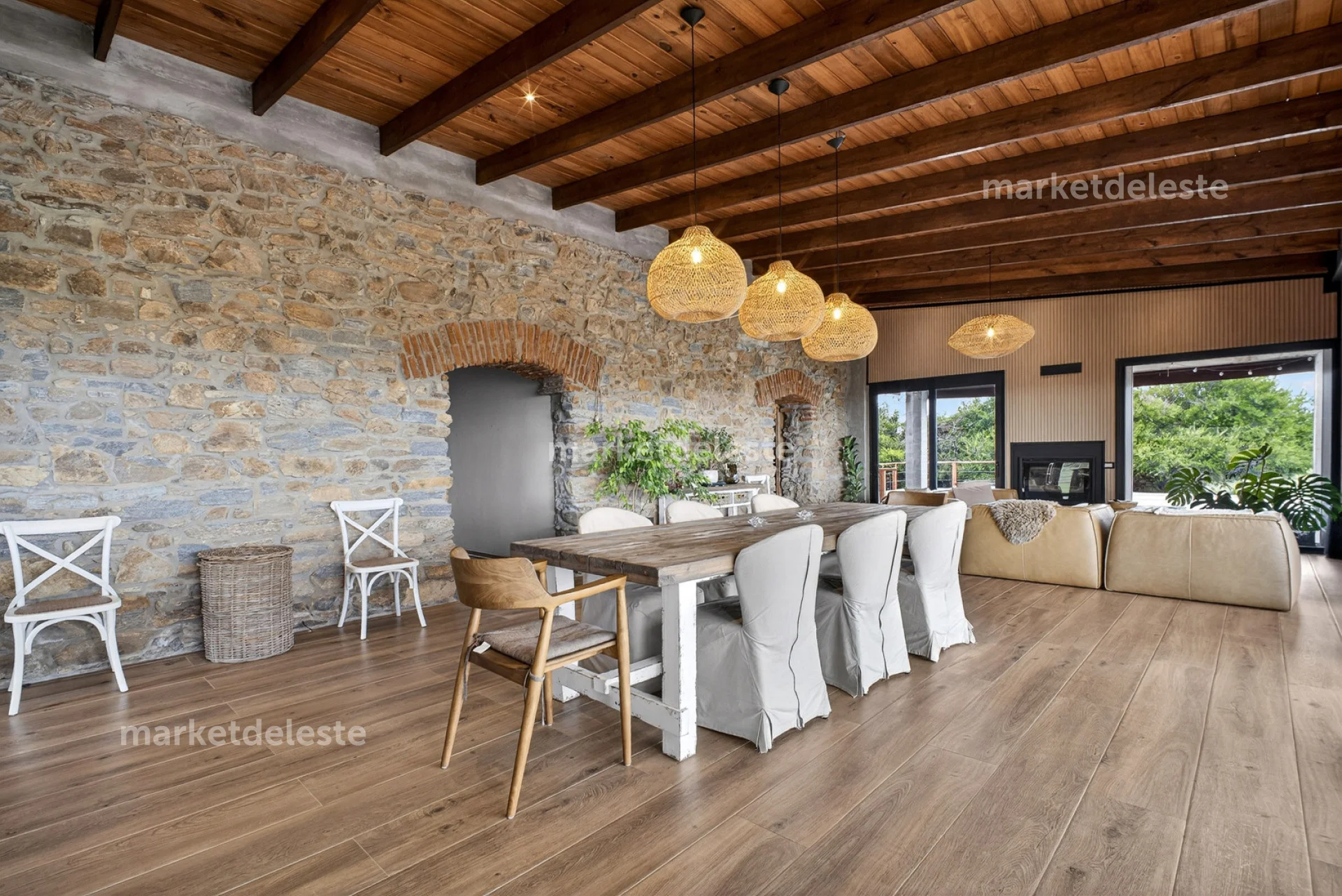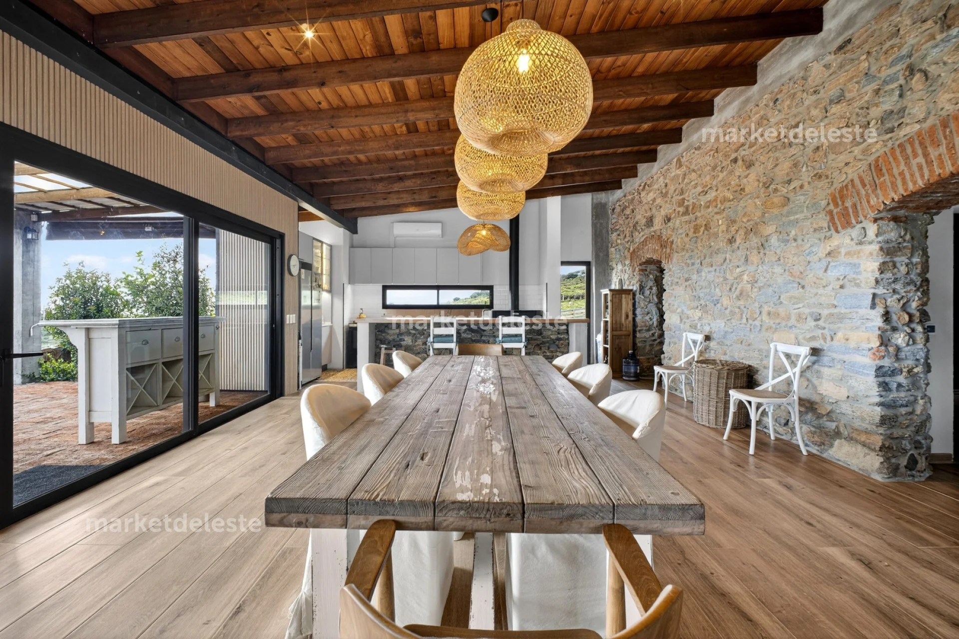 La propiedad se desarrolla en una casa reciclada, que fusiona de forma armónica el estilo rústico en piedra con detalles modernos, logrando un equilibrio ideal entre calidez, diseño y confort.
