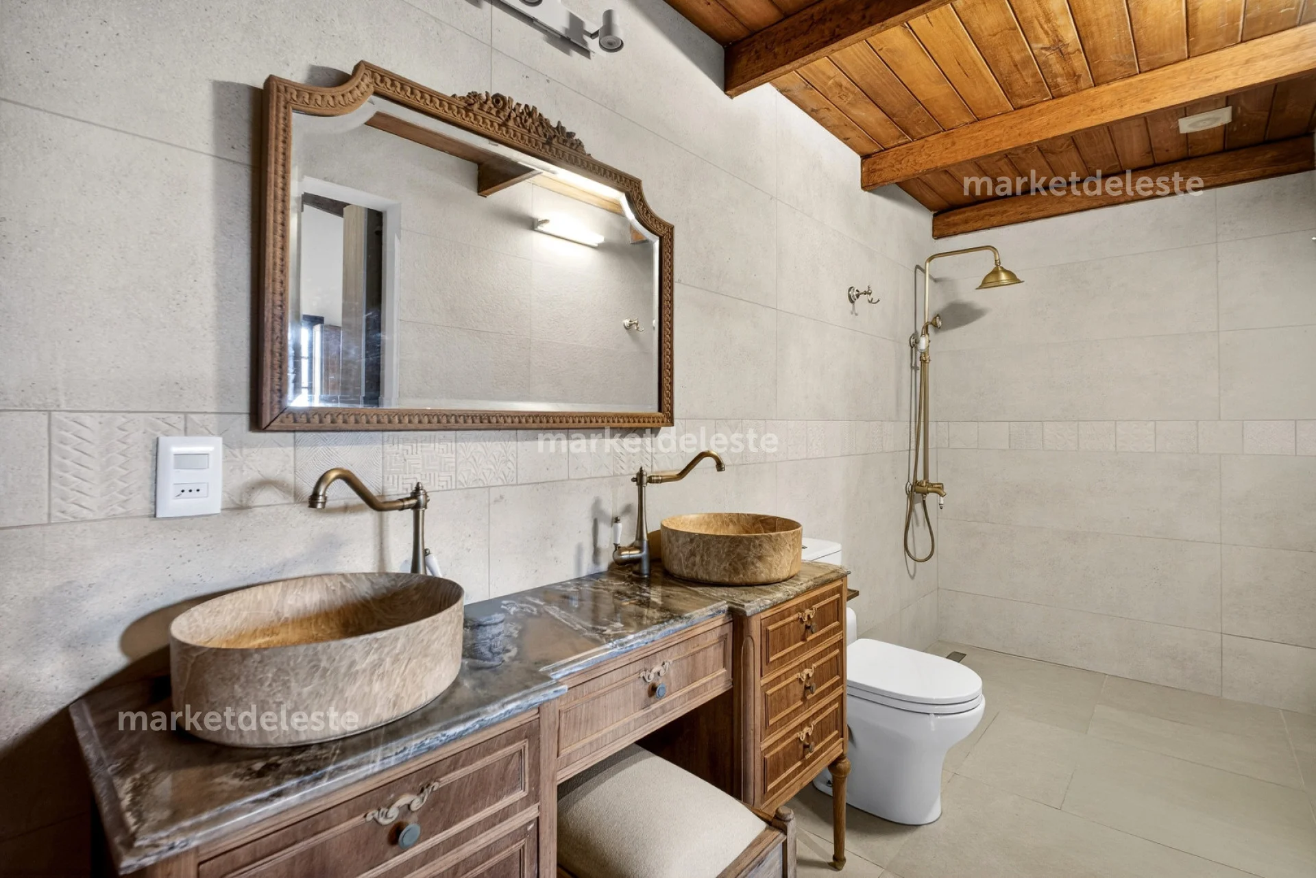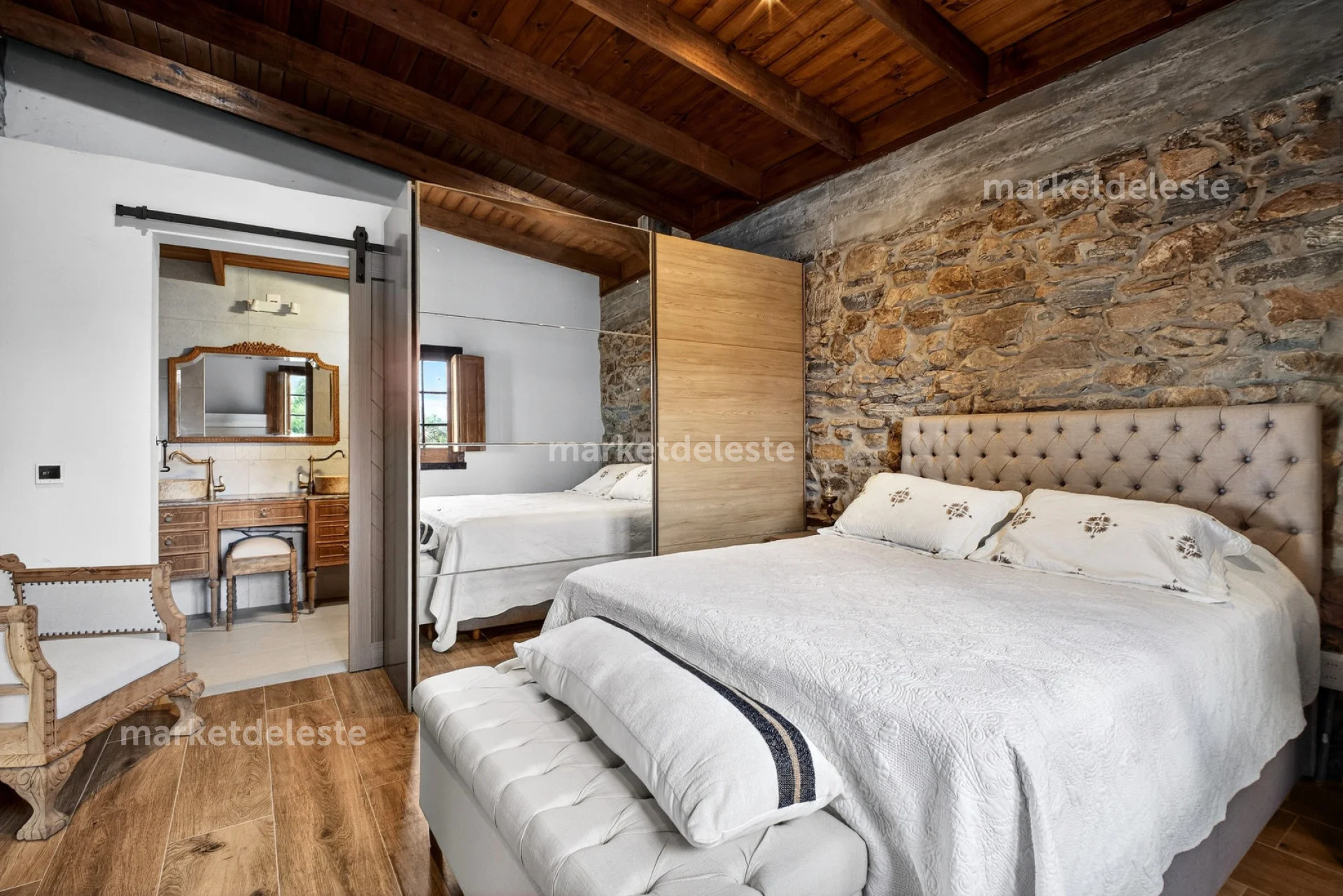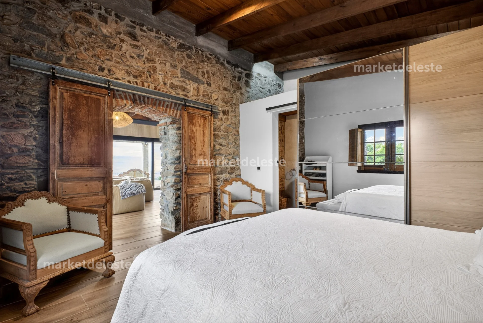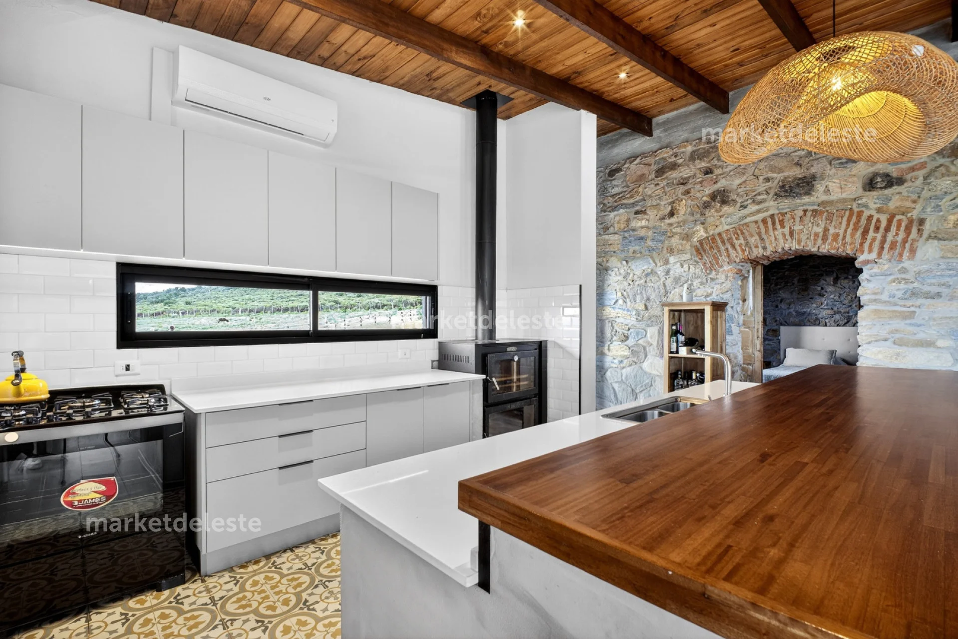 La propiedad se desarrolla en una casa reciclada, que fusiona de forma armónica el estilo rústico en piedra con detalles modernos, logrando un equilibrio ideal entre calidez, diseño y confort.