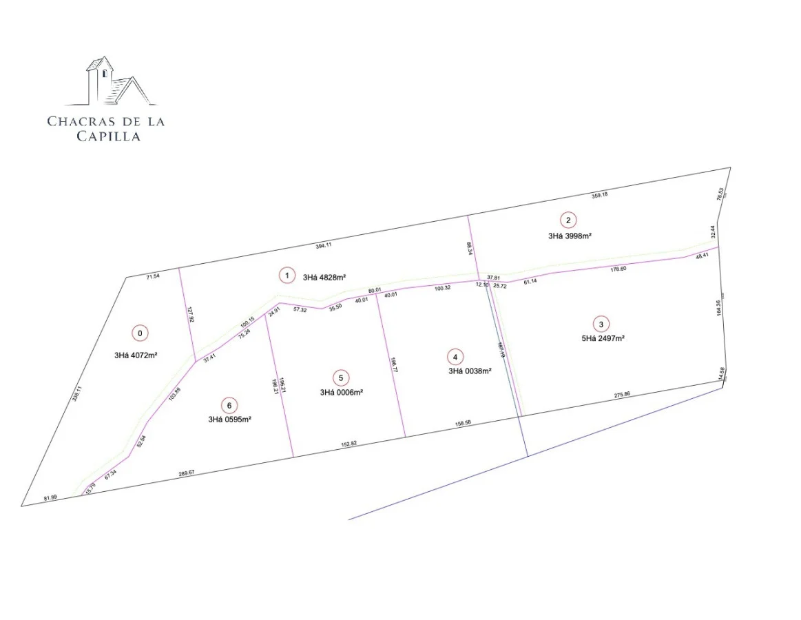 Fraccionamiento de 7 chacras de entre 3 y 5 hectáreas, ubicadas a solo 900 metros de Ruta 12.