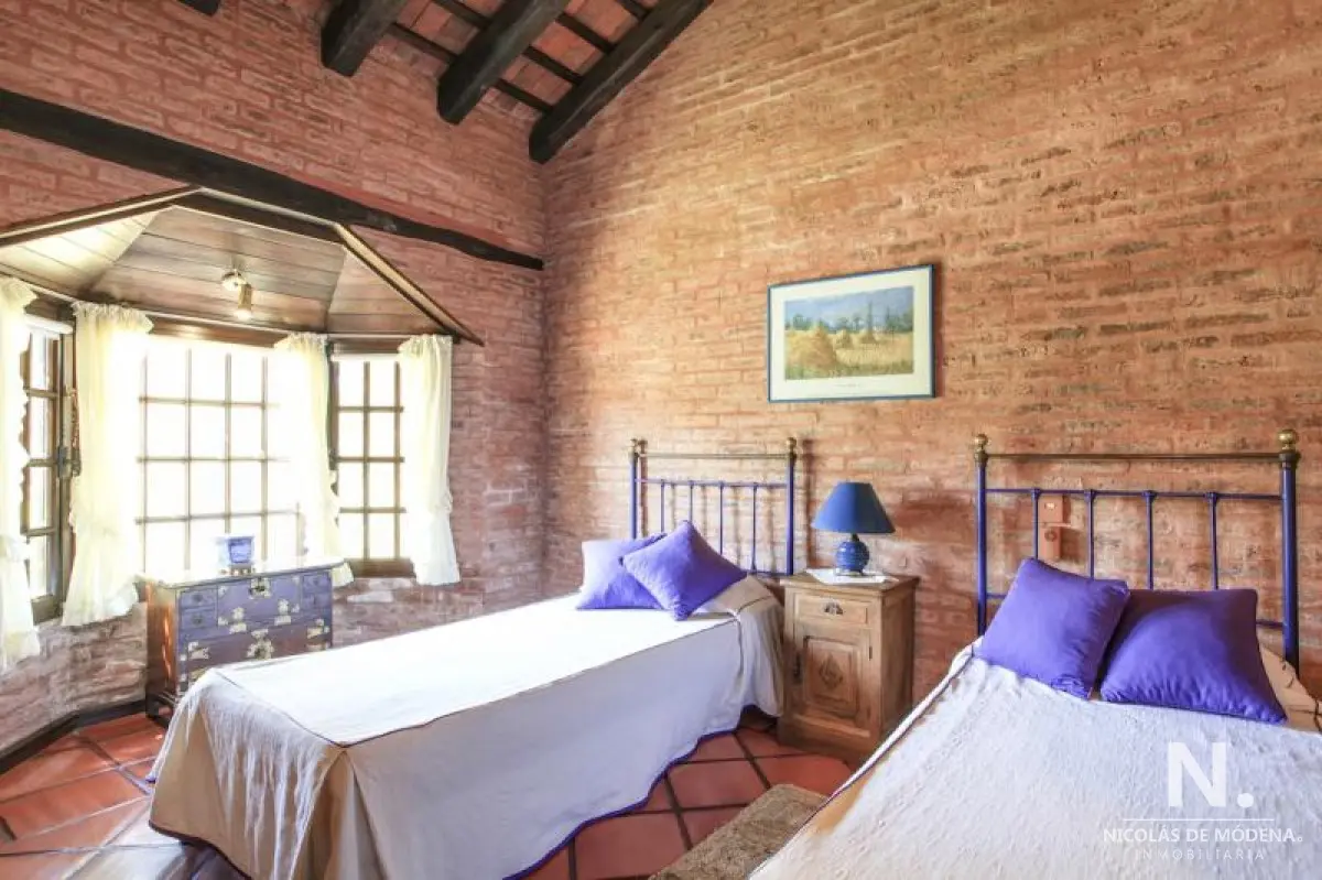 La casa consta de dos plantas, en planta baja se encuentra recepción , living comedor, con hogar a leña, toillette. Tambien cocina, despensa, lavadero . Dos dormitorios que comparten un baño, y suite ppal. Play room