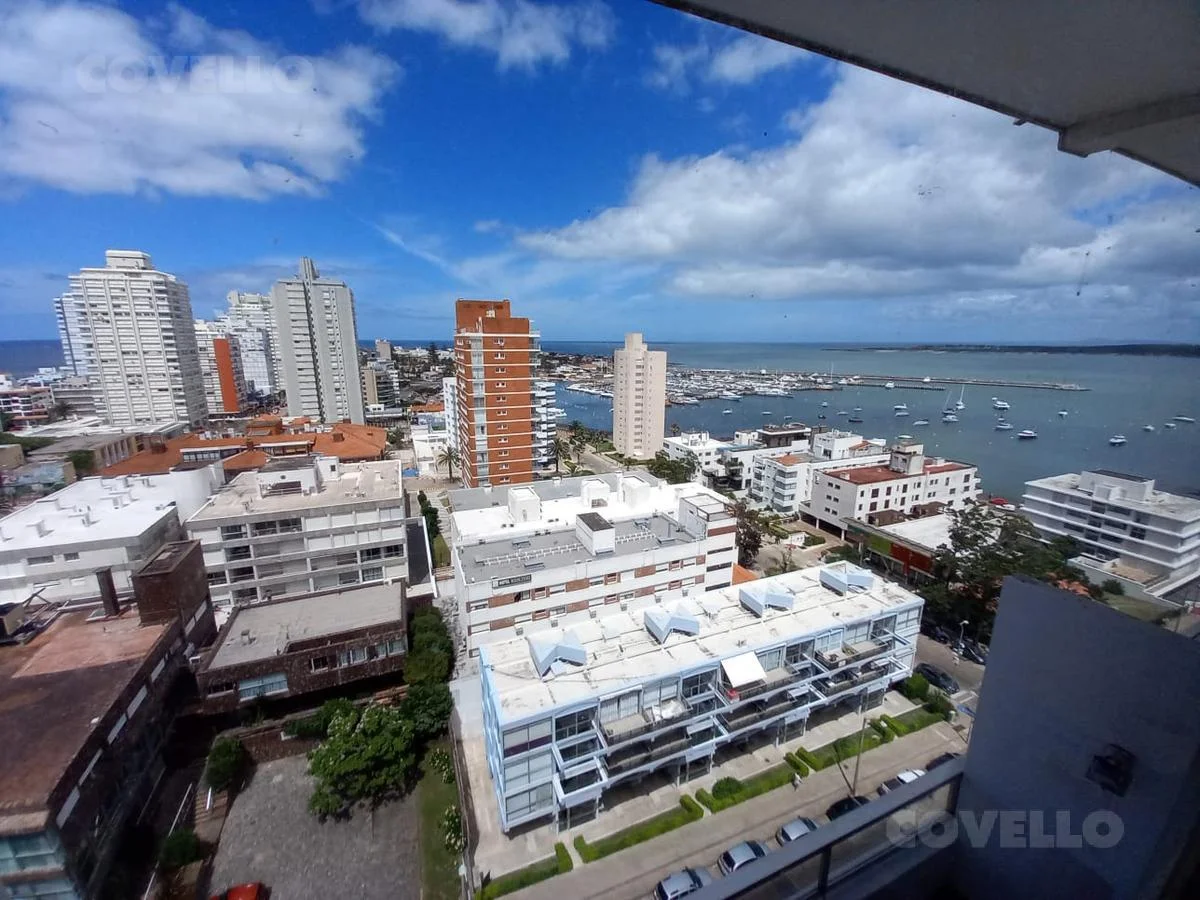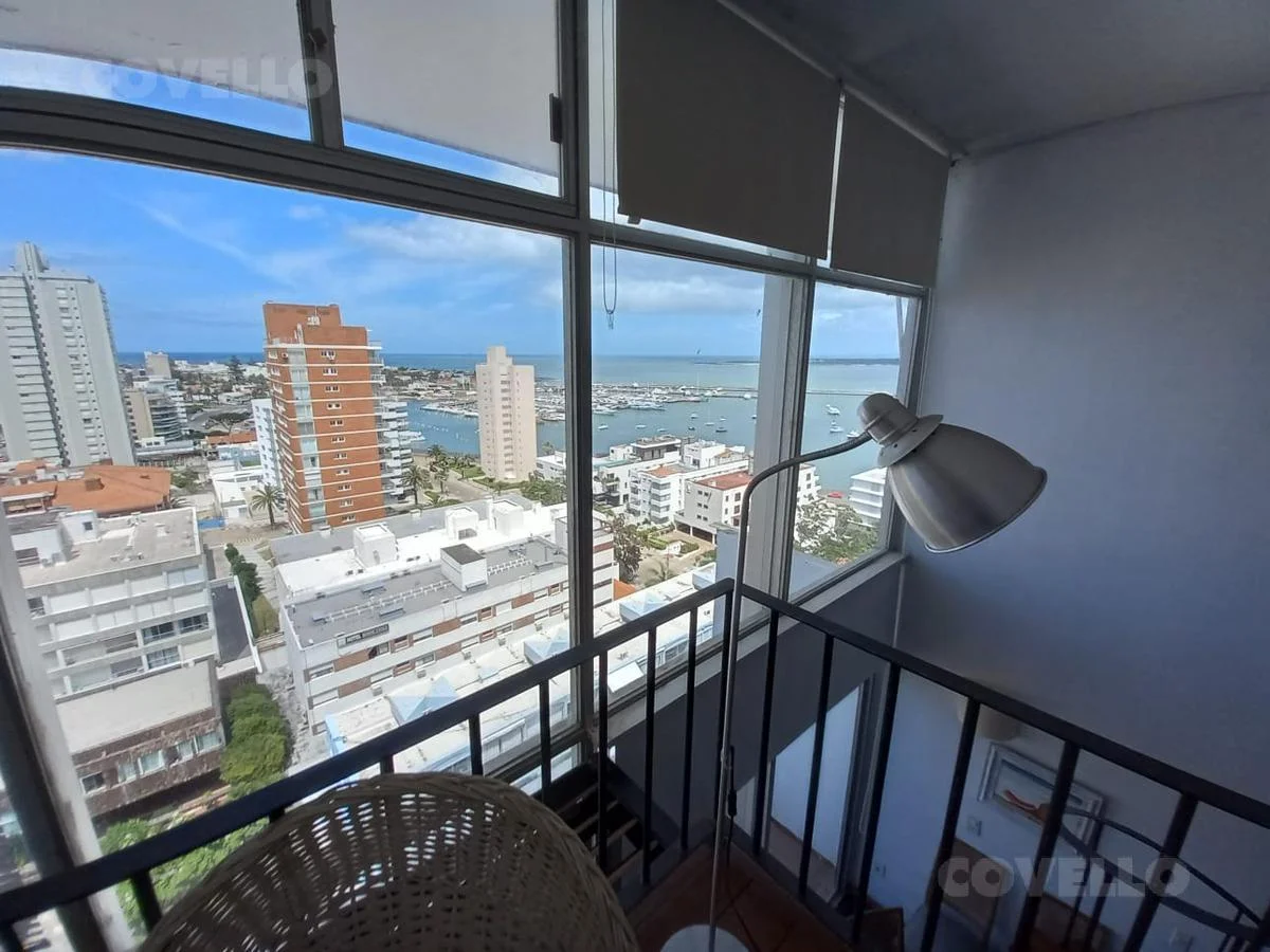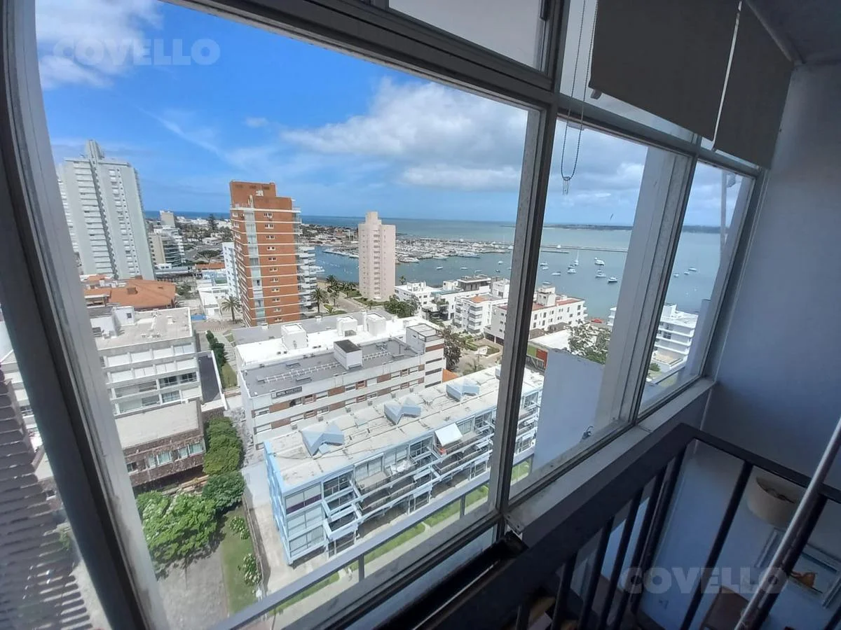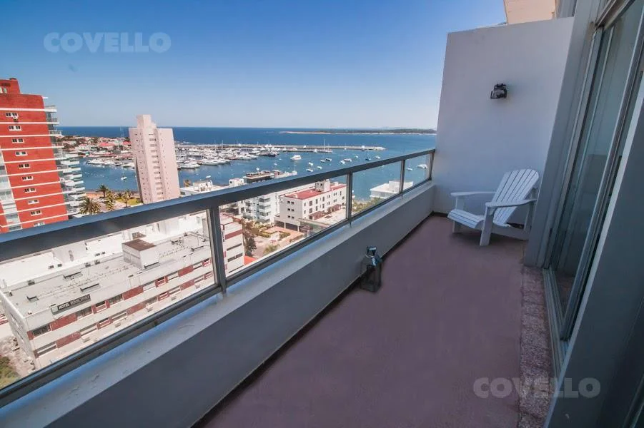 Living comedor con salida al balcón y vista al Puerto de Punta del Este. Toilette.