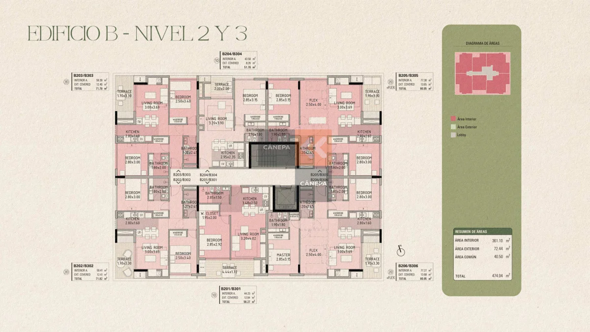 2 dormitorios y 2 baños, uno de ellos en suite.