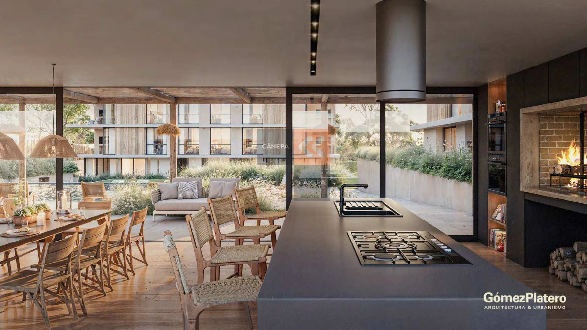 Esta unidad cuenta con living comedor con estufa a leña de alto rendimiento, cocina integrada