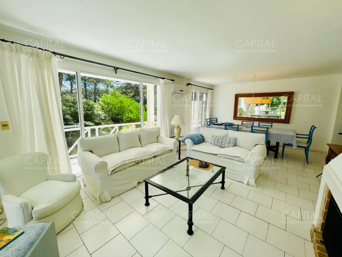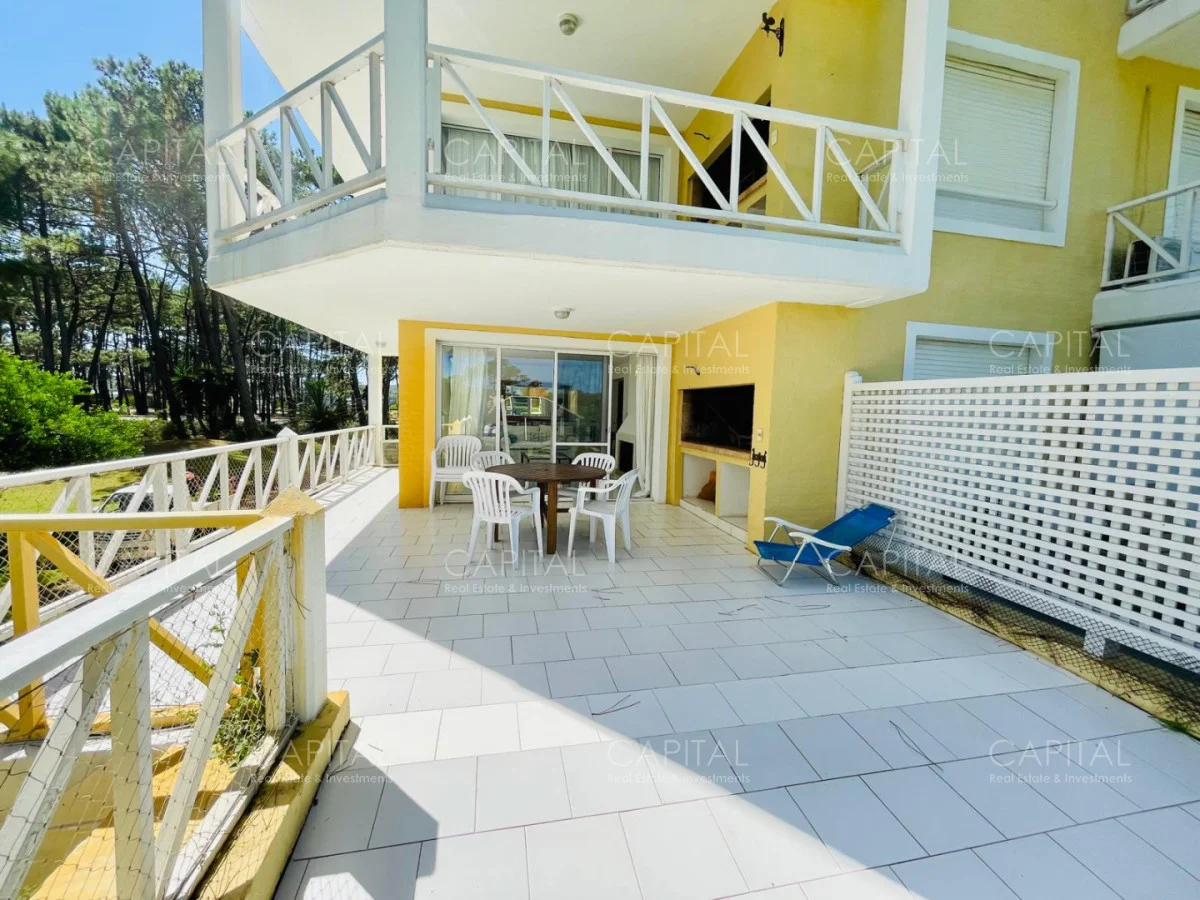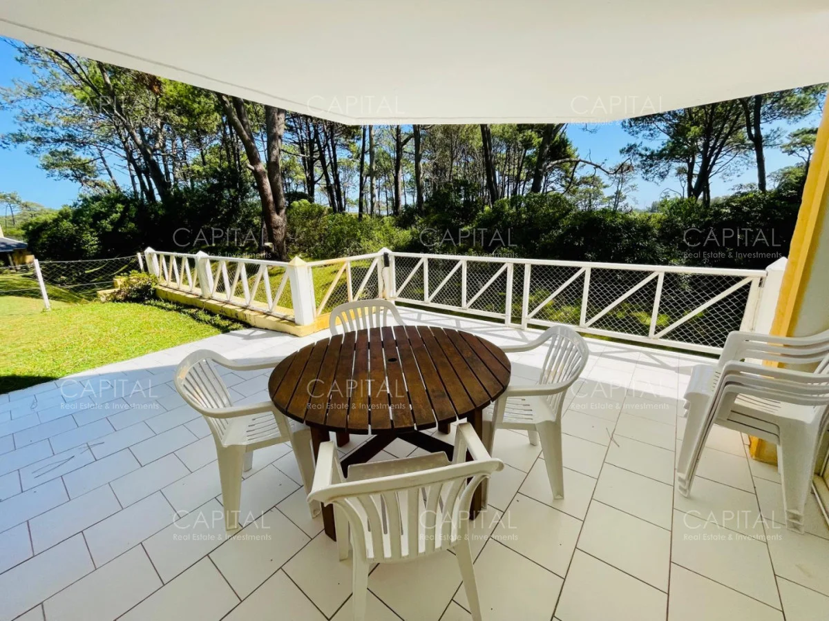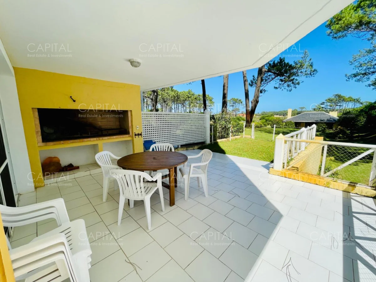 Excelente departamento de muy cómodas dimensiones ubicado en la exclusiva zona de Rincón del Indio en Playa Brava frente al mar. Estilo casita con jardín de uso propio, luminoso living comedor con estufa a leña, gran terraza con parrillero techado y jardín, 2 dormitorios (ppal en suite), 2 baños y dependencia completa. Cocina definida super cómoda con lavadero. Totalmente equipado. Garage techado. Edificio bajo de pocas unidades con servicio de mucamas todo el año, piscina exterior, barbacoa y cancha de tenis.