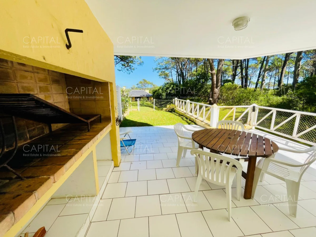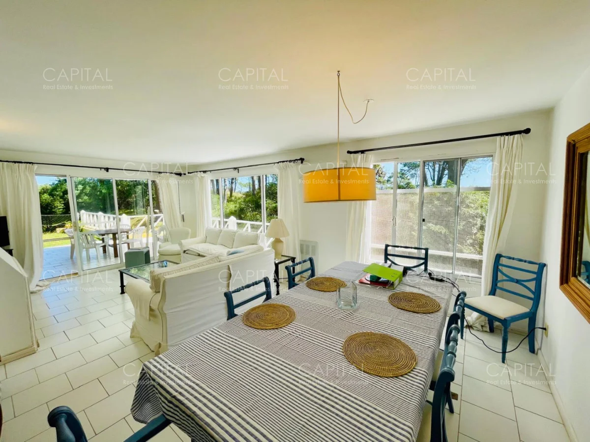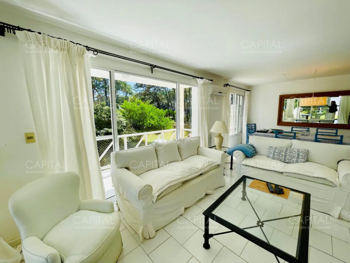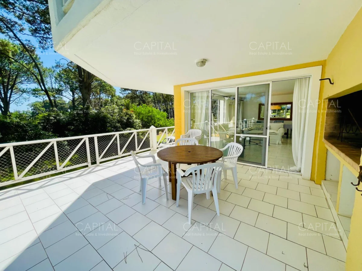 Excelente departamento de muy cómodas dimensiones ubicado en la exclusiva zona de Rincón del Indio en Playa Brava frente al mar. Estilo casita con jardín de uso propio, luminoso living comedor con estufa a leña, gran terraza con parrillero techado y jardín, 2 dormitorios (ppal en suite), 2 baños y dependencia completa. Cocina definida super cómoda con lavadero. Totalmente equipado. Garage techado. Edificio bajo de pocas unidades con servicio de mucamas todo el año, piscina exterior, barbacoa y cancha de tenis.