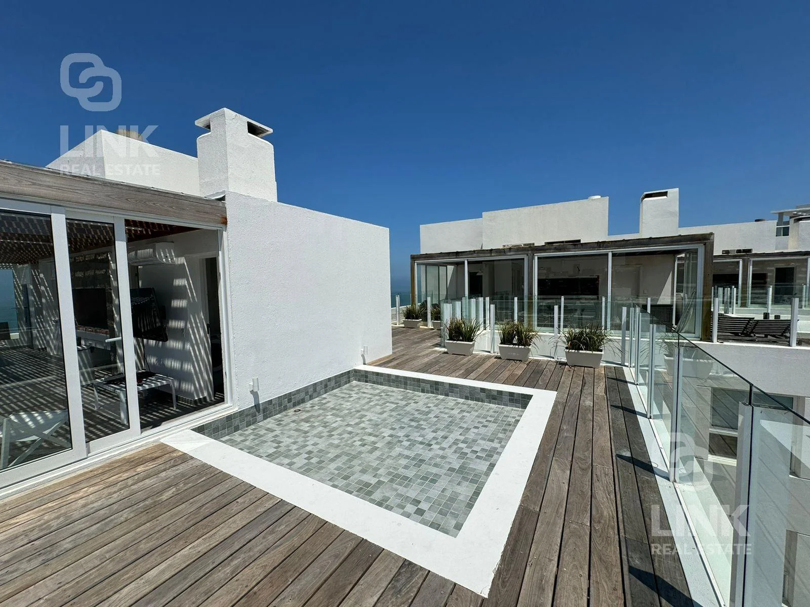 Terraza Exterior con un espejo de agua propio y jacuzzi, ofreciendo un espacio exclusivo para relajarse y disfrutar.