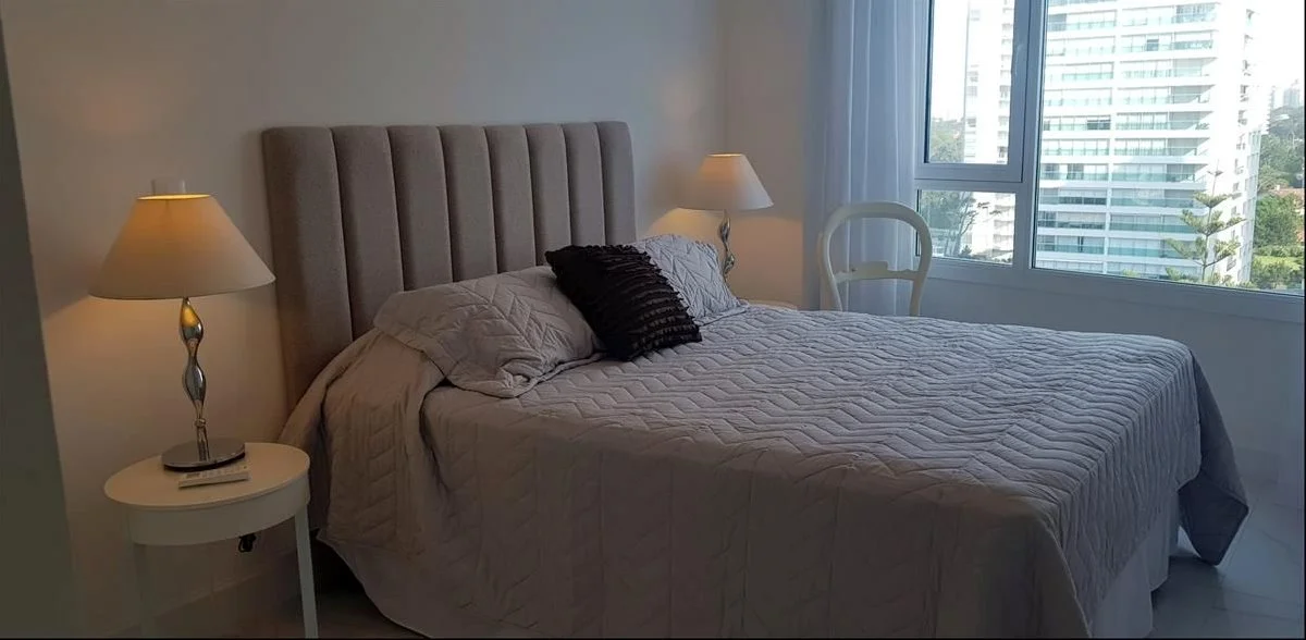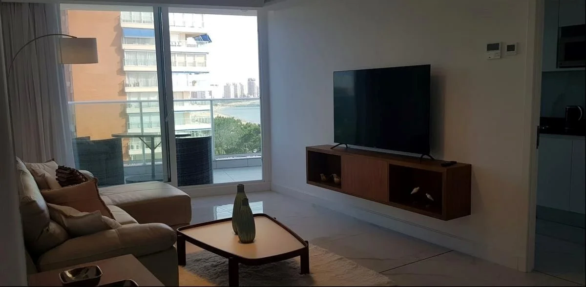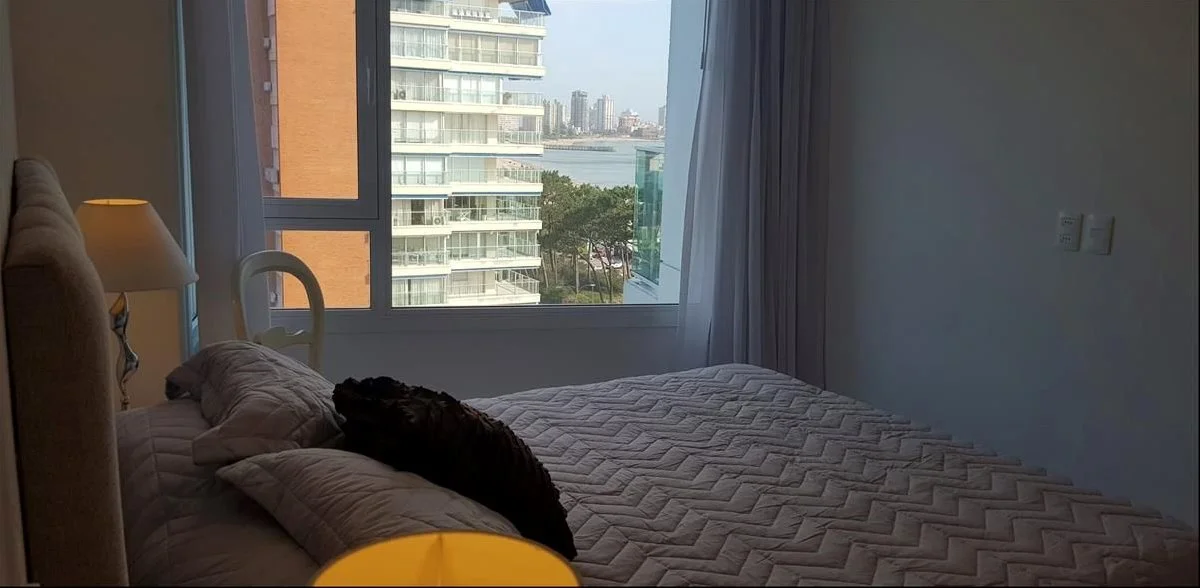 Departamento en la nueva Smart Tower de Playa Mansa. El edificio Paramount, es la torre más exclusiva de las paradas. Cómodo living comedor, con amplia terraza con vistas al mar y hacia Puerto de Punta del Este. Cocina totalmente equipada, integrada al living comedor. Dos amplias suites y toilette. Unidad equipada para vivir todo el año: aires acondicionados en todos los ambientes, lavarropas y lavavajillas.