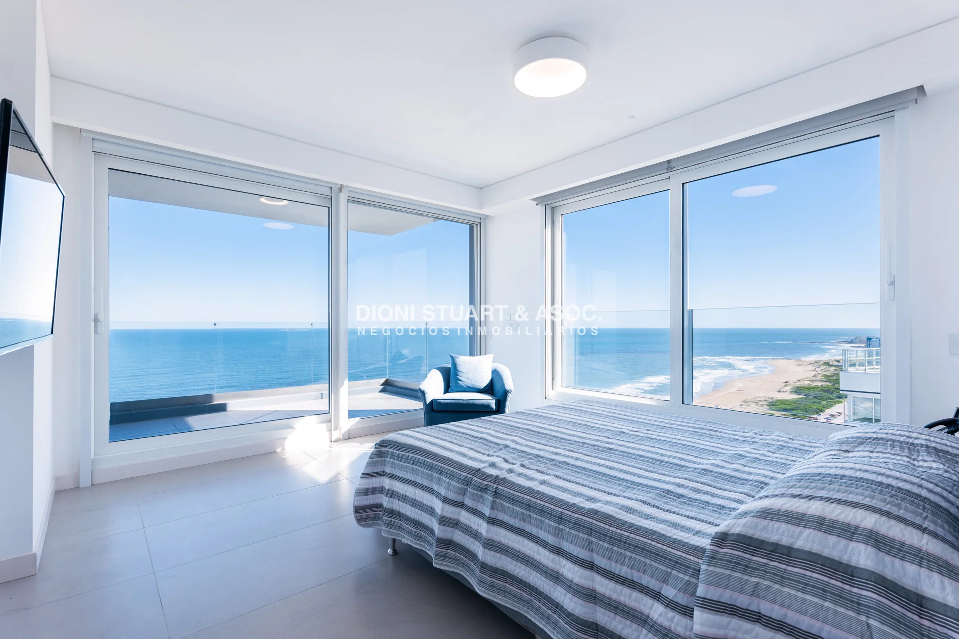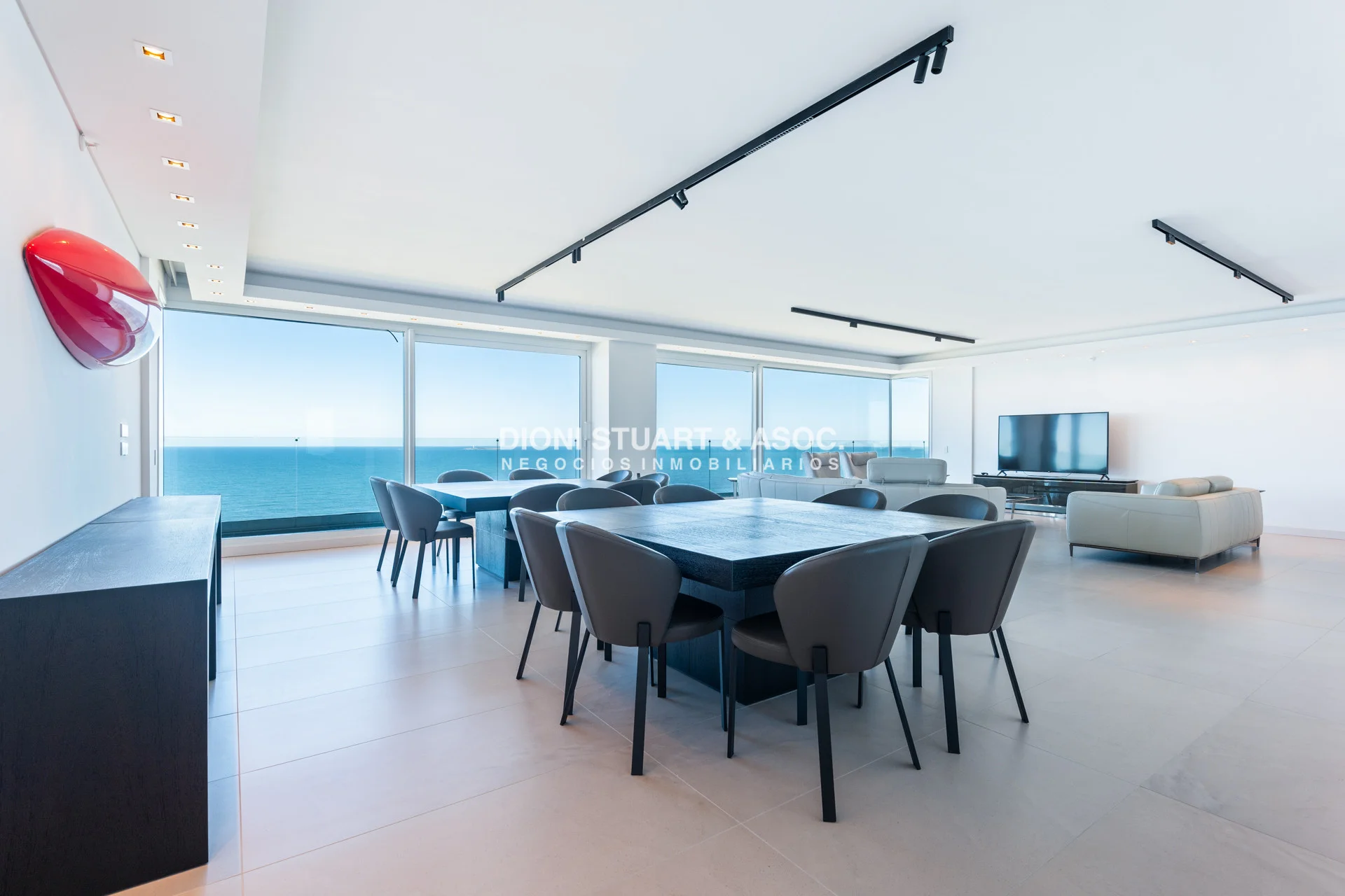 Les presentamos este increíble departamento unificado frente al mar en Playa Brava en el edificio Le Parc III. Dos apartamentos se transforman en uno, para convertir este semi-piso en una unidad de 435m2 totales con dos master suites frontales al mar con espectacular vista, vestidor walk-in y un cómodo baño, a demás dos suites con placares empotrados, escritorio con baño (quinto dormitorio), amplia cocina definida con terraza propia, gran dependencia con baño, y lavadero con terraza.