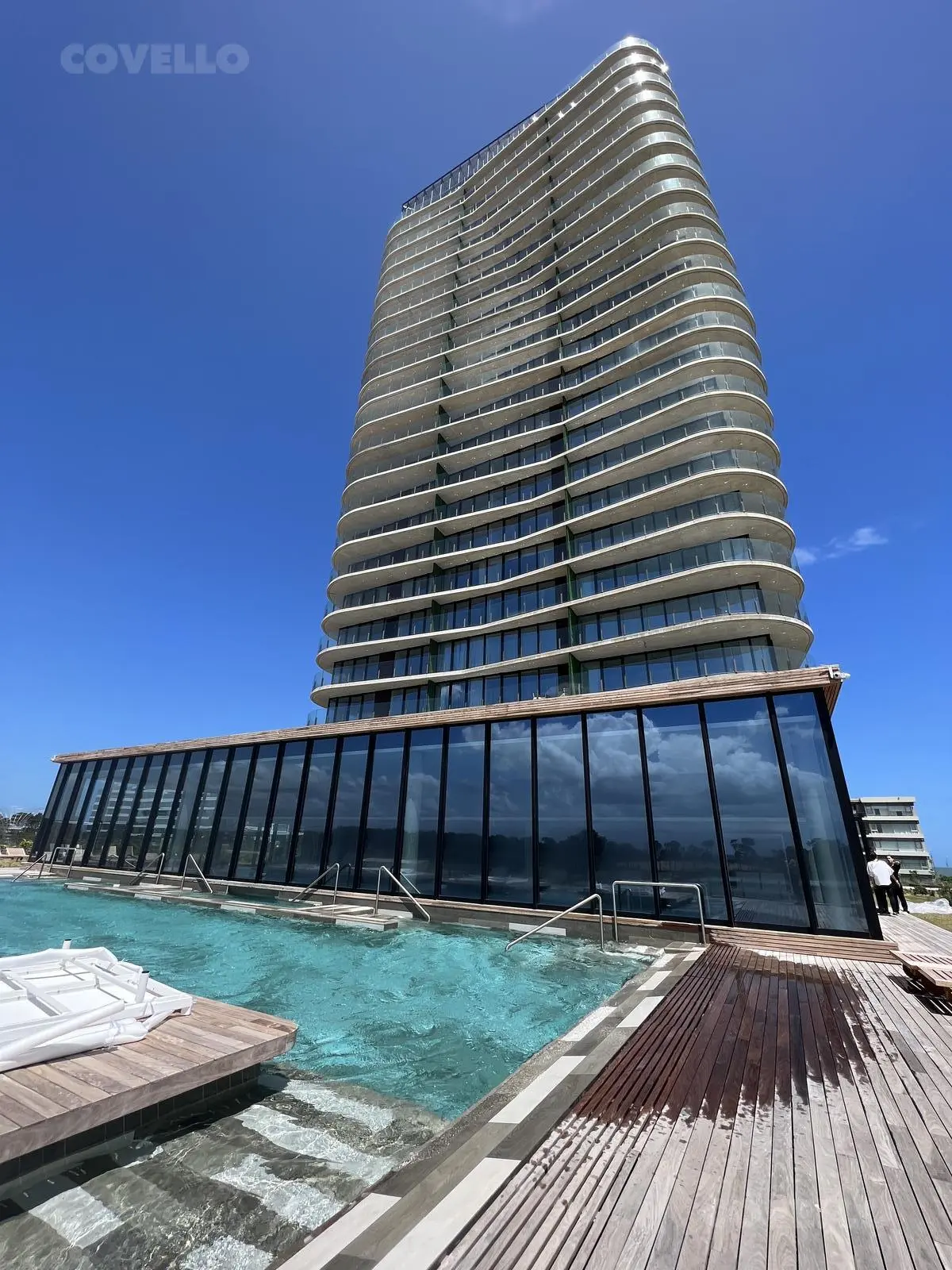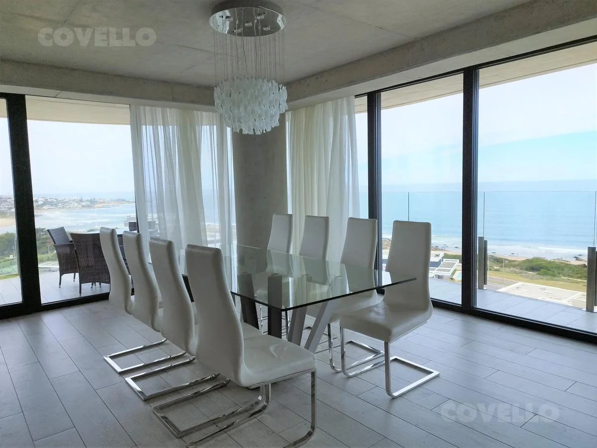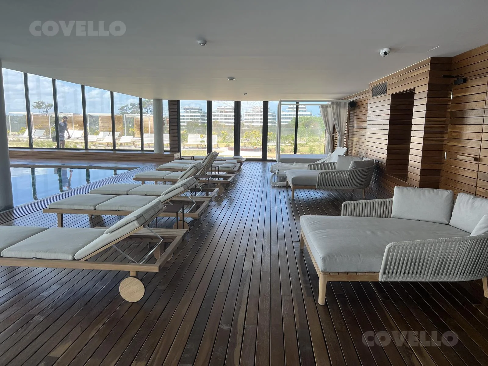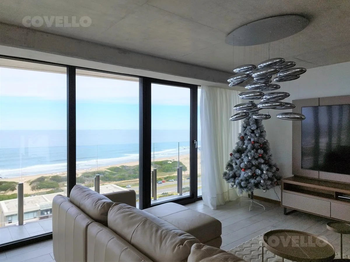 Unidad esquinera, con hermosas vistas al mar y a La Barra, de tres dormitorios con gran terraza que cubre el apartamento , comedor con cocina integrada , tres dormitorios en suites mas den, máster suite con vestidor, toilette.