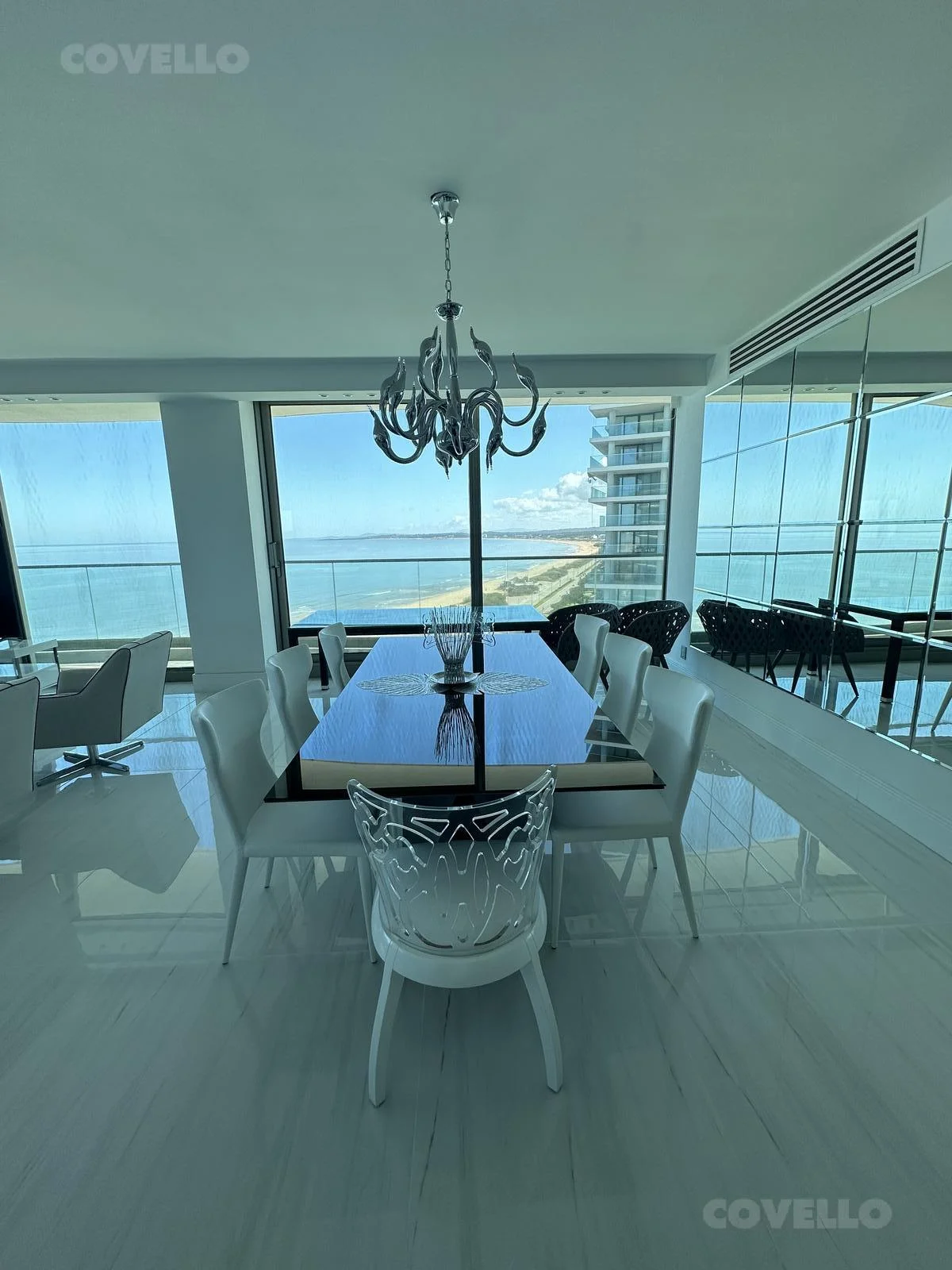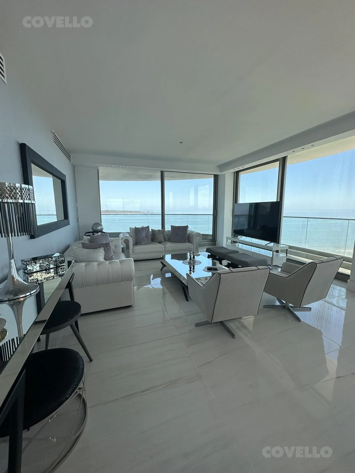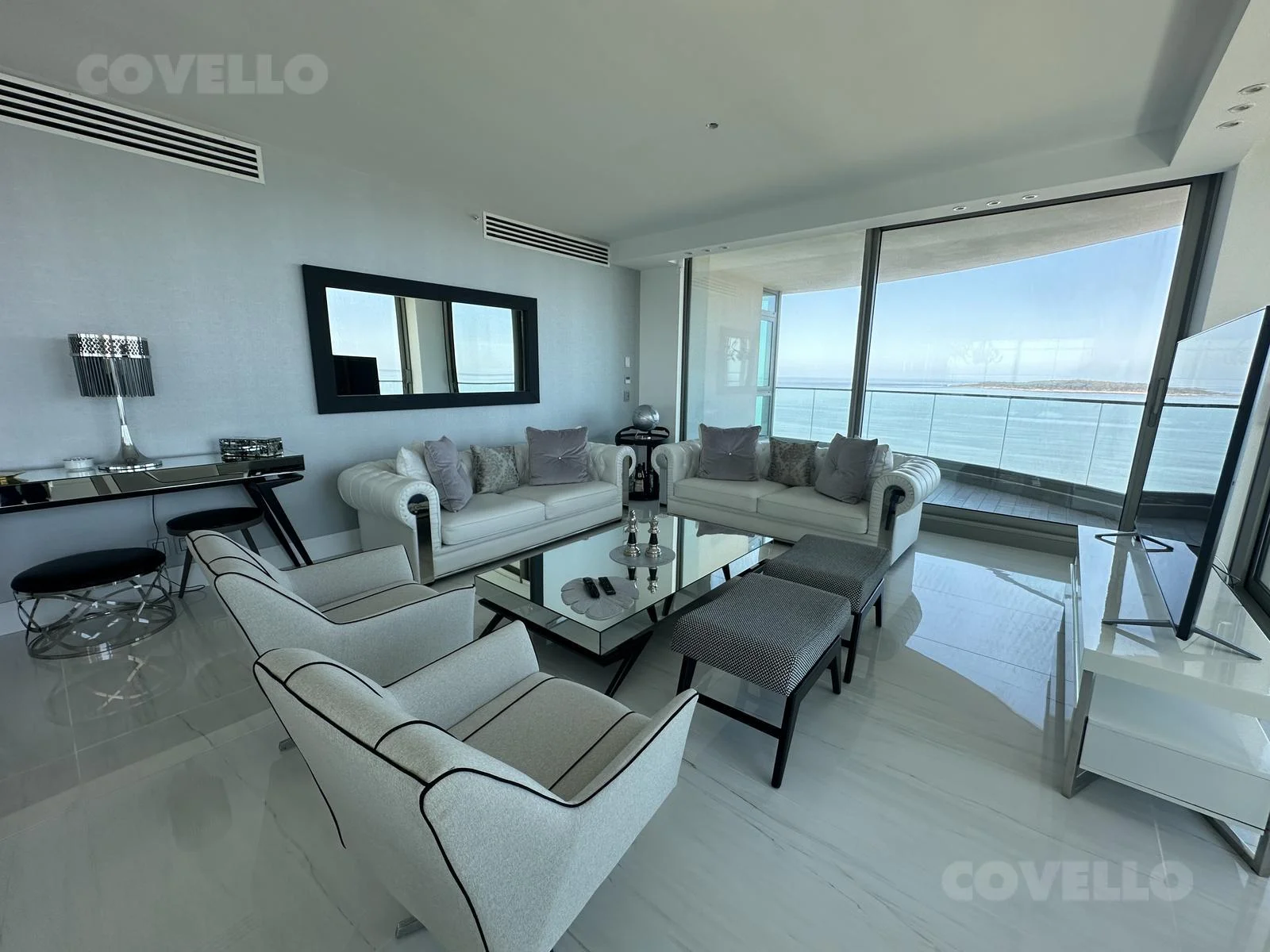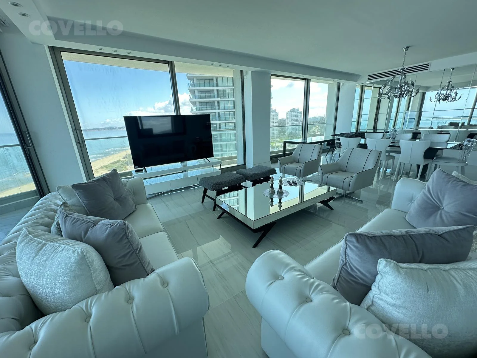 Hermoso Dpto. de 3 dormitorios y servicio a estrenar en edificio de lujo, está amueblado con equipamiento sumamente fino y tiene unas hermosas vistas a la playa mansa.