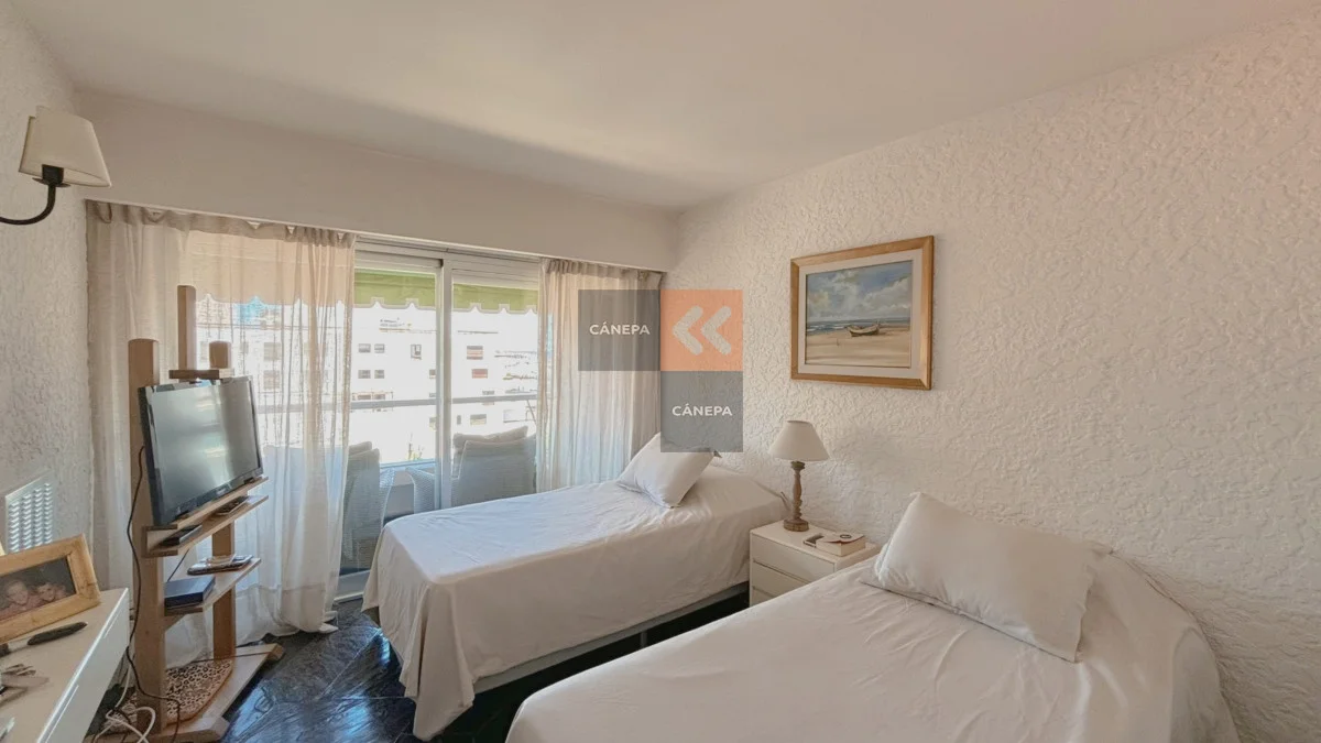 Ubicado en Edificio La Caleta, en plena península. Planta con excelente distribución. Living comedor con salida a amplia terraza Dormitorio principal al frente 2 dormitorios en suite Cocina totalmente reciclada Lavadero Garage para un vehículo Vidrios dobles en todo el departamento Aire acondicionado en los dormitorios y living comedor Gastos comunes U$S 800 promedio mensual Coordinemos su visita Referencia Interna : Tera-14178