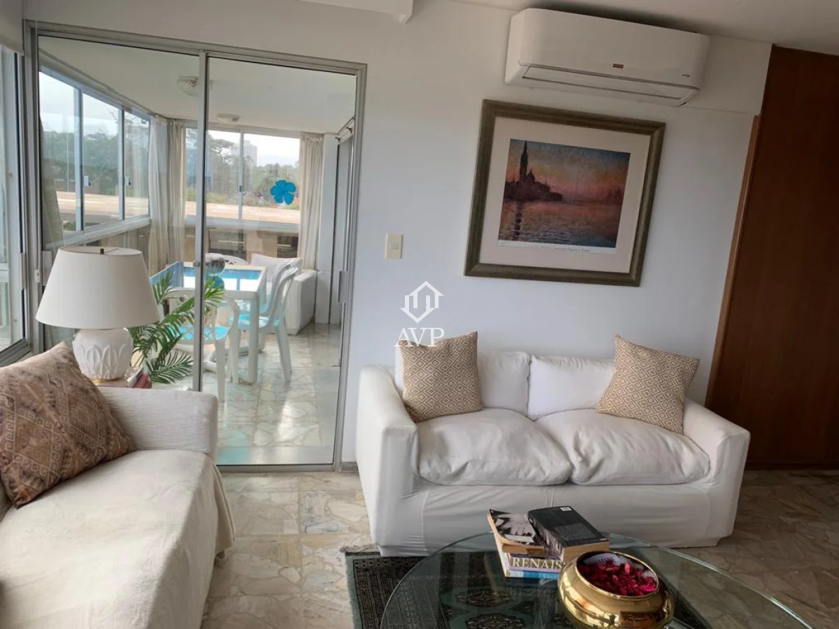 Tradicional torre con vista a la Mansa Excelente orientación Living comedor con terraza cerrada 3 dormitorios (uno en suite) 3 baños Cocina con desayunador Lavadero Cochera techada Piscina climatizada Gimnasio Servicio de mucama Servicio de playa Referencia Interna : Tera-791