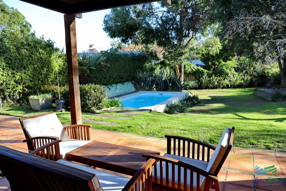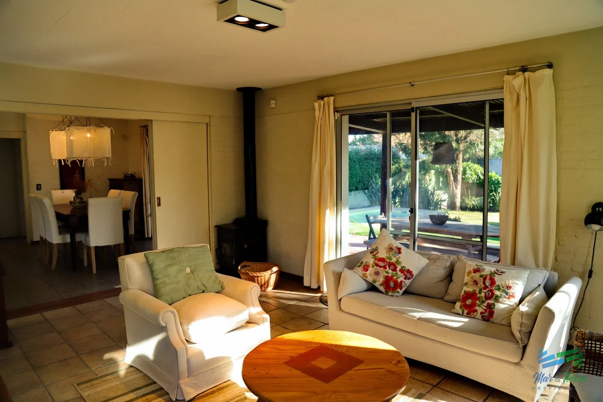 Casa de excelente construcción, moderna, bien equipada con piscina climatizada. Ubiacada en Pinares, a 3 cuadras del mar. COMODIDADES: - Living-comedor - Estar - 4 dormitorios - 2 baños - Cocina - Parrillero techado - Piscina - Cochera abierta con portón electrico Terreno de 906 m2 y 220 m2 construidos. Referencia Interna : Tera-1741