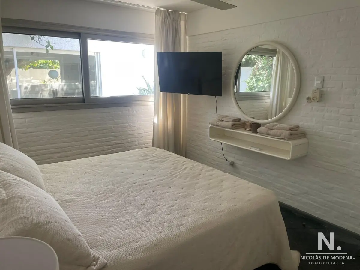 El equipamiento de la propiedad es completo y moderno, destacándose el anafe, microondas, lavavajillas, heladera con freezer, aire acondicionado, televisión, y horno. Además, cuenta con placards tanto en la cocina como en el dormitorio principal, así como bidet en los baños, garantizando comodidad y practicidad en cada detalle.