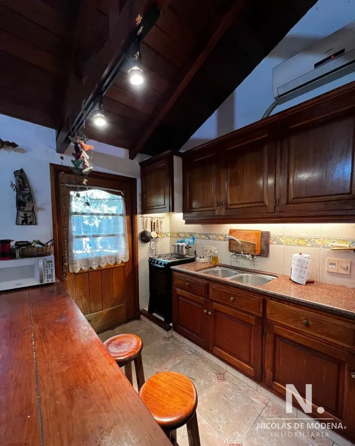 En cuanto a su distribución interna, la casa dispone de una cocina totalmente equipada que se integra con un acogedor y amplio living comedor. En términos de equipamiento, la cocina cuenta con anafe, microondas y heladera con freezer, proporcionando todo lo necesario para preparar y almacenar alimentos durante la estadía. Además, la casa está equipada con aire acondicionado y televisión para mayor confort de los huéspedes. Los dormitorios cuentan con placard, y los baños incluyen bidet, garantizando comodidad y funcionalidad.