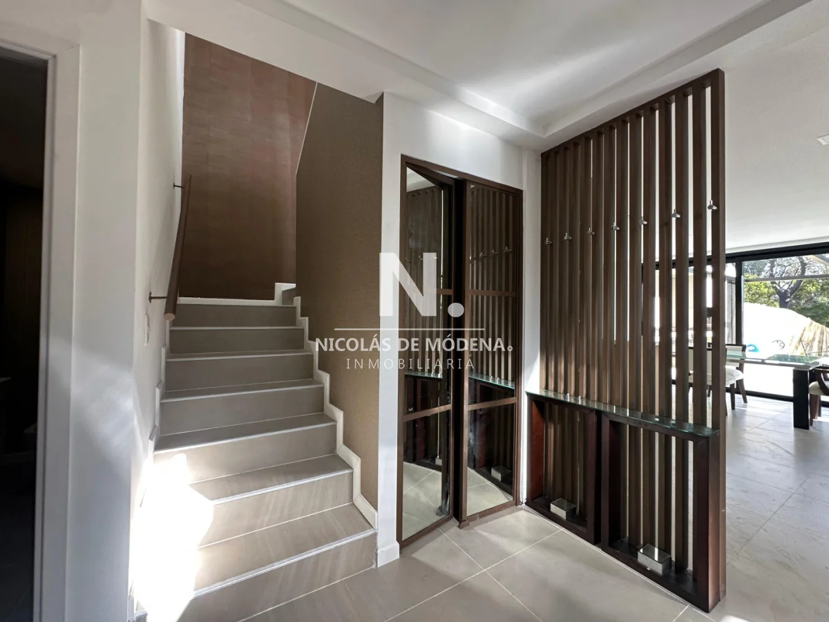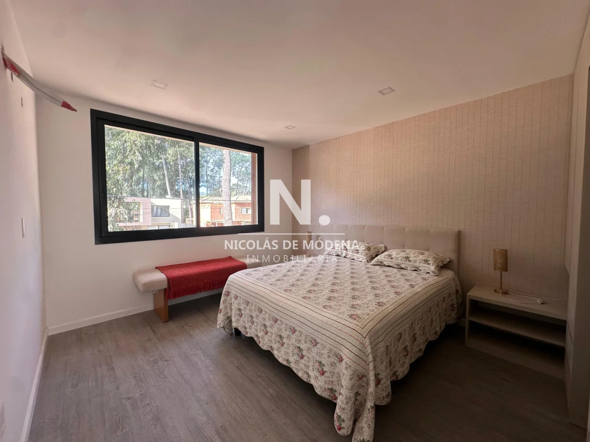 La vivienda se desarrolla sobre un terreno de 500 m² y cuenta con 200 m² edificados, aprovechados de manera eficiente para brindar amplitud y funcionalidad. Dispone de 4 dormitorios, todos en suite, lo que garantiza total privacidad y confort para hasta 10 personas. Sus interiores destacan por su luminosidad y estilo, con un living amplio, comedor independiente y un living comedor pensado para reuniones sociales o momentos de relax. La cocina, completamente equipada, incluye anafe, horno, microondas, heladera con freezer, campana y generoso espacio de guardado tanto en placares de cocina como en los dormitorios. Los baños presentan terminaciones de calidad, equipados con bañera y bidet, aportando un toque de confort adicional.