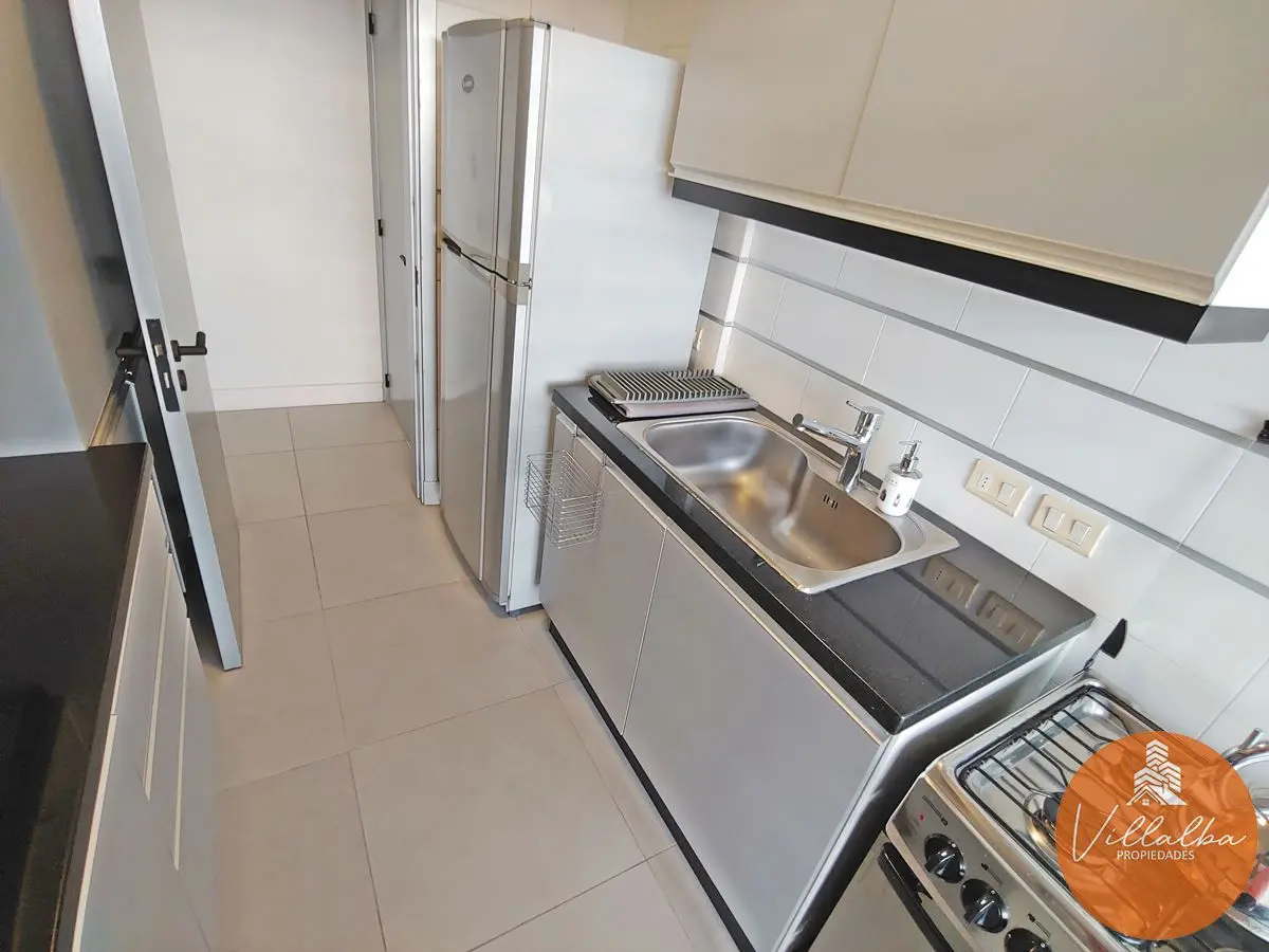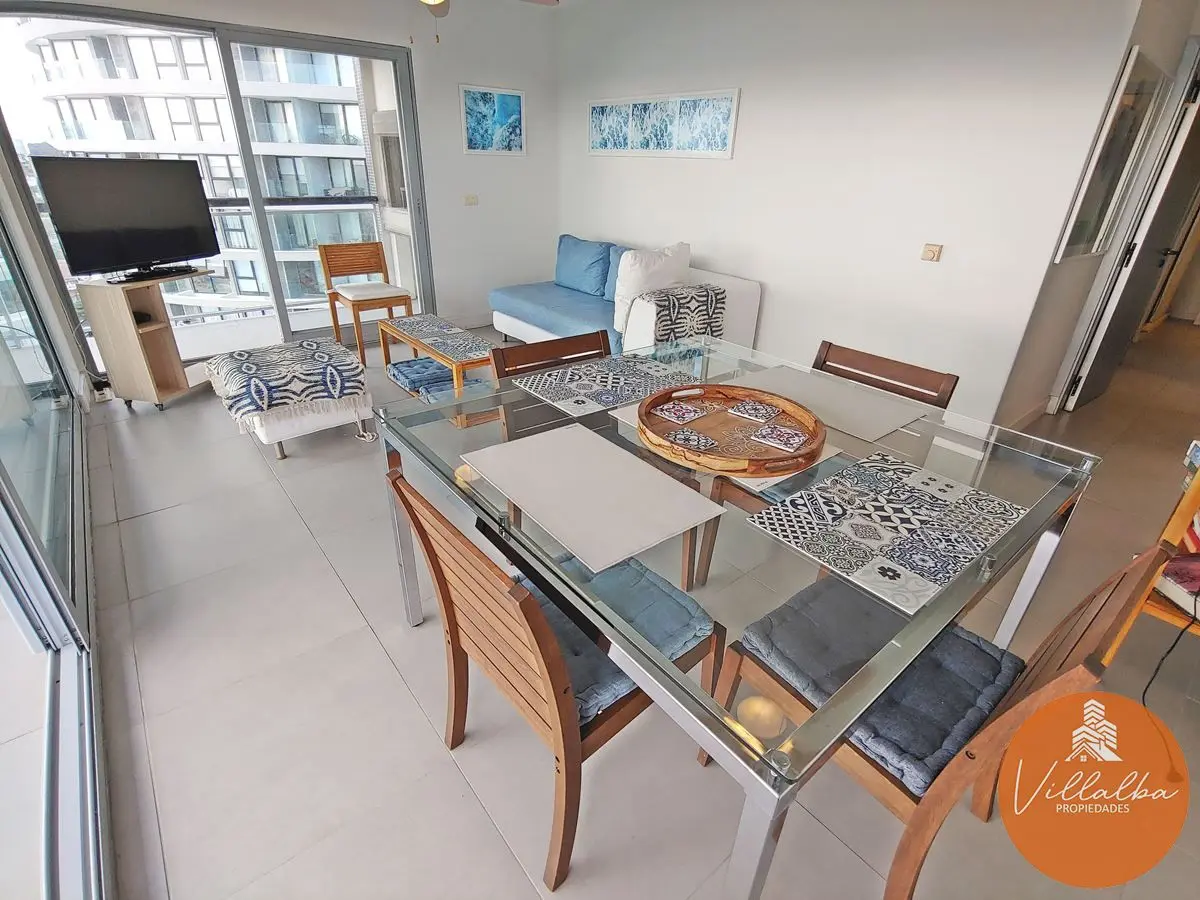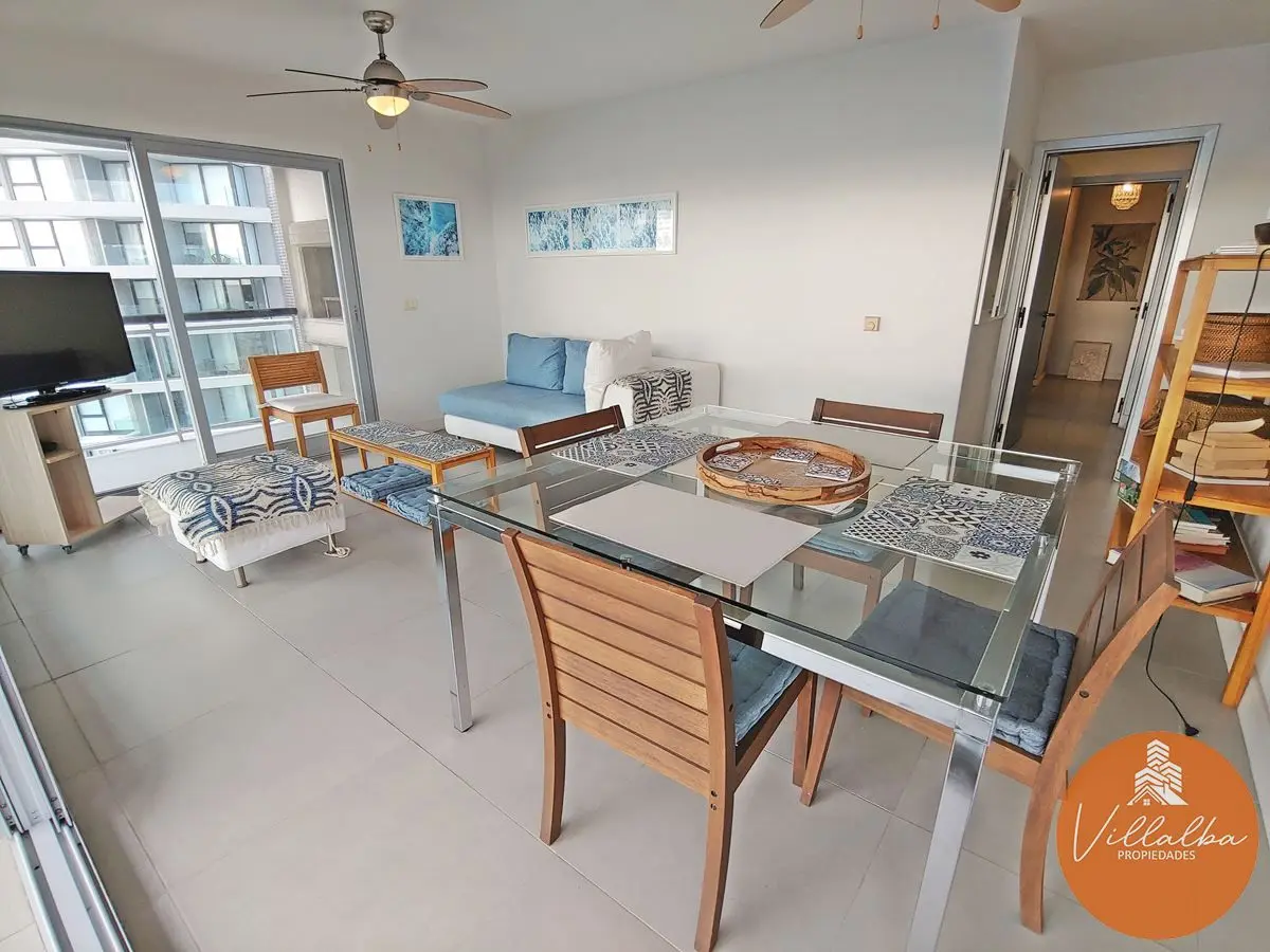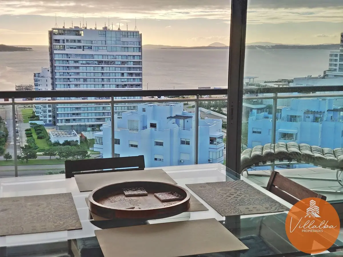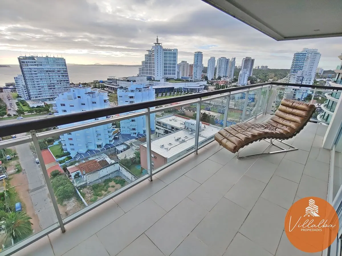 Esquinero en piso alto con espectaculares vistas al mar. Apartamento de 2 dormitorios y 2 baños. Cocina independiente con terraza lavadero. Dos grandes balcones, uno de ellos con parrillero privado. Living comedor totalmente vidriado. Garage en subsuelo. Muy bien equipado.