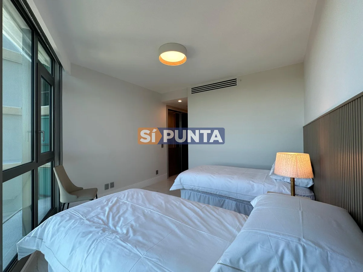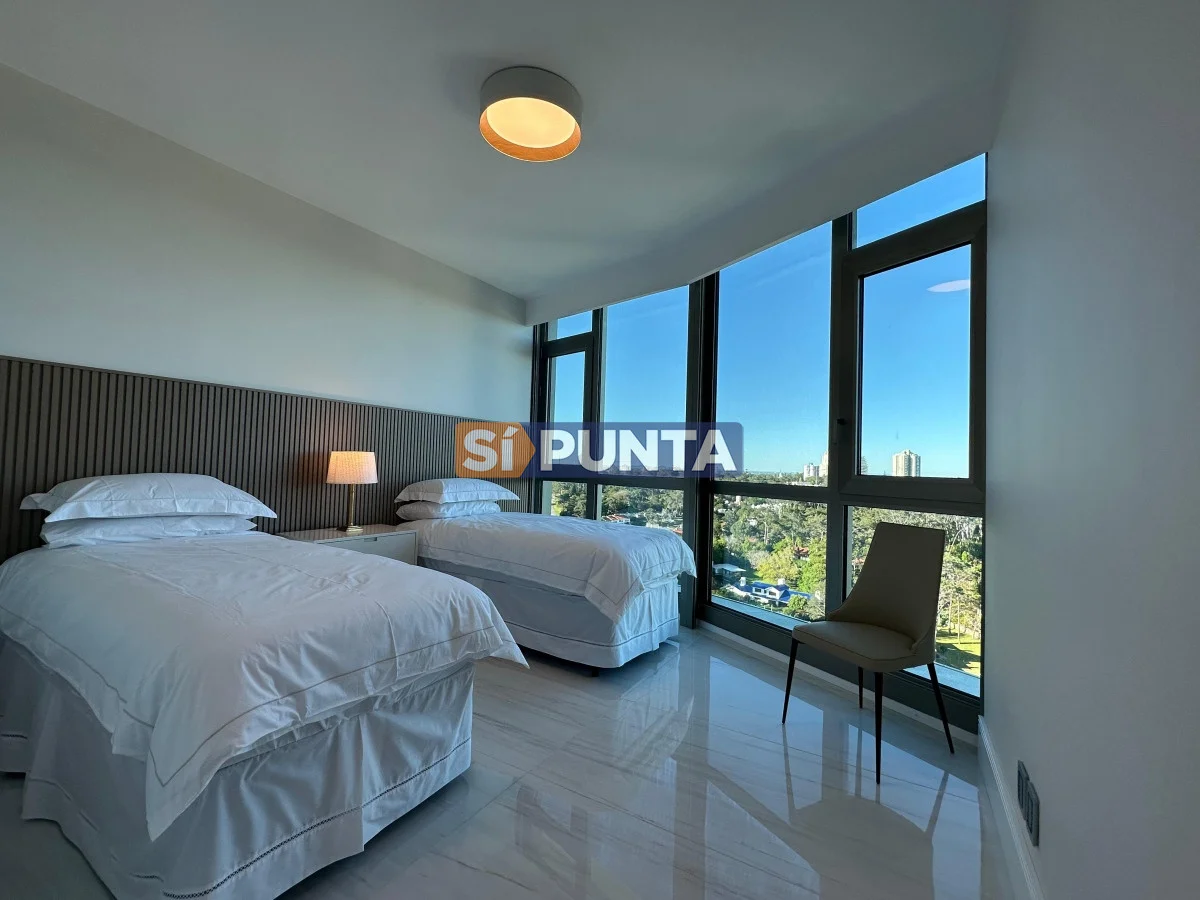 Este departamento cuenta con 3 dormitorios, cada uno con su propio baño, lo que significa que hay 3 suites privadas. Esto brinda una comodidad excepcional y privacidad para hasta 6 personas, con tres camas disponibles en total. La cocina es amplia y está totalmente equipada con electrodomésticos modernos, incluyendo anafe, microondas, lavarropas, lavavajillas, heladera con freezer y tostadora, Además, el apartamento cuenta con aire acondicionado para mantener una temperatura agradable en todo momento en su espacioso e iluminado living comedor