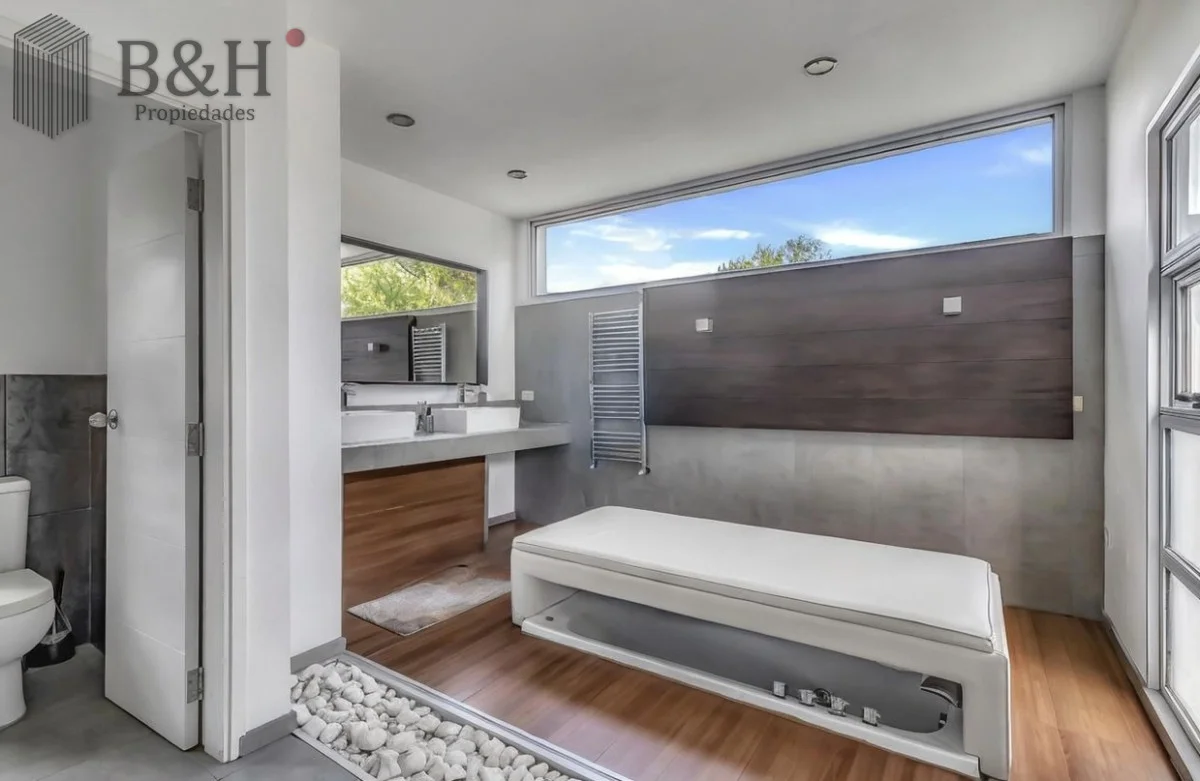 En el tercer nivel tiene una sala para reuniones con un gran living, barra frigobar y cava de vinos.