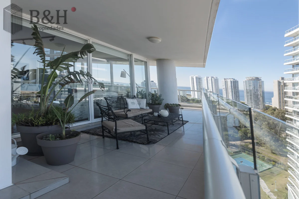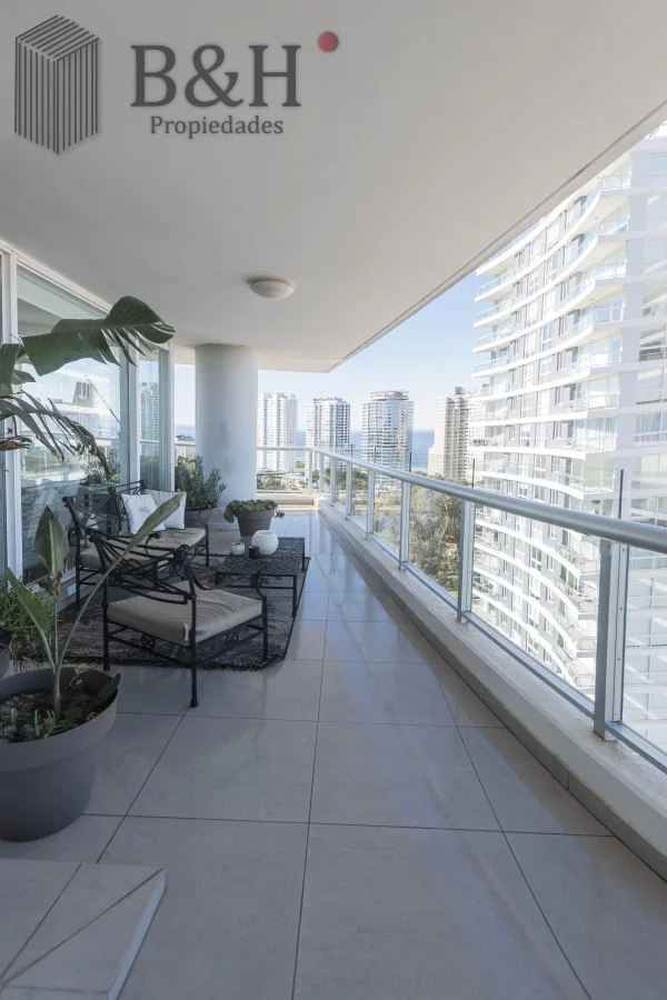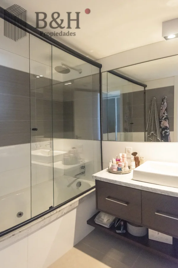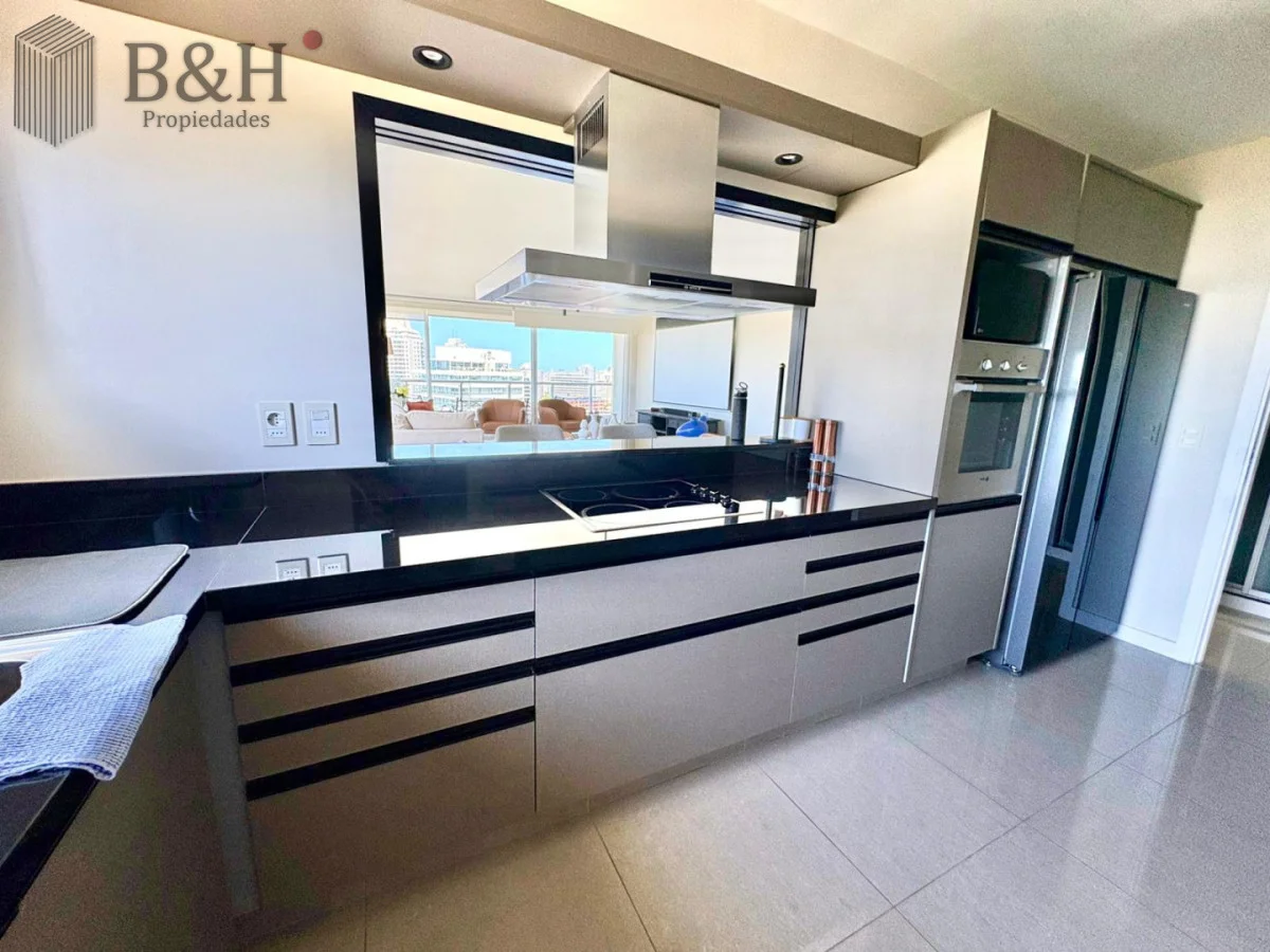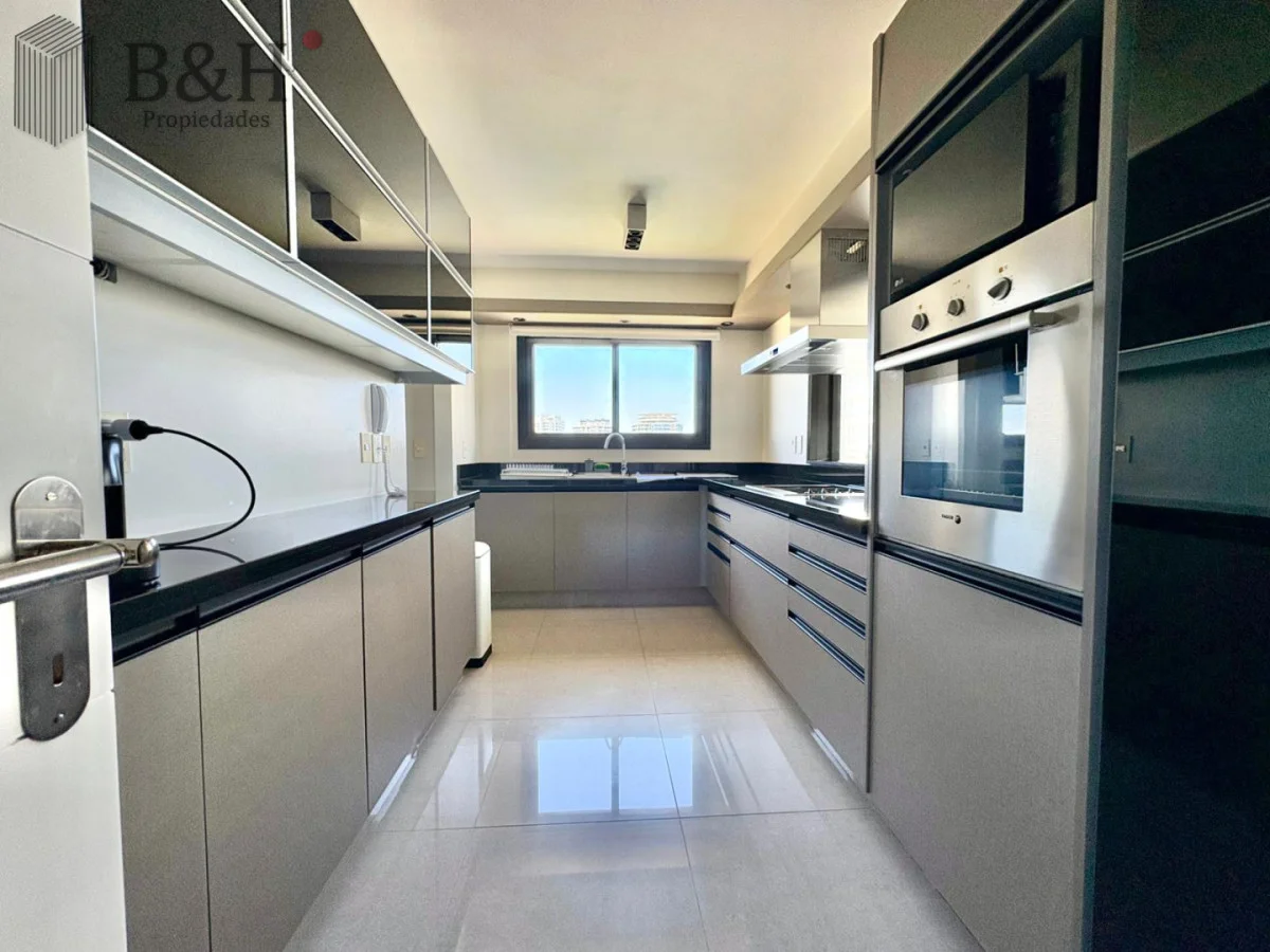 Este sofisticado departamento esquinero se ubica en un piso alto, ofreciendo una vista abierta e imponente.