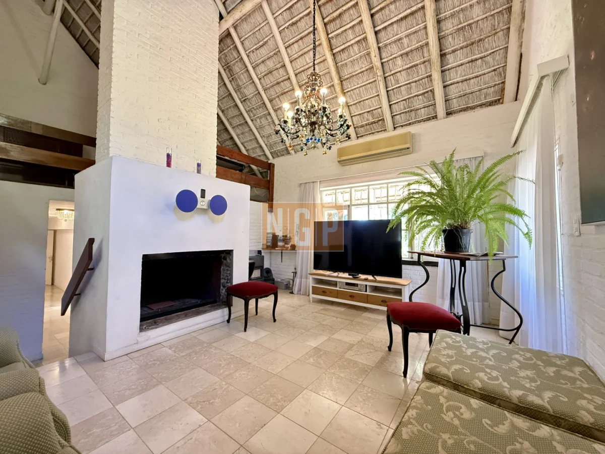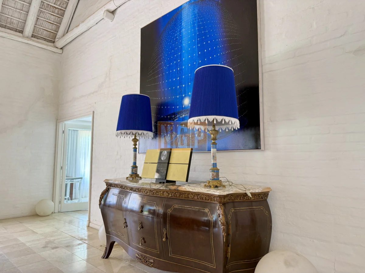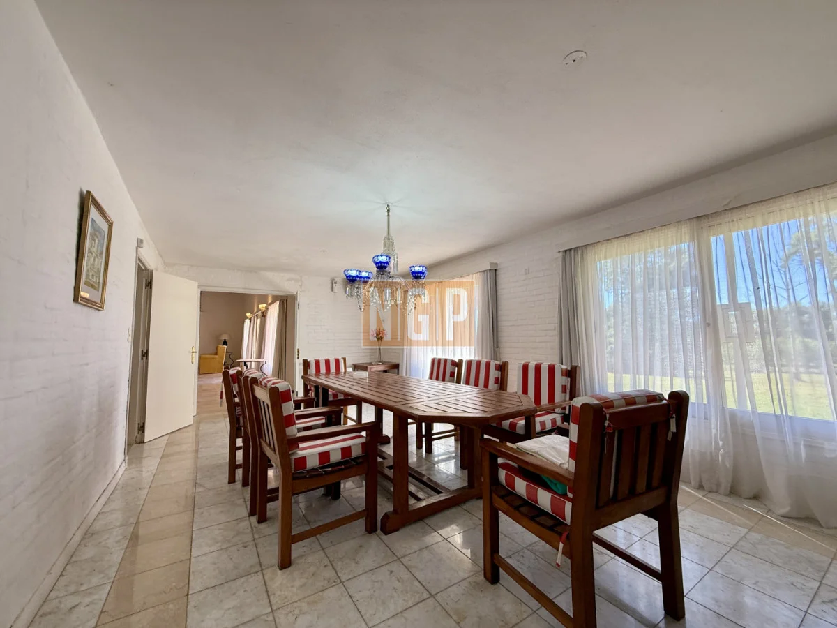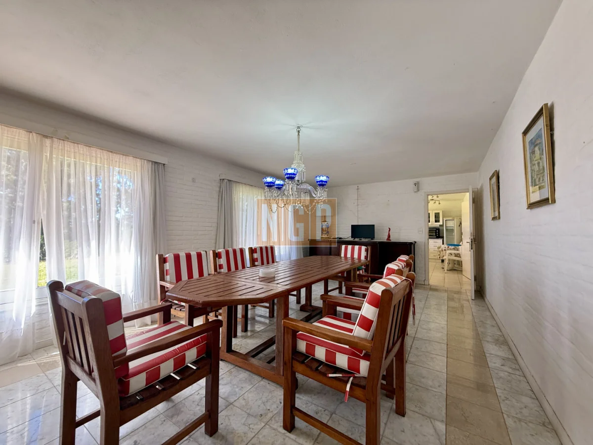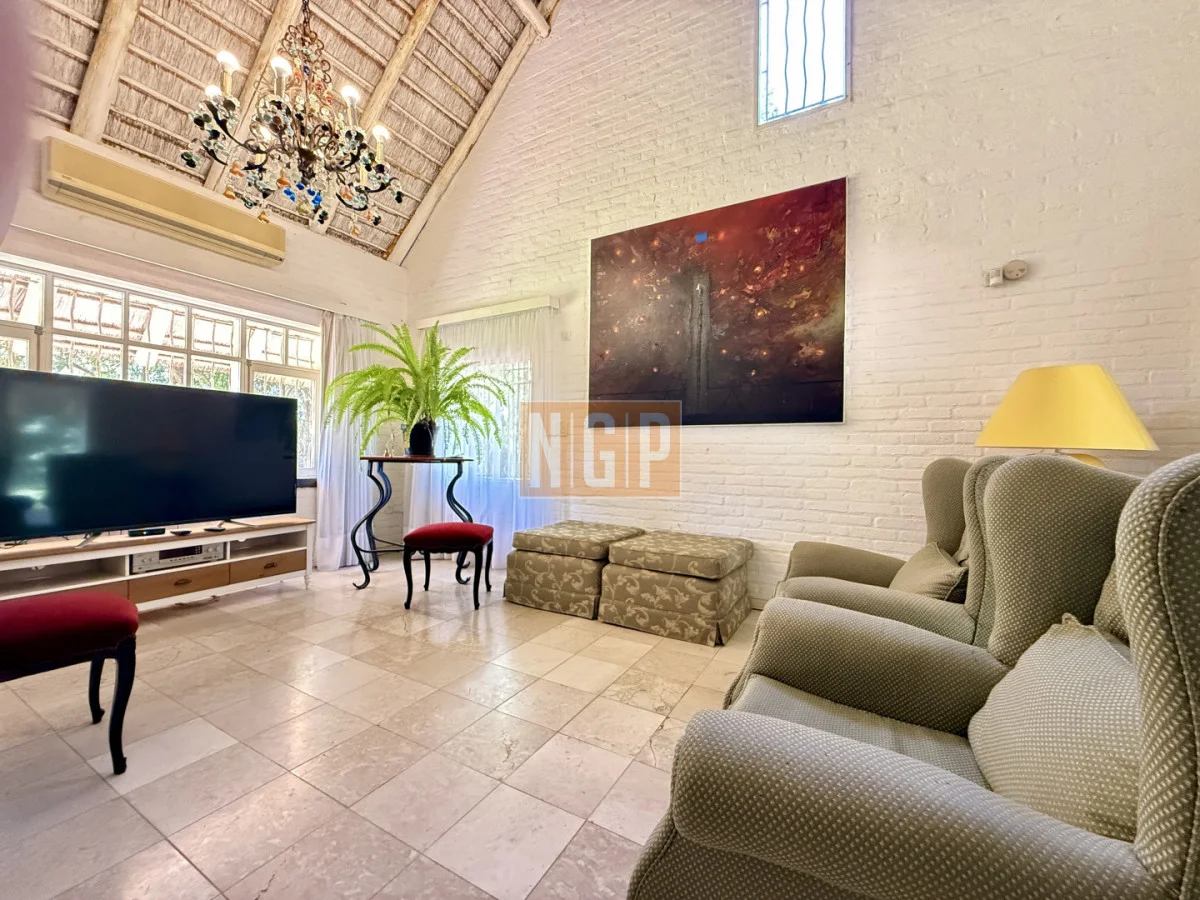 En la Planta Baja están el Living Principal de 100 mts con amplios ventanales y mobiliario de estilo francés. Contiguo esta el Comedor Principal para 10 personas . Además, en la Planta baja, hay 4 habitaciones en suite y la Sala de TV. Junto a esta última está el Comedor de Invierno (semicubierto) con una hermosa vista a los Tilos y los Rosales.