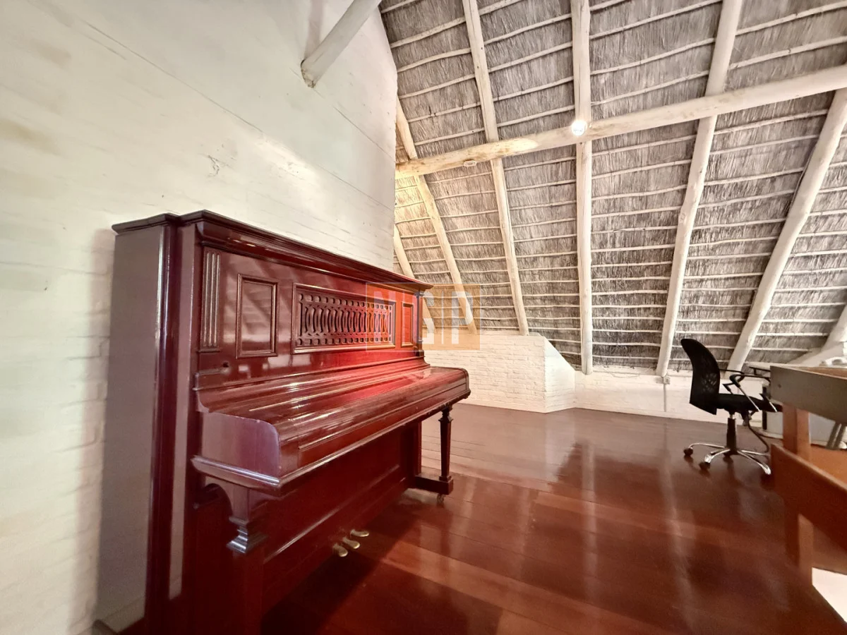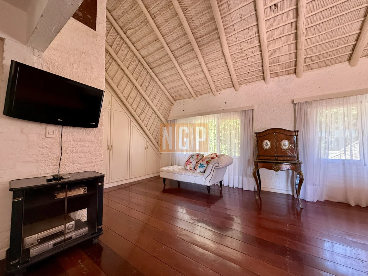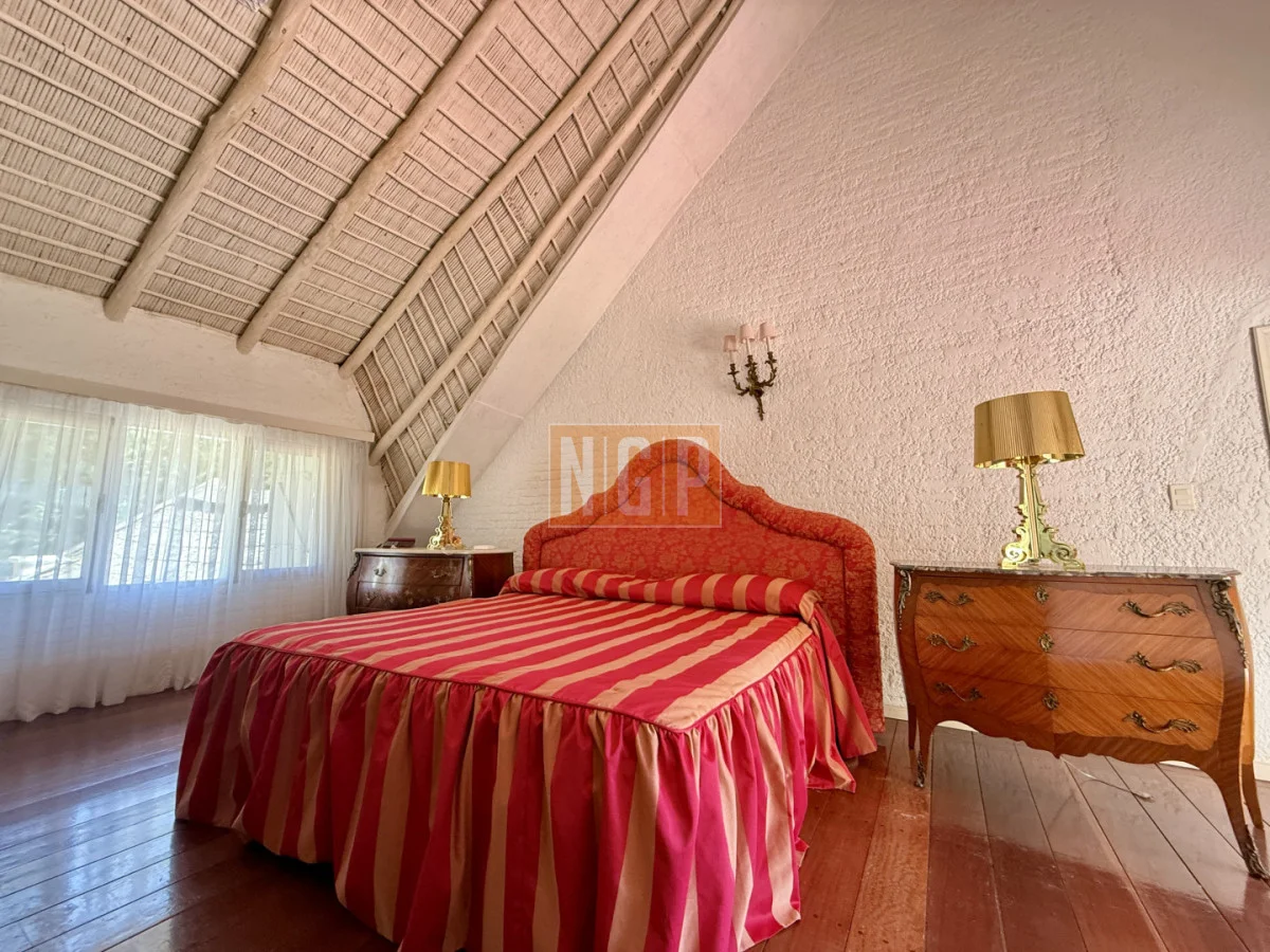 En la Planta Alta podemos encontrar el Playroom . El otro ambiente que se destaca en la casa es la Suite Principal con piso de roble tarugada, una gran terraza con vista a la Laguna y el bosque. En una de las fotos se puede apreciar un secreter del Siglo XVIII.