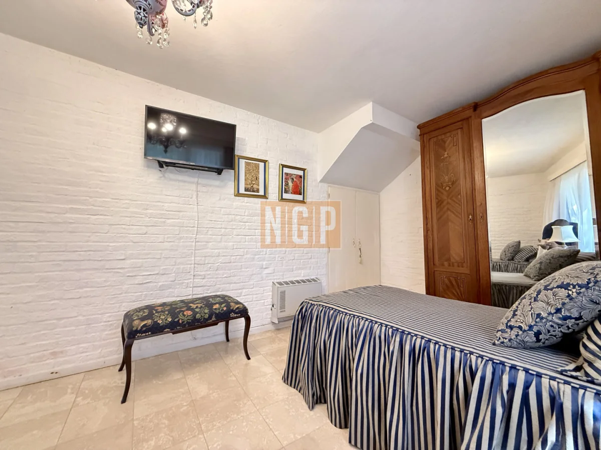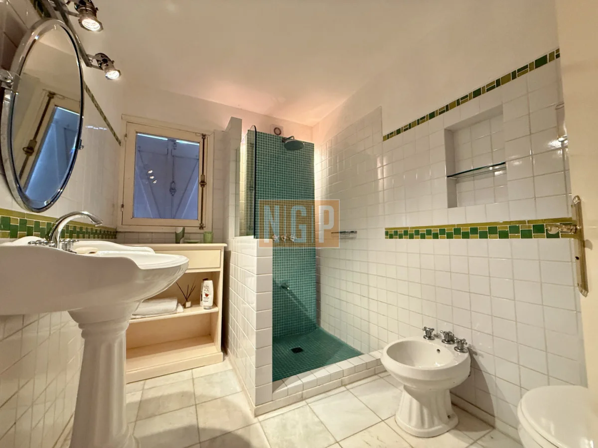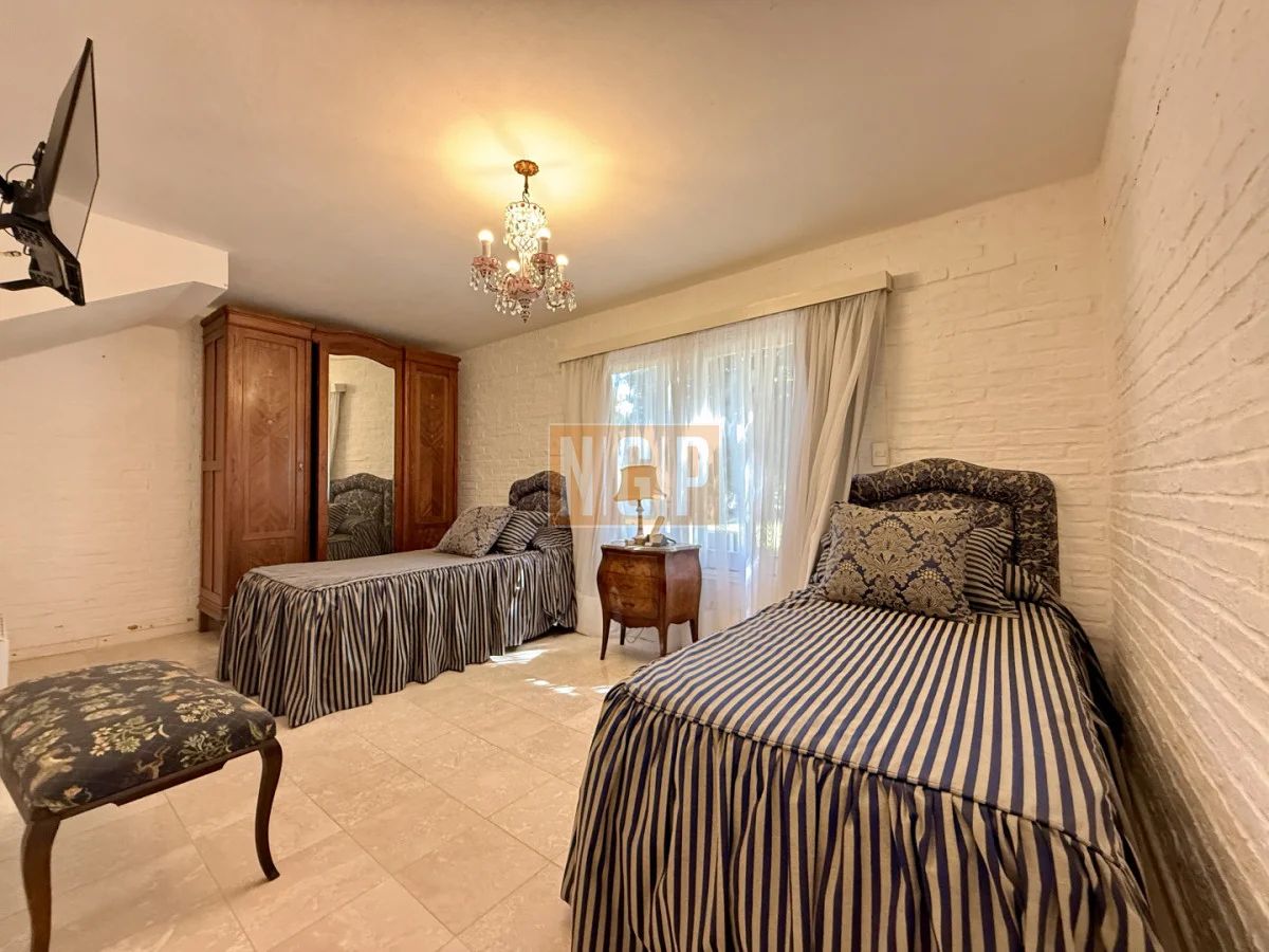 En la Planta Alta podemos encontrar el Playroom . El otro ambiente que se destaca en la casa es la Suite Principal con piso de roble tarugada, una gran terraza con vista a la Laguna y el bosque. En una de las fotos se puede apreciar un secreter del Siglo XVIII.