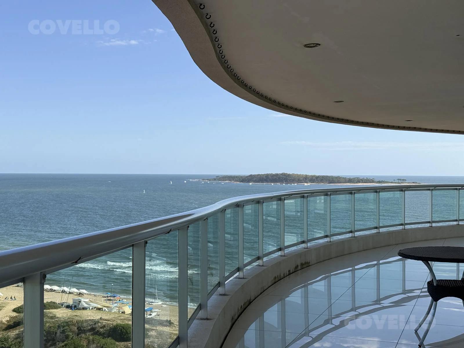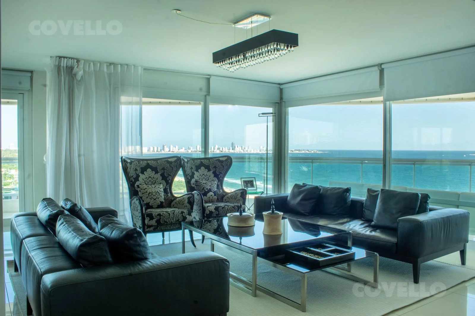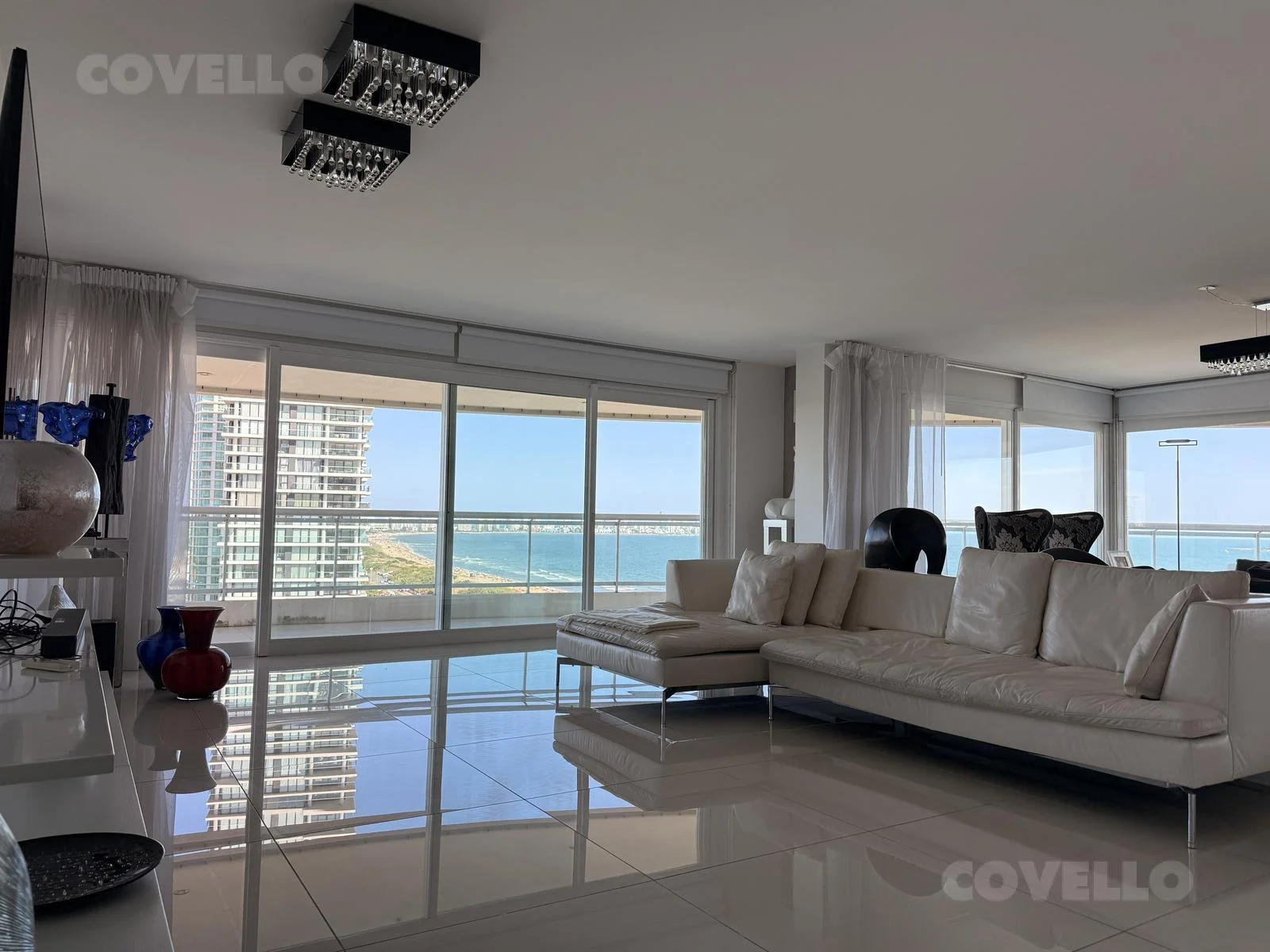 Amplio living comedor con impactante vista a la Isla Gorriti, ideal para disfrutar los mejores atardeceres de Punta del Este.