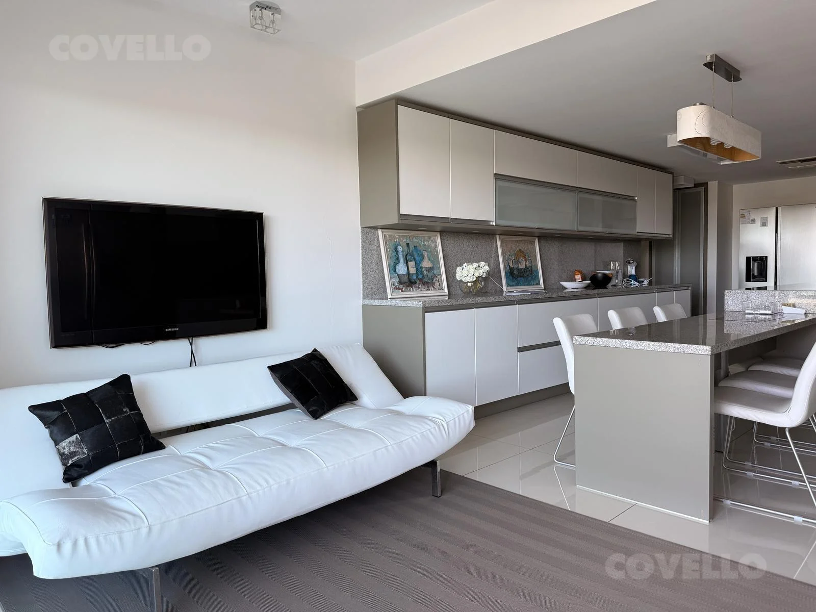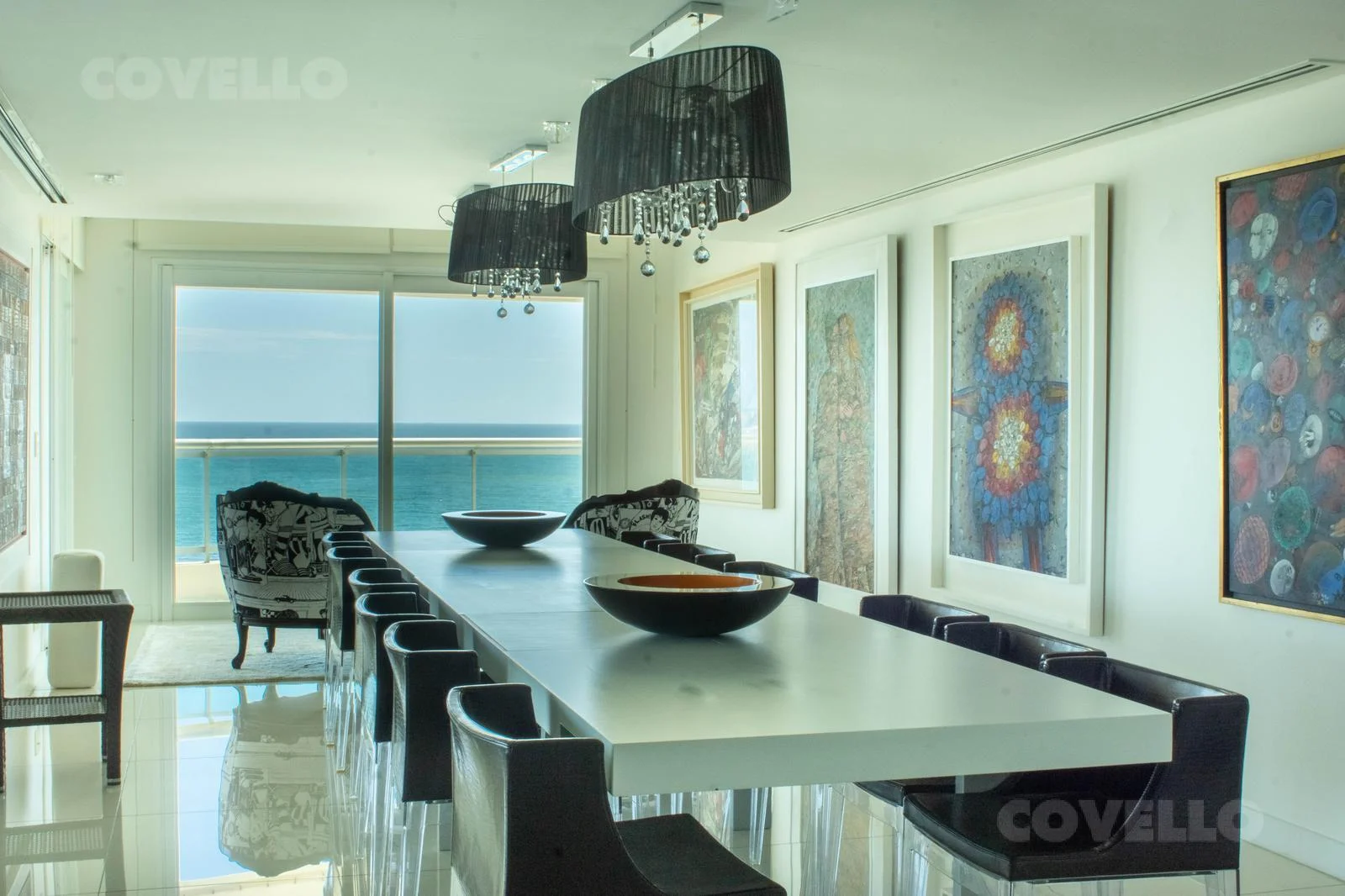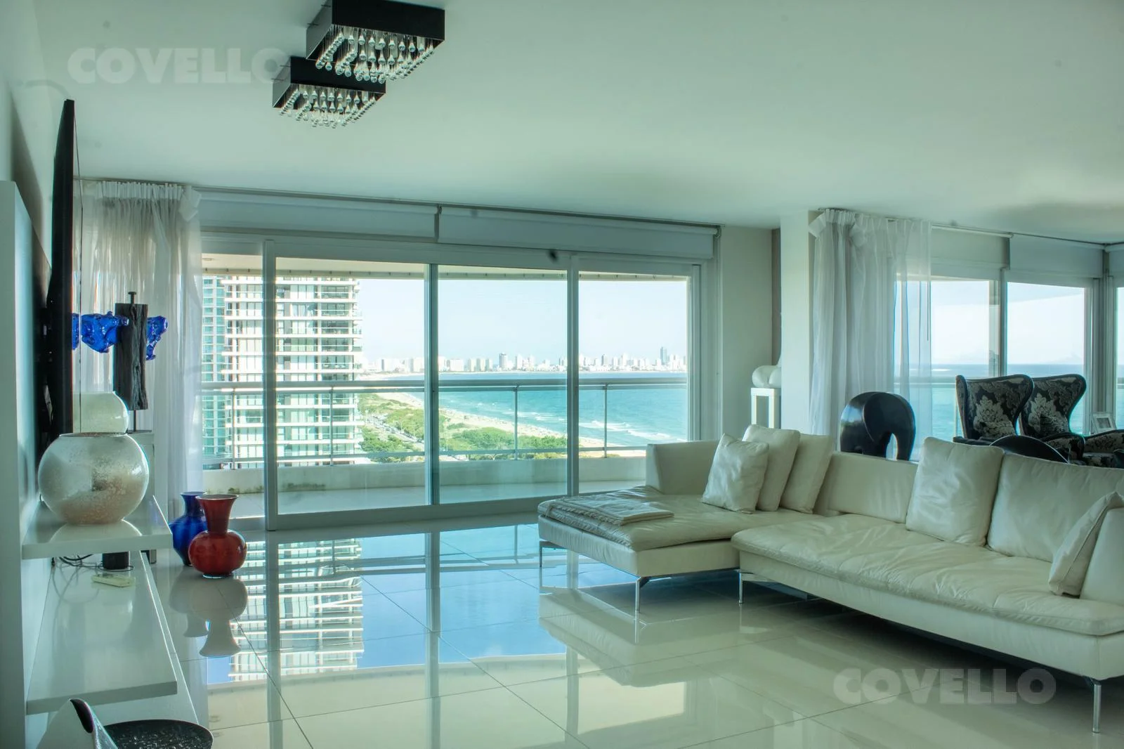 Amplio living comedor con impactante vista a la Isla Gorriti, ideal para disfrutar los mejores atardeceres de Punta del Este.