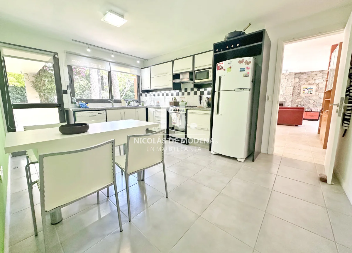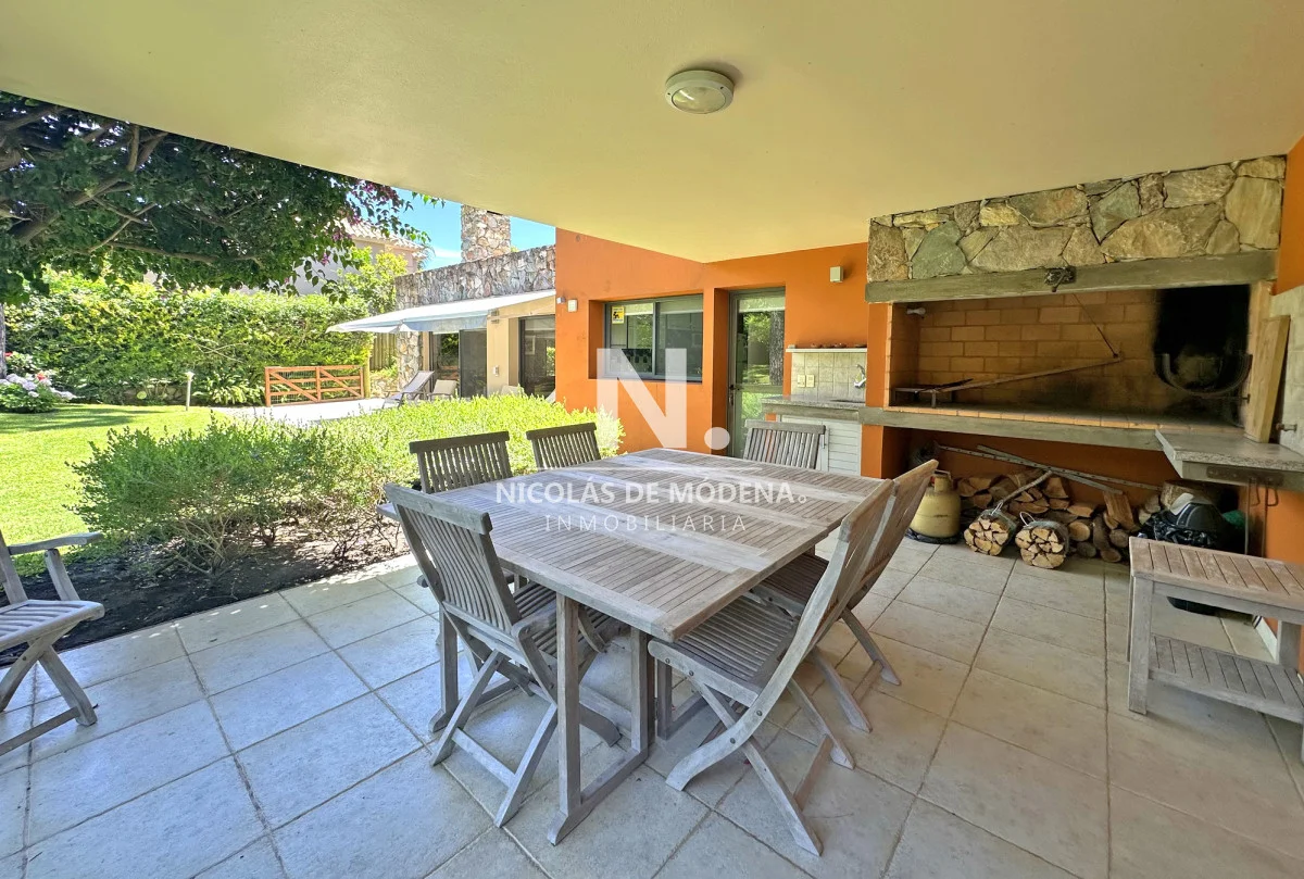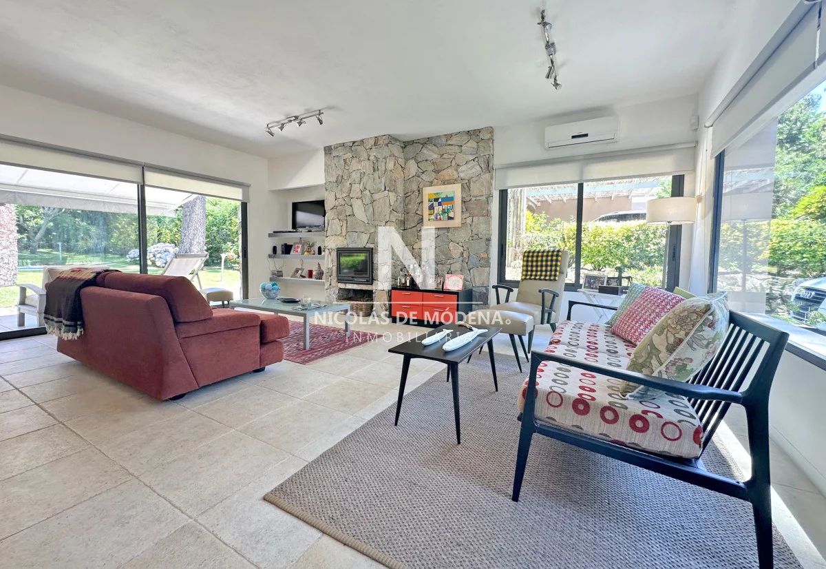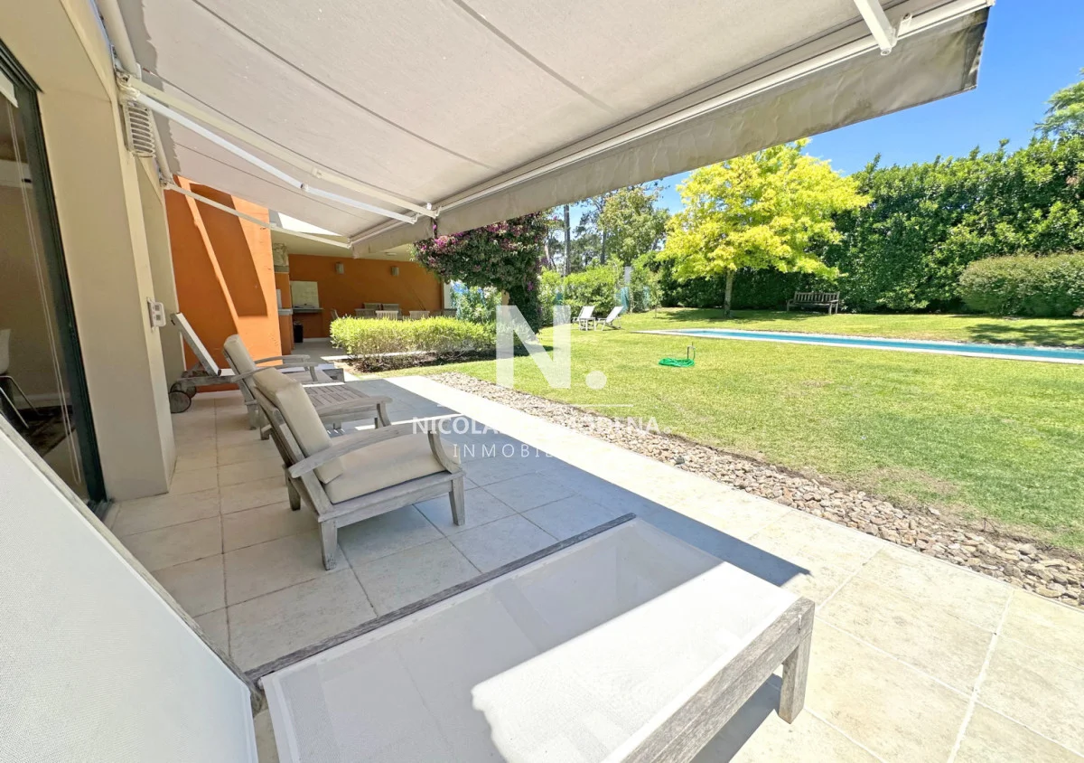 Dentro del barrio privado más exclusivo de Punta del Este nos encontramos esta divina casa pronta para ingresar. Construcción tradicional hecha en el 2010. Preparada para el invierno tanto como para el verano. Amplio living comedor con excelente orientación solar todo el año. Estufa de alto rendimiento. Losa radiante sectorizada. Cocina con comedor diario y super completa. Tenemos una suite en planta baja y en planta alta la master suite con vestidor, amplio baño con jacuzzi y sauna seco. También tiene terraza privada con vista al jardín. 3er suite en planta alta con terraza privada y vista al frente con muy buen sol. Barbacoa techada con parrillero grande, posibilidad de hacerle un cerramiento. Pileta con un espejo de agua de 10m x 3m. Jardín perfectamente mantenido y hermosos árboles. Zona de lavadero muy cómoda. Dependencia de servicio con baño privado. Aire acondicionado frío calor en todos los ambientes. Mosquiteros. Toldos Ponti. Tiene posibilidad de ampliación ya que no está al máximo de FOT. Referencia Interna : Tera-25217