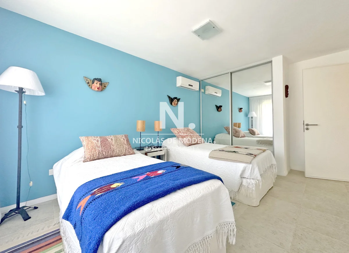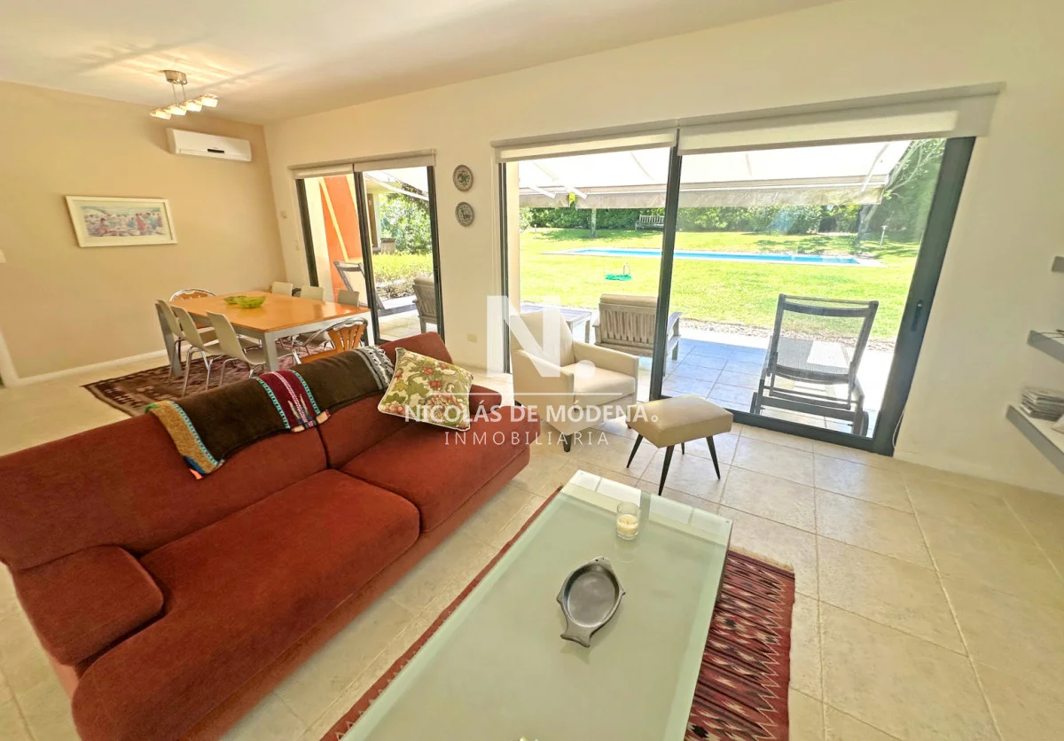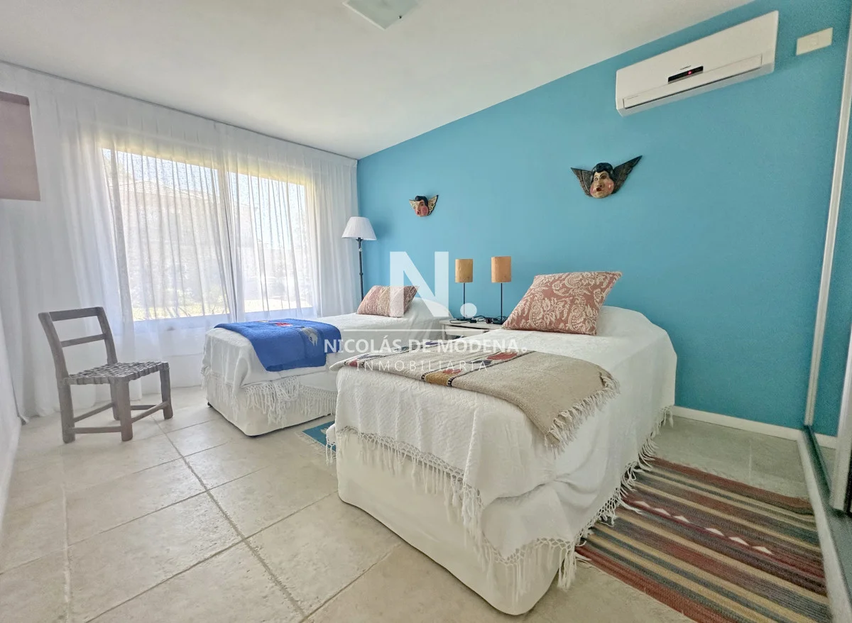 Dentro del barrio privado más exclusivo de Punta del Este nos encontramos esta divina casa pronta para ingresar. Construcción tradicional hecha en el 2010. Preparada para el invierno tanto como para el verano. Amplio living comedor con excelente orientación solar todo el año. Estufa de alto rendimiento. Losa radiante sectorizada. Cocina con comedor diario y super completa. Tenemos una suite en planta baja y en planta alta la master suite con vestidor, amplio baño con jacuzzi y sauna seco. También tiene terraza privada con vista al jardín. 3er suite en planta alta con terraza privada y vista al frente con muy buen sol. Barbacoa techada con parrillero grande, posibilidad de hacerle un cerramiento. Pileta con un espejo de agua de 10m x 3m. Jardín perfectamente mantenido y hermosos árboles. Zona de lavadero muy cómoda. Dependencia de servicio con baño privado. Aire acondicionado frío calor en todos los ambientes. Mosquiteros. Toldos Ponti. Tiene posibilidad de ampliación ya que no está al máximo de FOT. Referencia Interna : Tera-25217