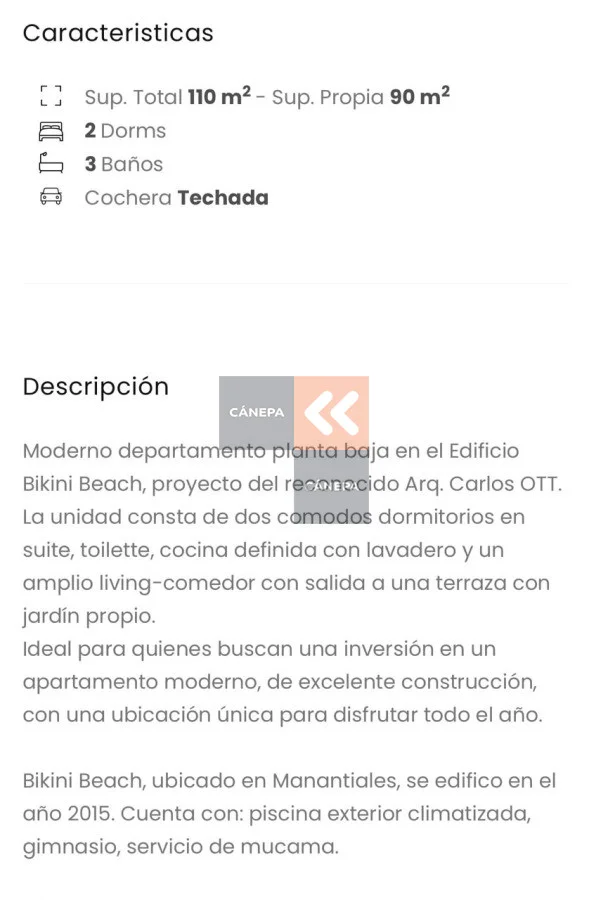 Apartamento en Manantiales - Manantiales Unidad de 2 Dormitorios 2 Baños 2 Suites Cocina : Cocina, Living , Comedor Referencia Interna : Tera-11298