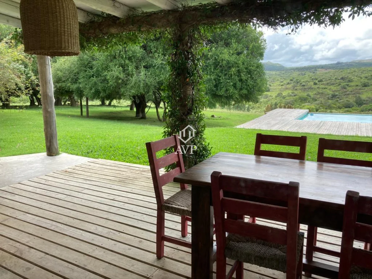 Gran chacra de 31 hás entre Ruta 60 y Ruta 12. A 30 km de Pan de Azúcar Paisaje increíble en medio de la naturaleza Casa de piedra con gran living comedor y cocina integrada Enorme galería con vista a la sierra con parrillero Piscina infinita con deck de madera 4 dormitorios y 2 baños Galpón Casa de personal completa Luz eléctrica Pozo de agua de gran caudal y óptimos valores como agua mineral 5 hás de avellanos Arroyo y Cerro con monte serrano. Fauna nativa en abundancia. Referencia Interna : Tera-612